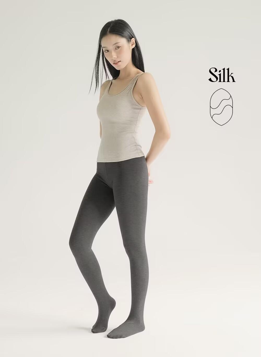 Pantyhose de seda de morera de alta calidad para mujer, estilo primavera y otoño 2025, cálidas, suaves, negras, adelgazantes, para usar en el exterior, leggings grises