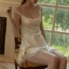 Conjunto de Pijama Ziqu Sexy de Terciopelo Dorado con Encaje Patchwork de Alta Gama con Almohadillas en el Pecho Camisola Camisón Ropa de Hogar 6478