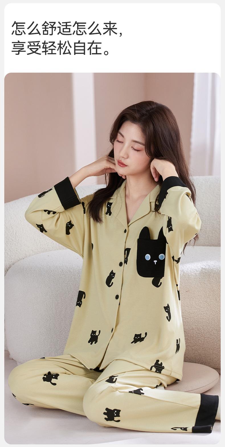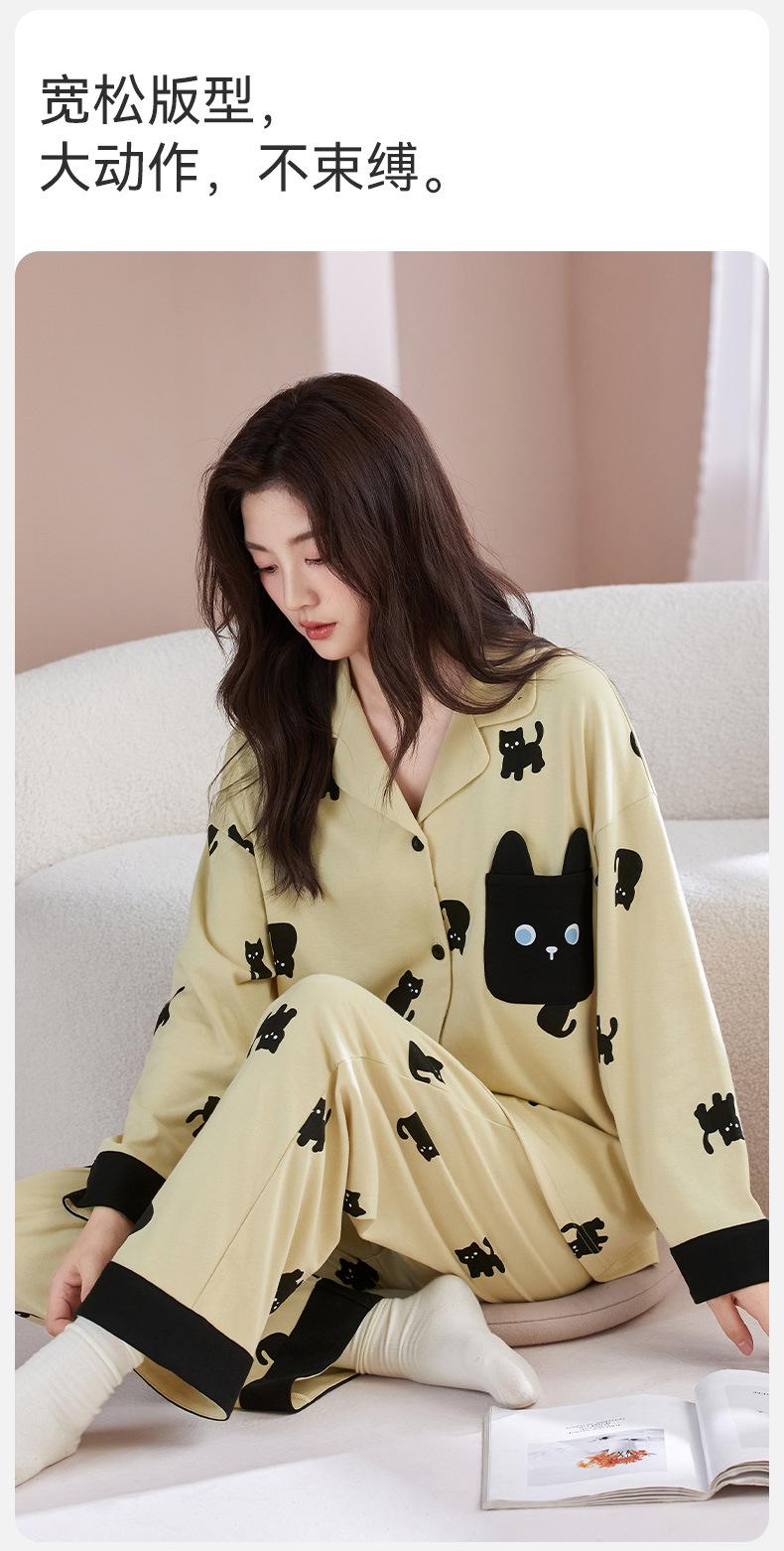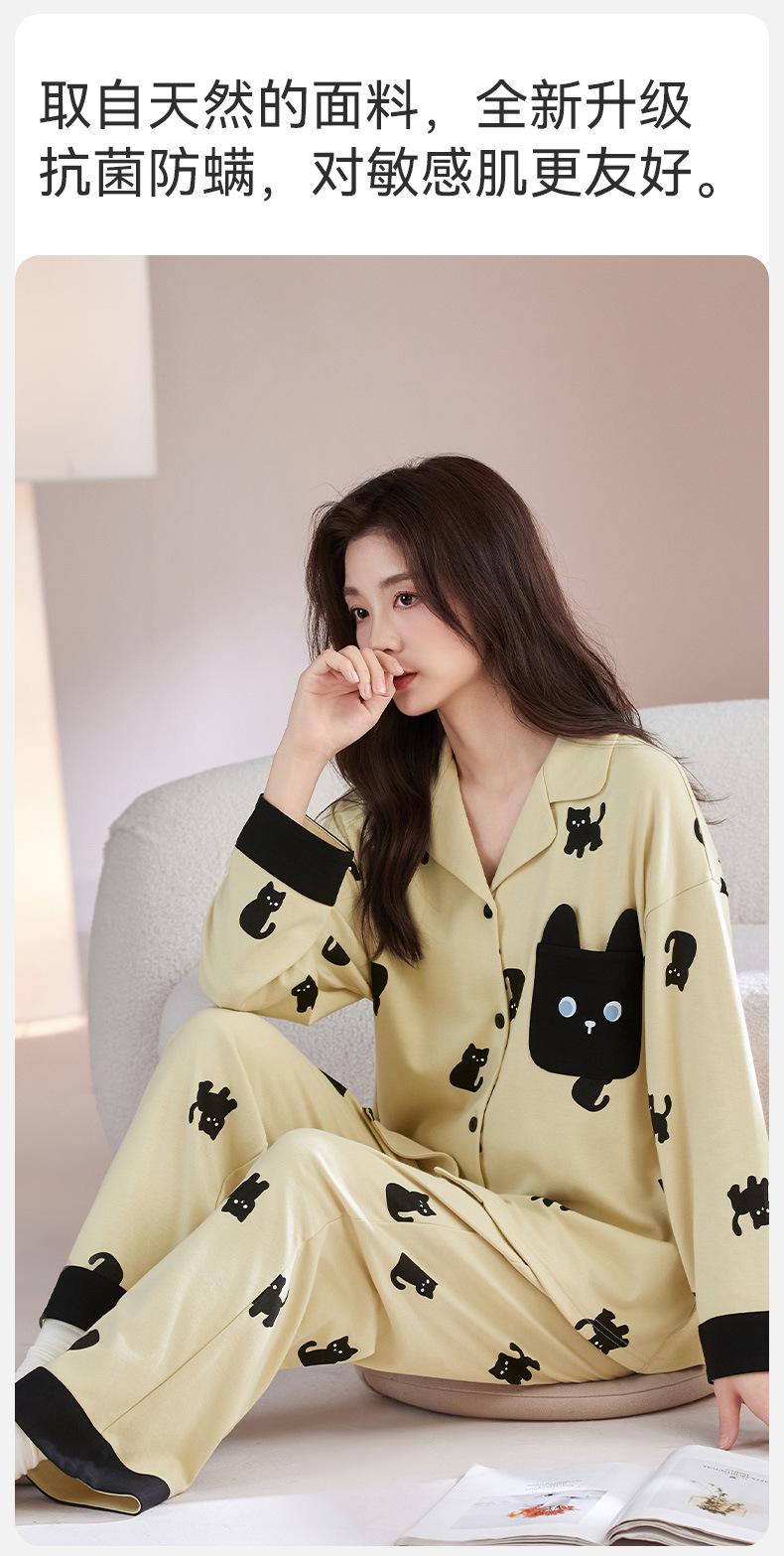 Pijamas de Mujer Primavera y Otoño Algodón Puro 2025 Nuevo Estilo Manga Larga Pantalón Largo Casual Sencillo Se Puede Usar Fuera Set de Ropa para el Hogar para Damas