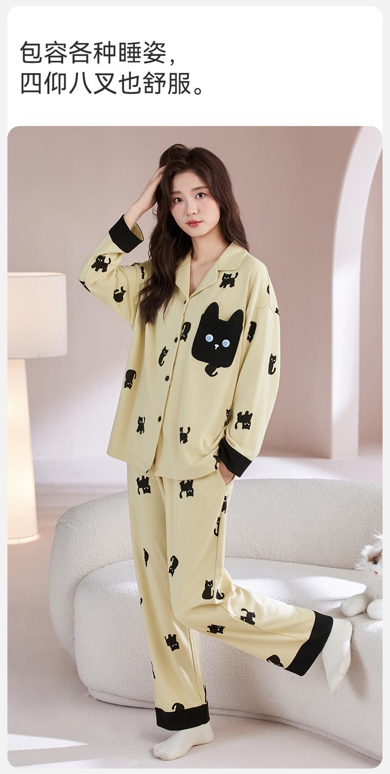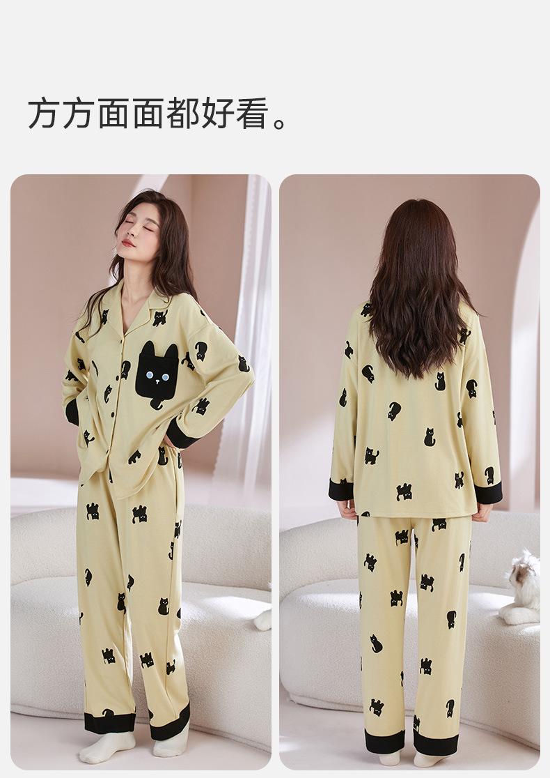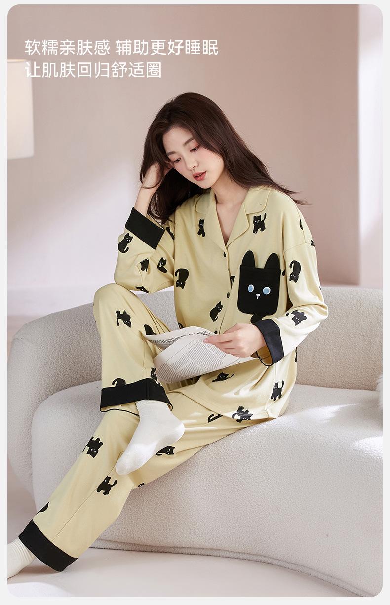 Pijamas de Mujer Primavera y Otoño Algodón Puro 2025 Nuevo Estilo Manga Larga Pantalón Largo Casual Sencillo Se Puede Usar Fuera Set de Ropa para el Hogar para Damas