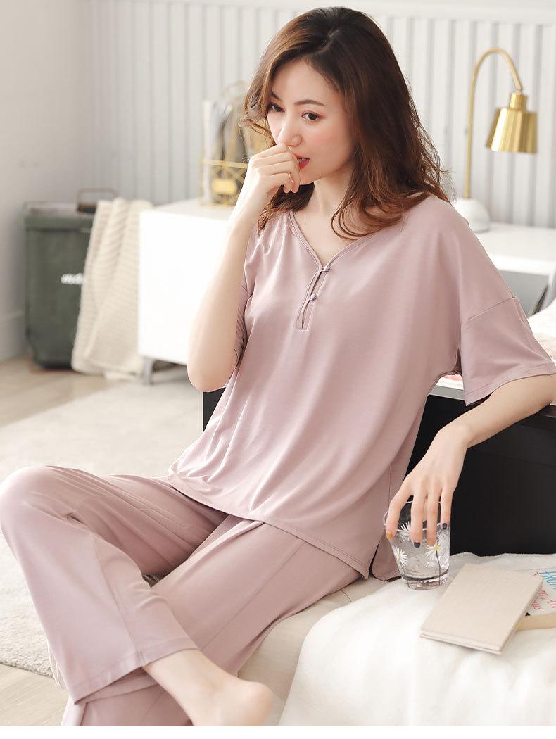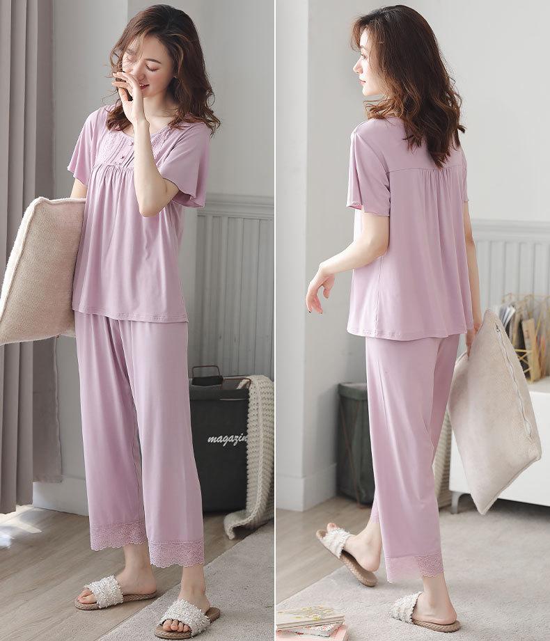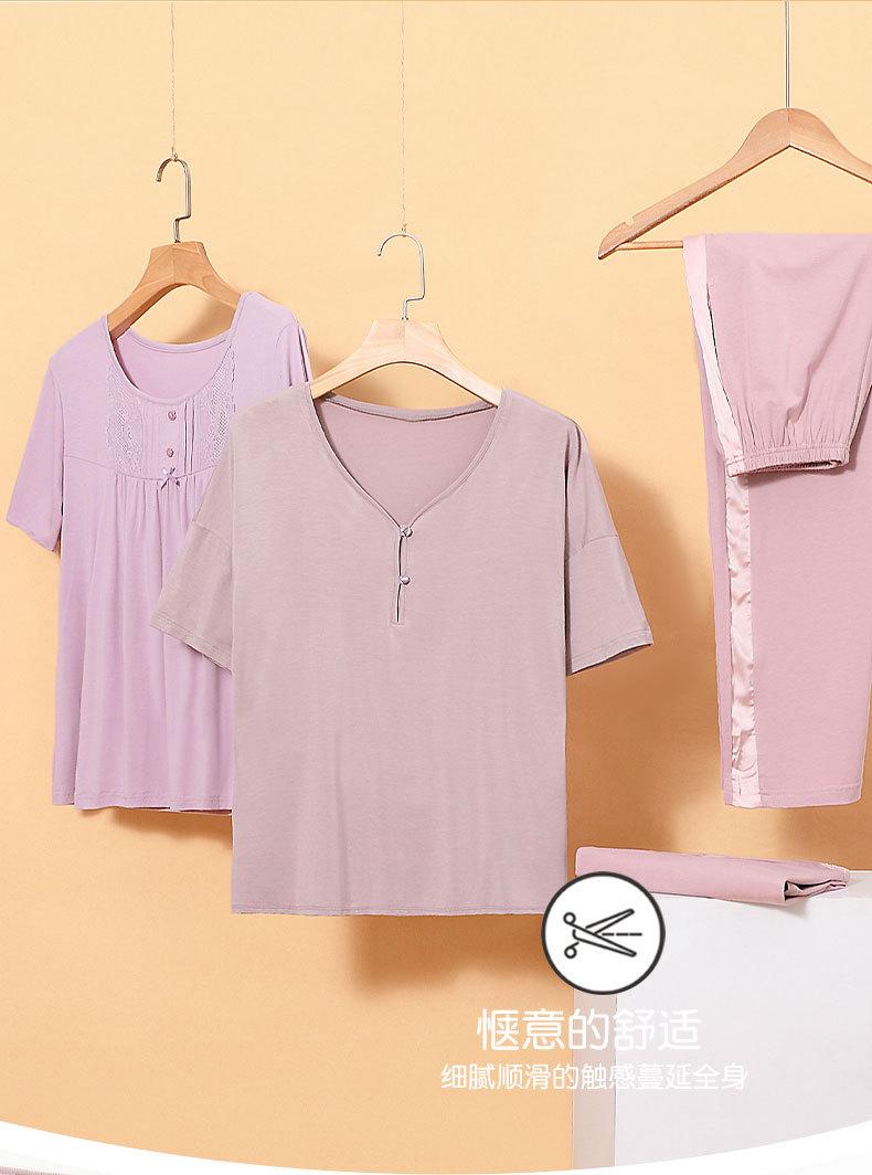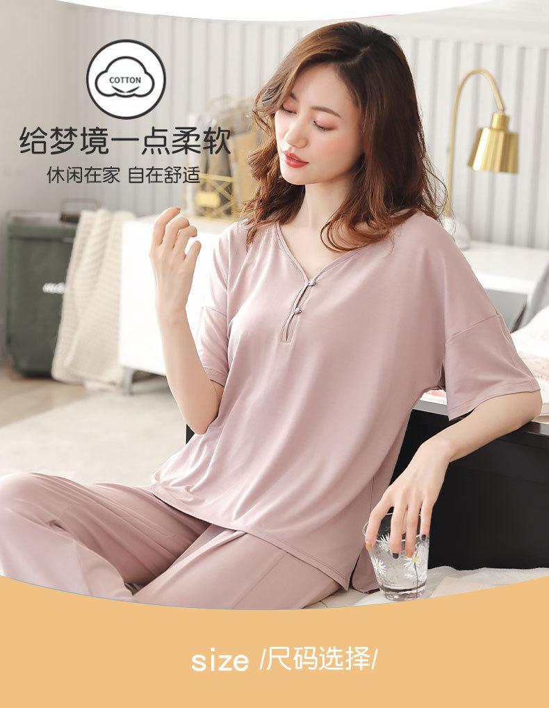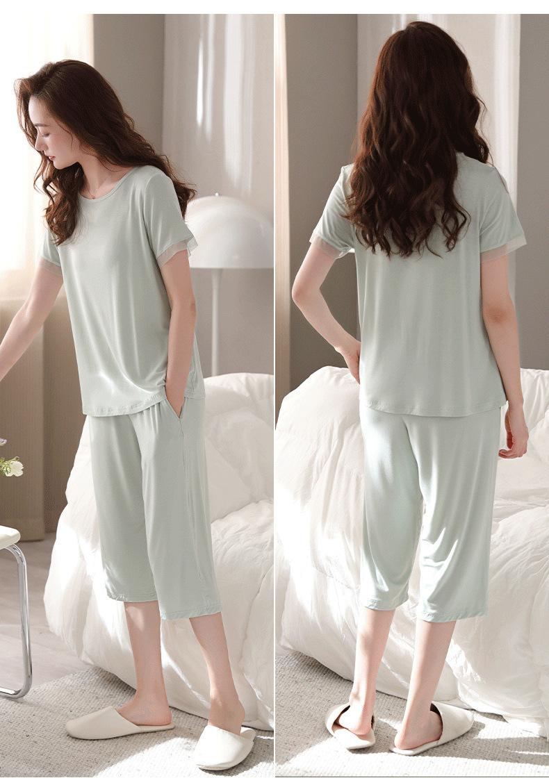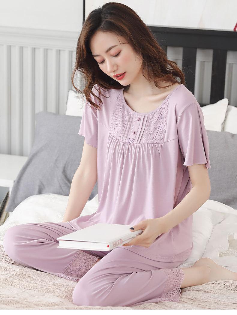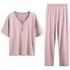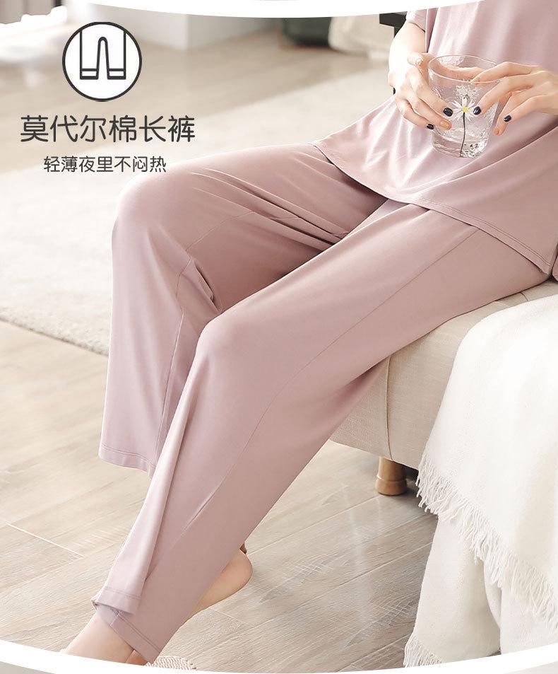 Pijama de Verano para Mujer de Manga Corta y Pantalón Largo, Modal Fino de Verano, Algodón Seda, para Madre de Mediana Edad, Traje de Casa de Verano