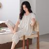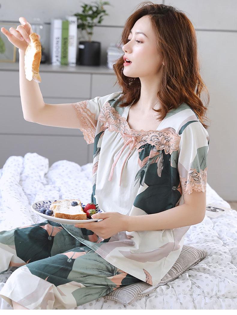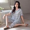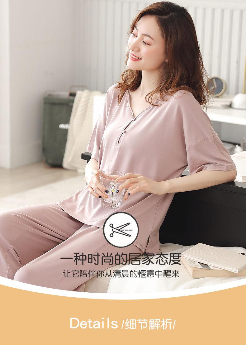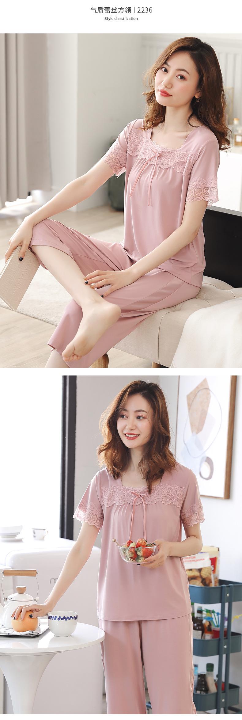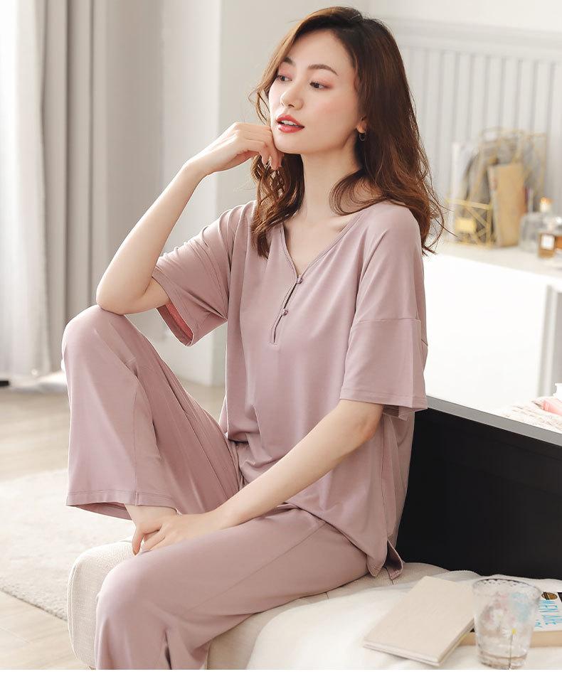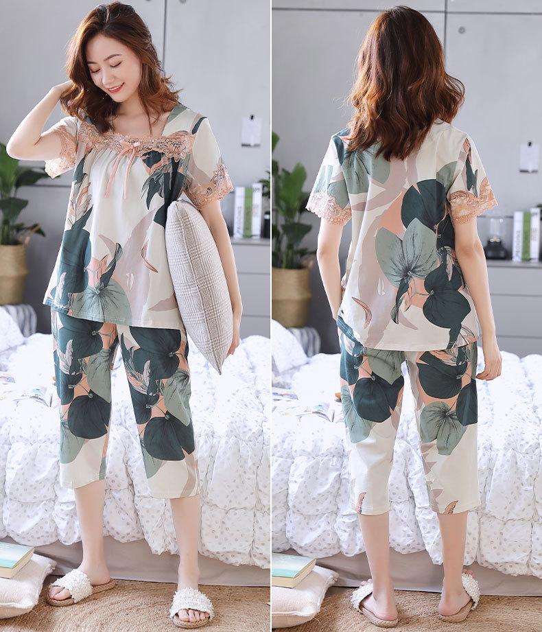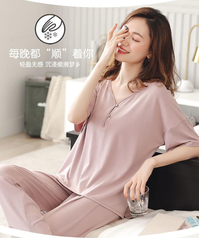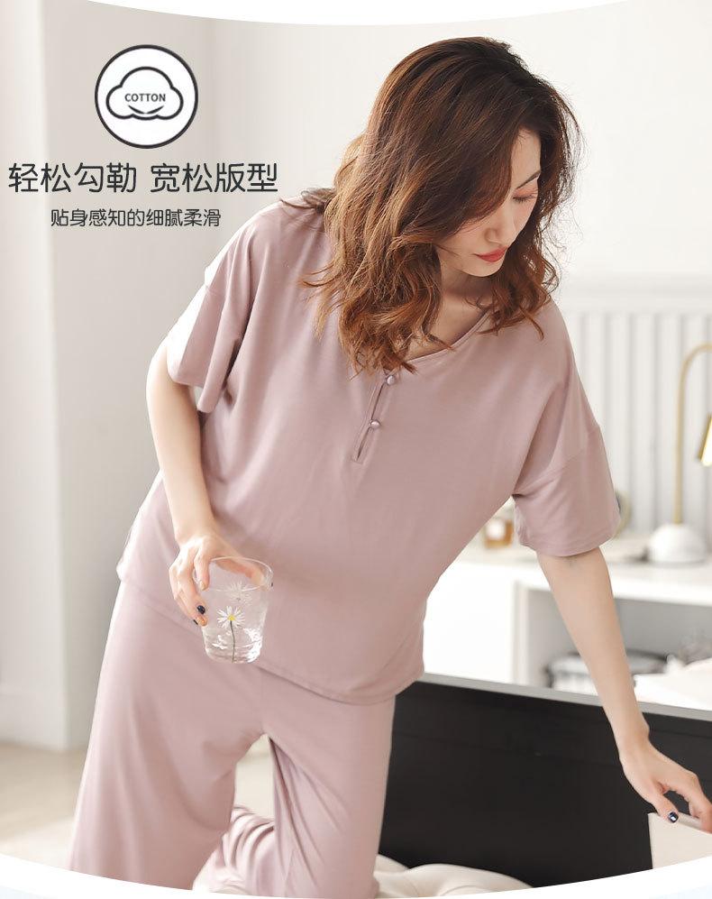 Pijama de Verano para Mujer de Manga Corta y Pantalón Largo, Modal Fino de Verano, Algodón Seda, para Madre de Mediana Edad, Traje de Casa de Verano