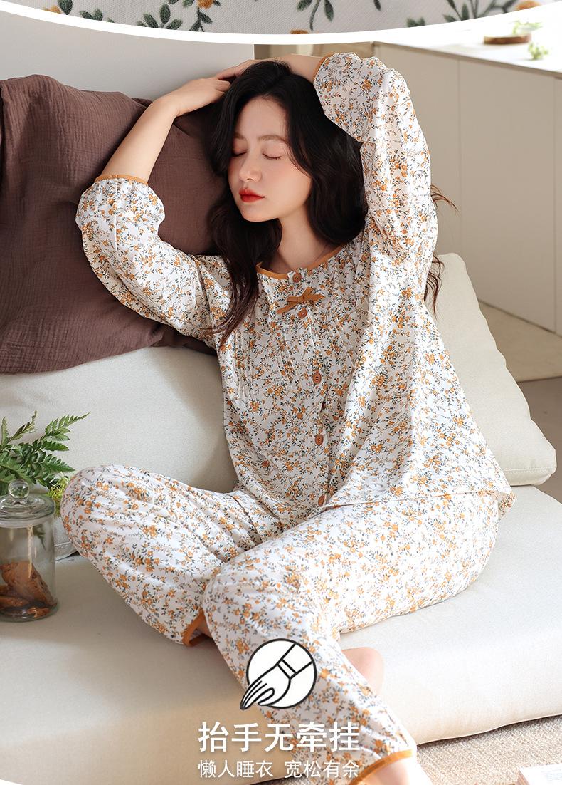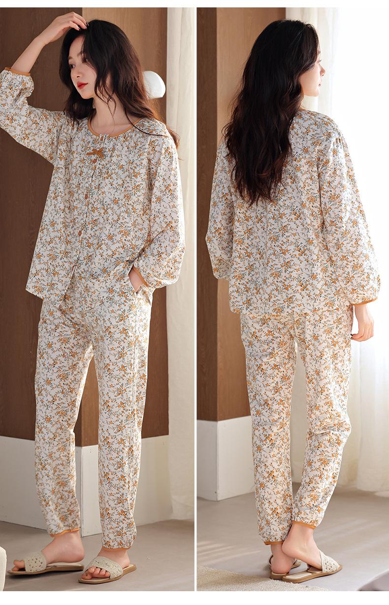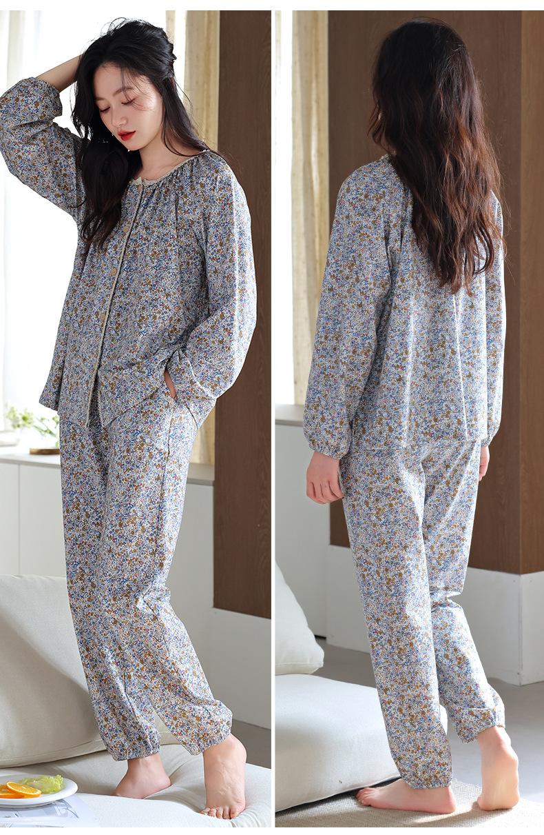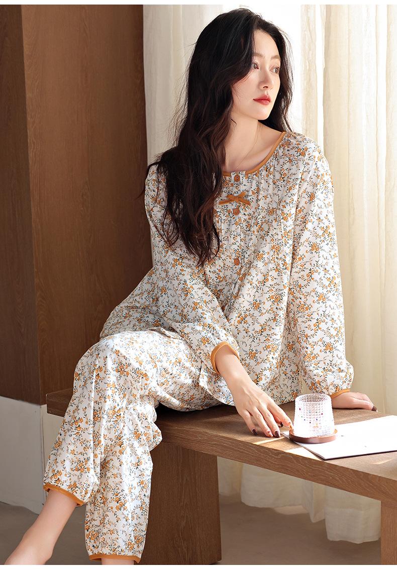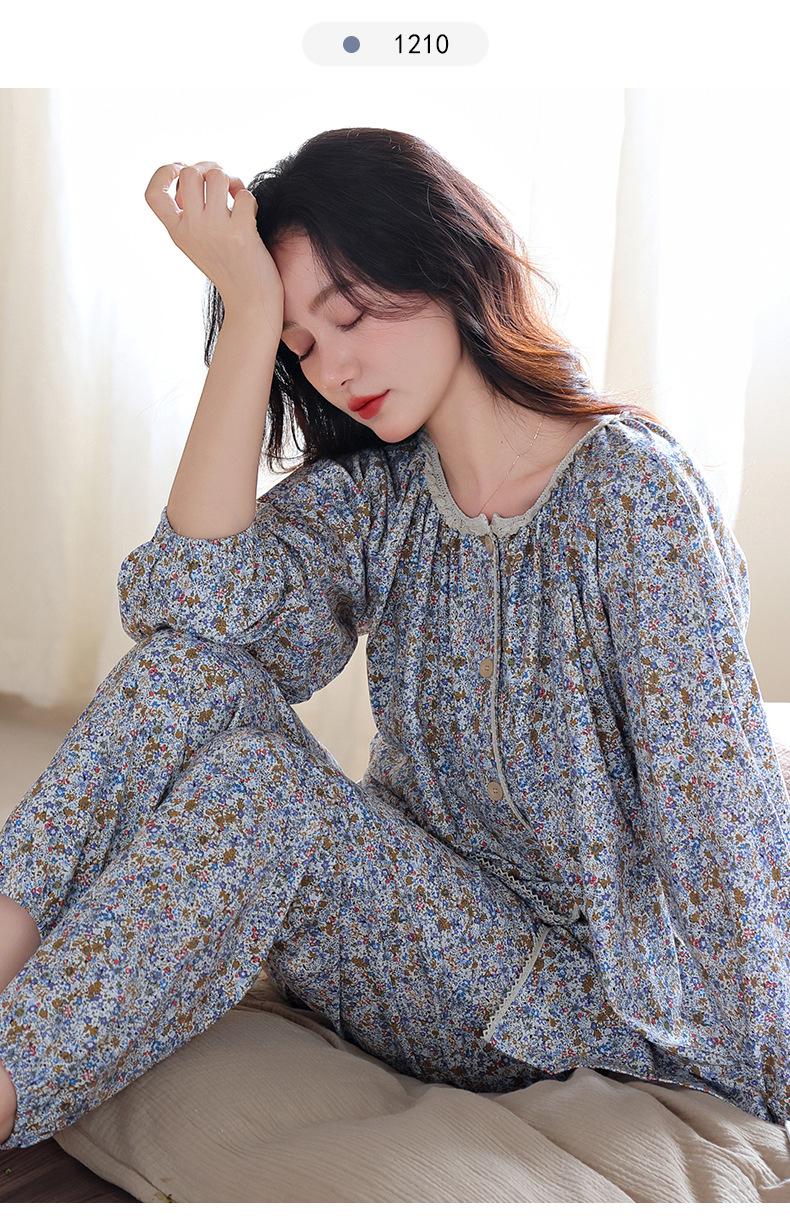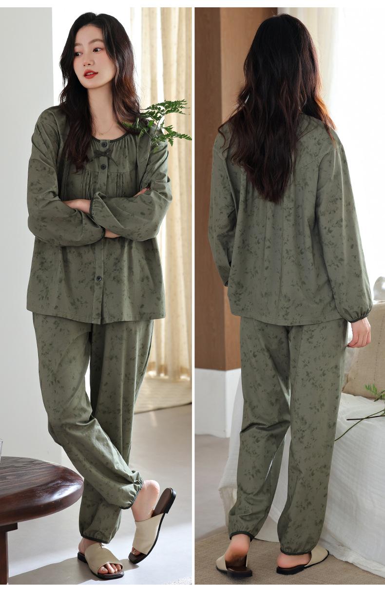 Pijamas de Primavera y Otoño para Mujer de Algodón Puro Manga Larga Otoño Algodón Puro Delgadas para Madre de Mediana Edad Sueltas Talla Grande Cárdigan Ropa para el Hogar