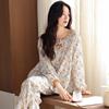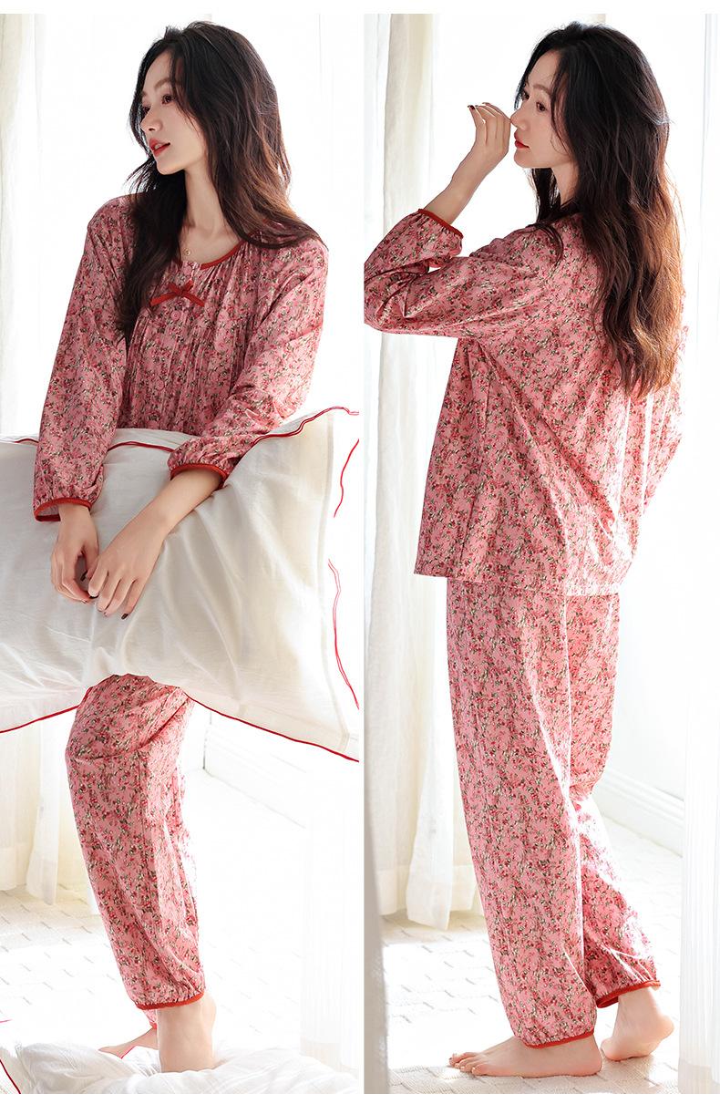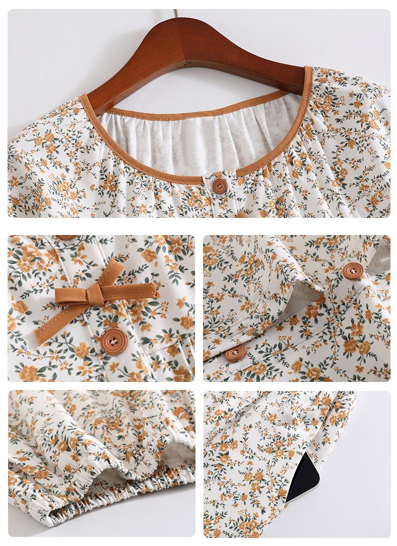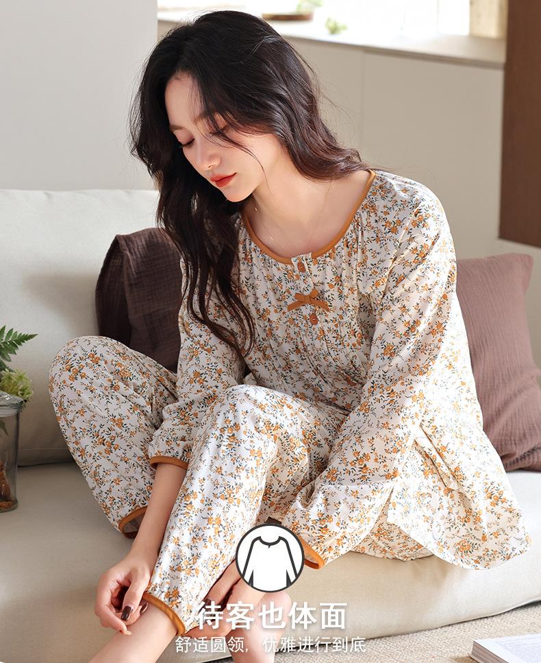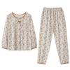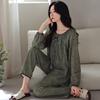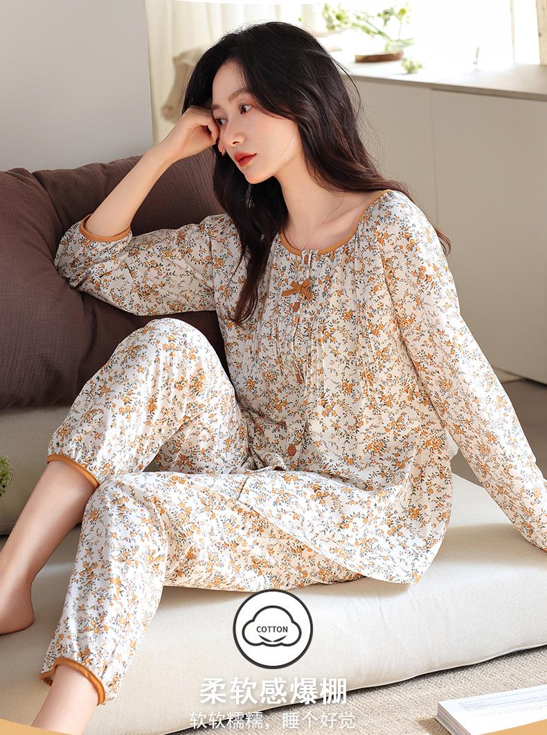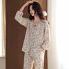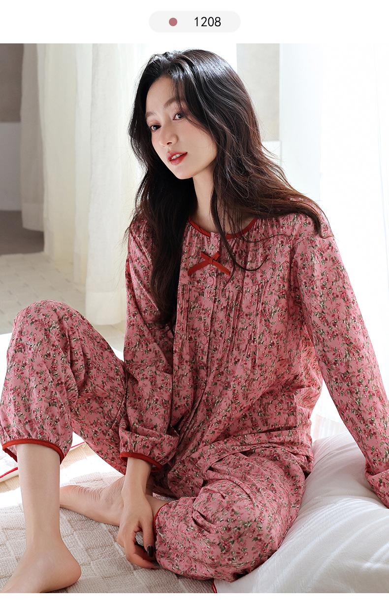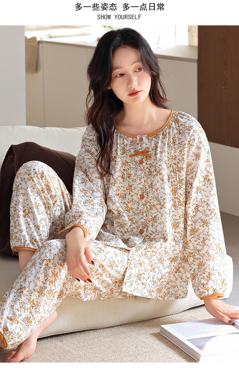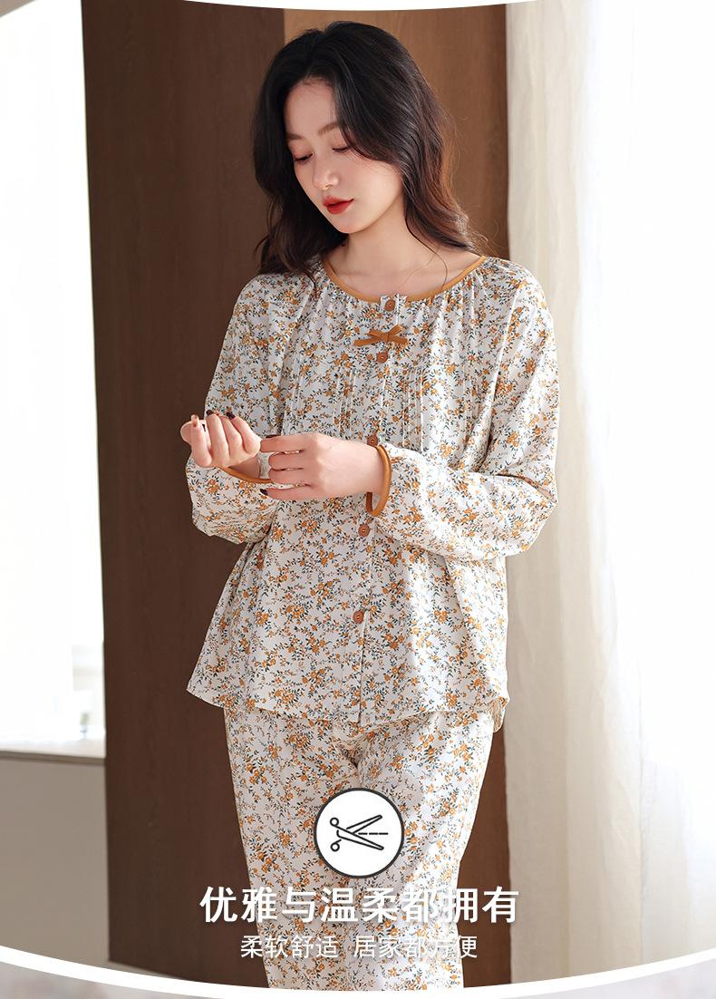 Pijamas de Primavera y Otoño para Mujer de Algodón Puro Manga Larga Otoño Algodón Puro Delgadas para Madre de Mediana Edad Sueltas Talla Grande Cárdigan Ropa para el Hogar