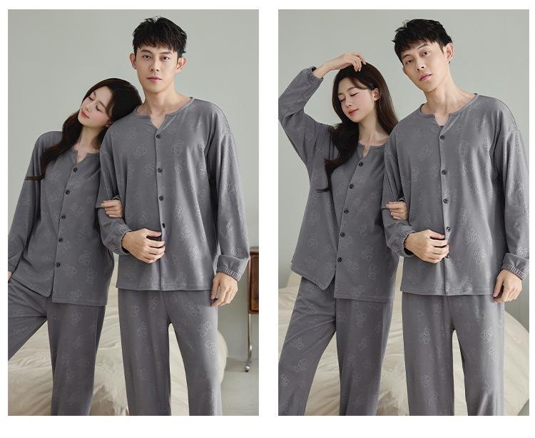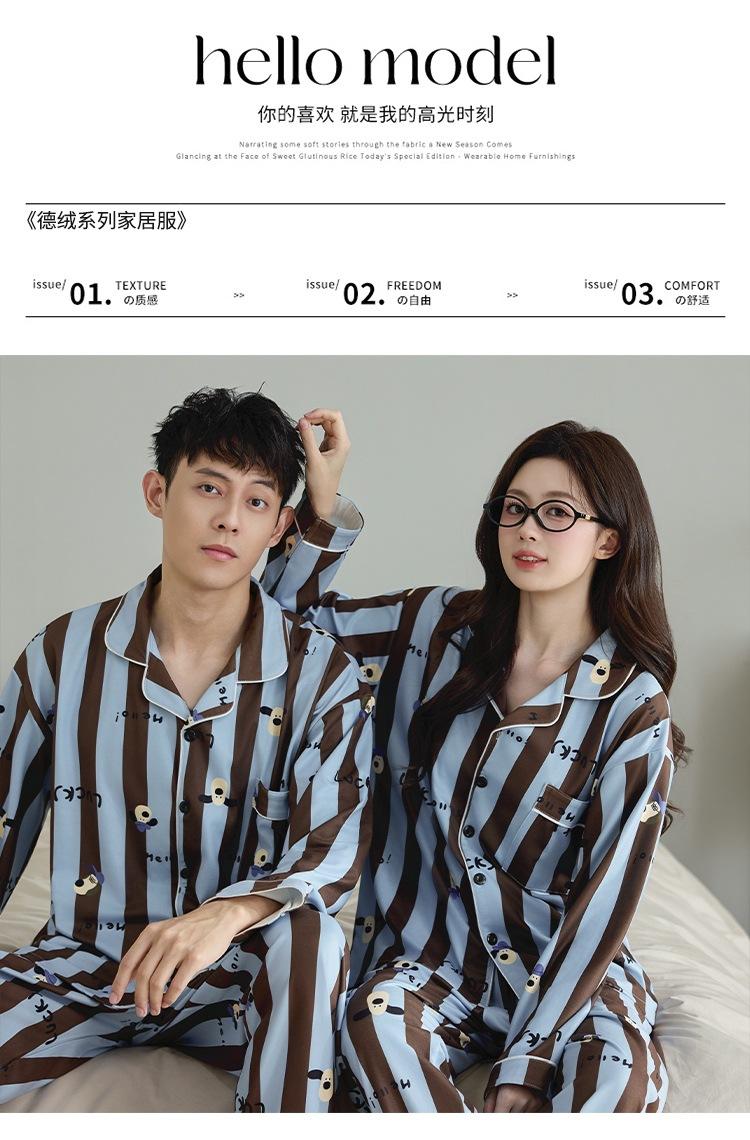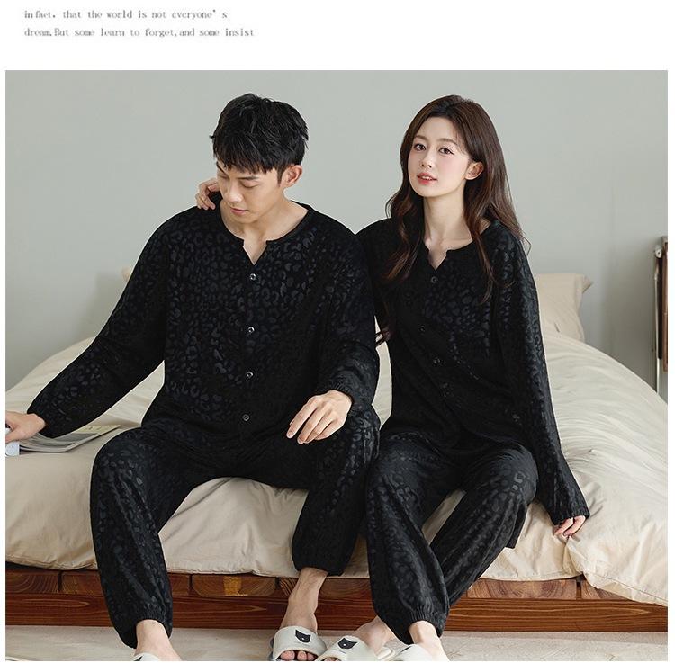 Color sólido al por mayor en stock spot nuevo estilo coreano otoño e invierno de terciopelo pareja talla grande mediana edad y jóvenes hombres y mujeres estilo conjunto de pijama