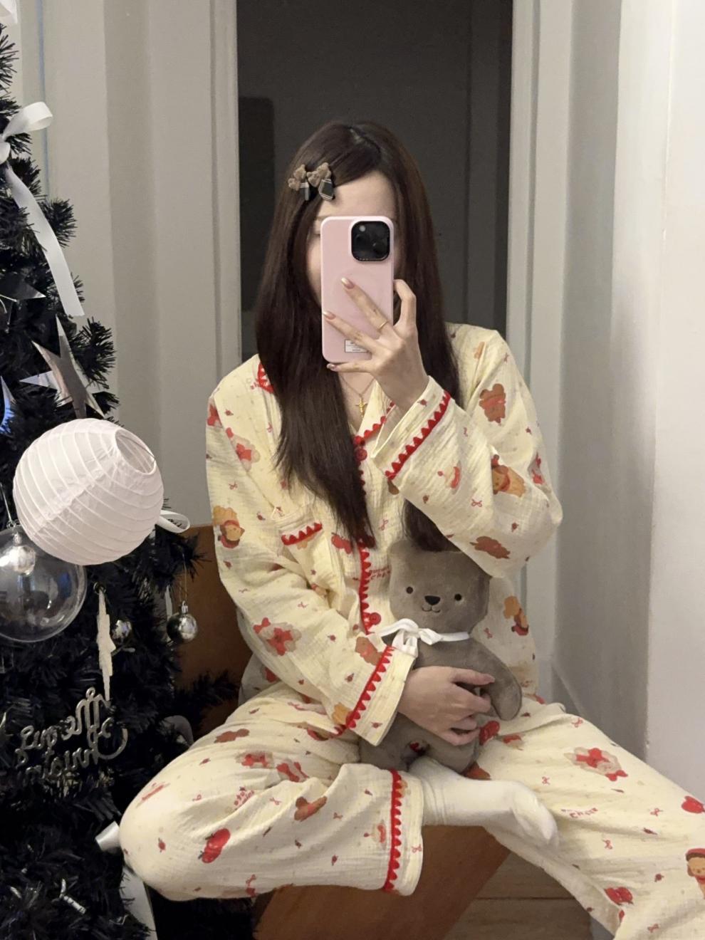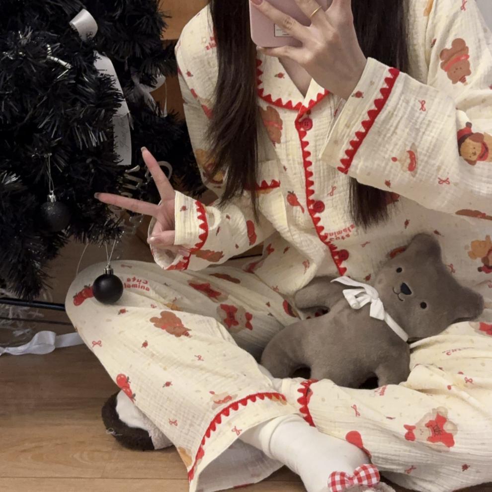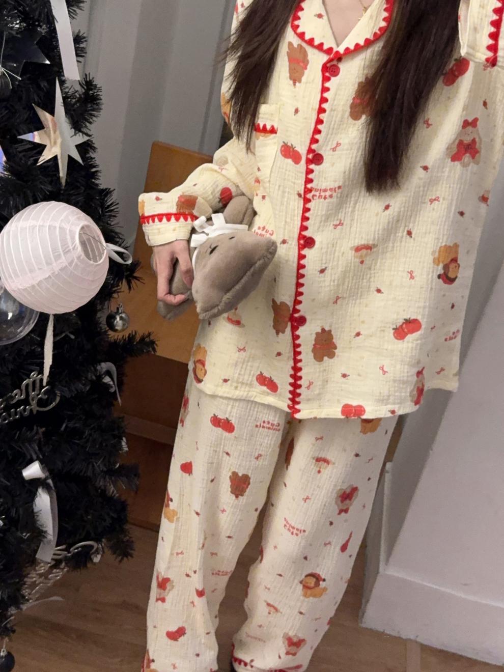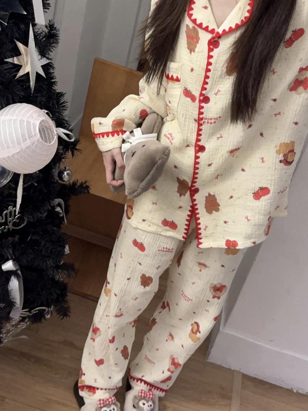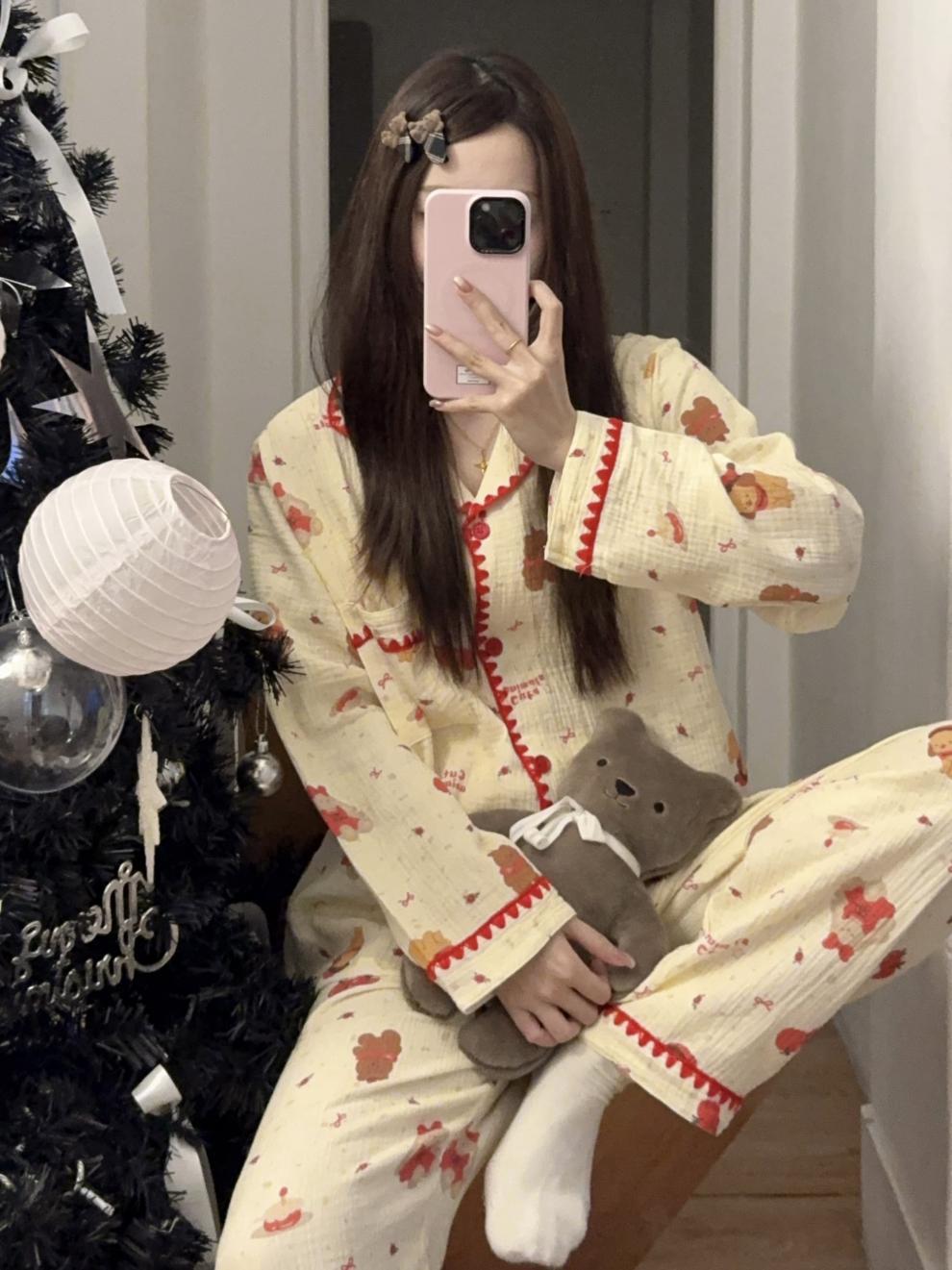 Pijamas de Algodón Japonéses Lindos para Mujer Otoño Primavera Manga Larga Dulce Dibujo Animado Estudiante Conjunto Ropa de Casa Físico Taobao Mayoreo