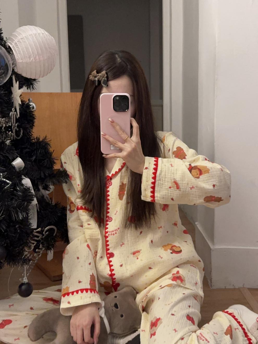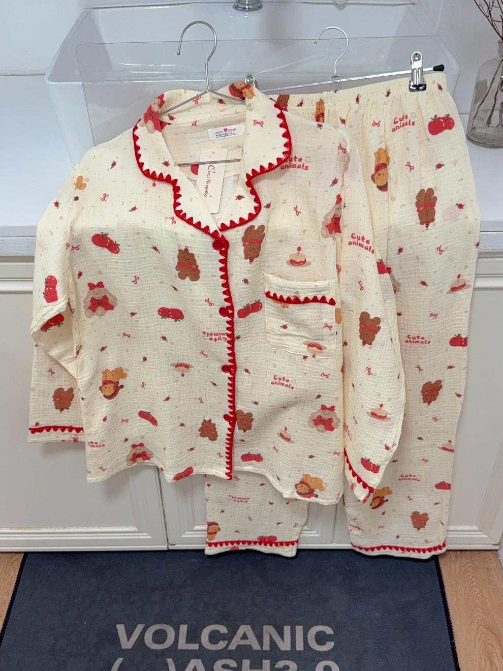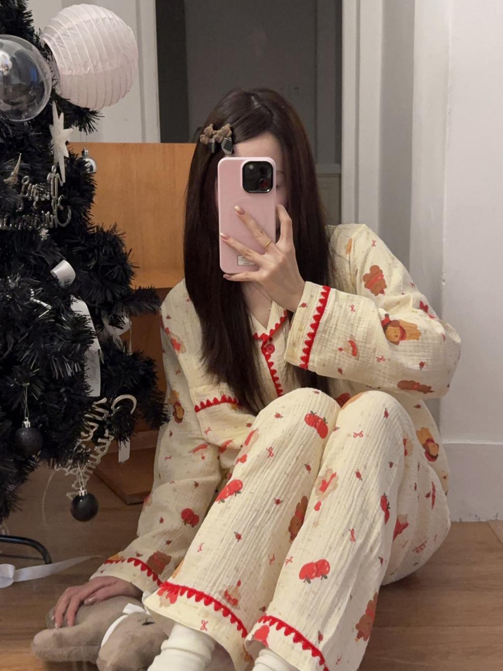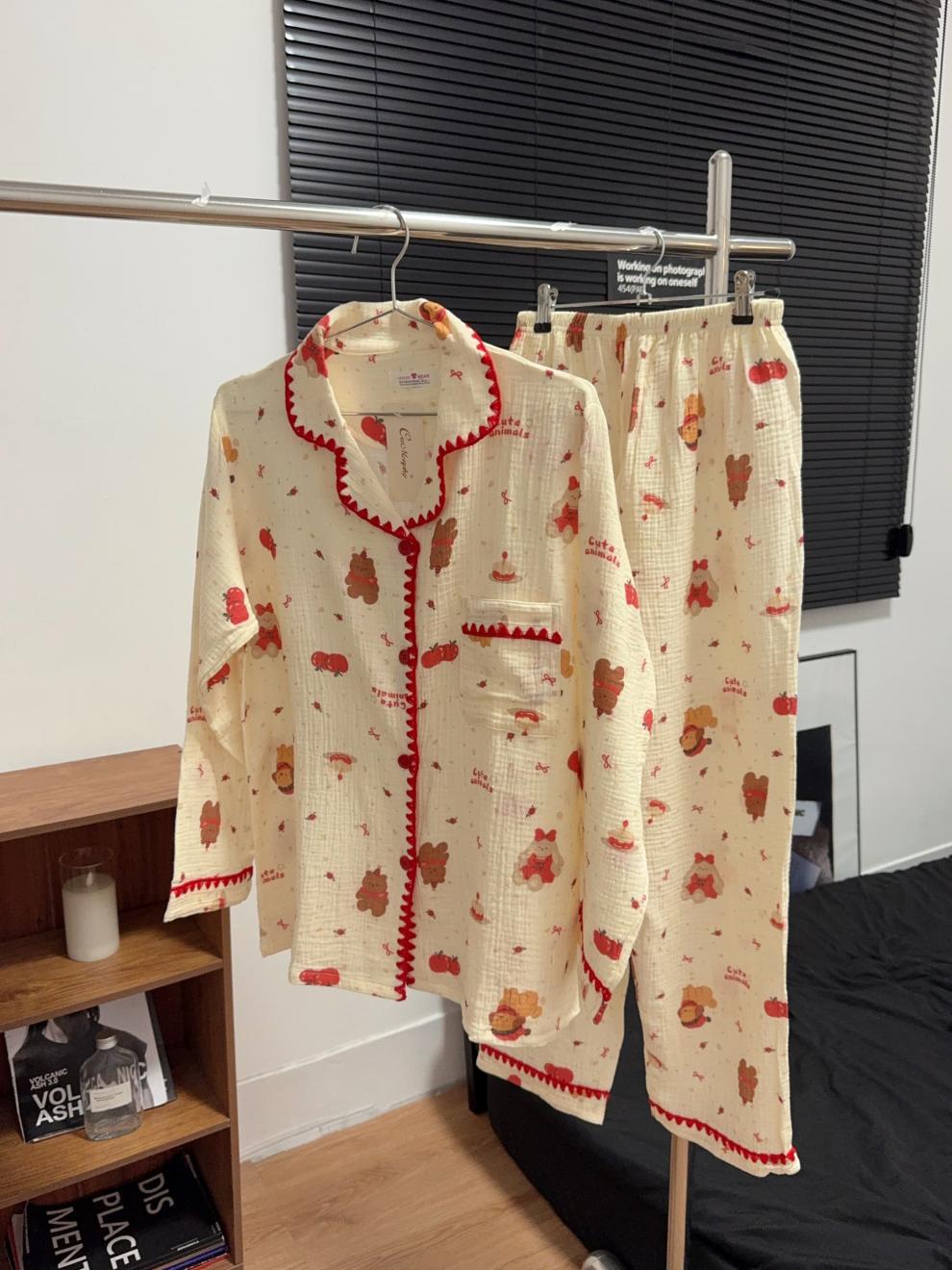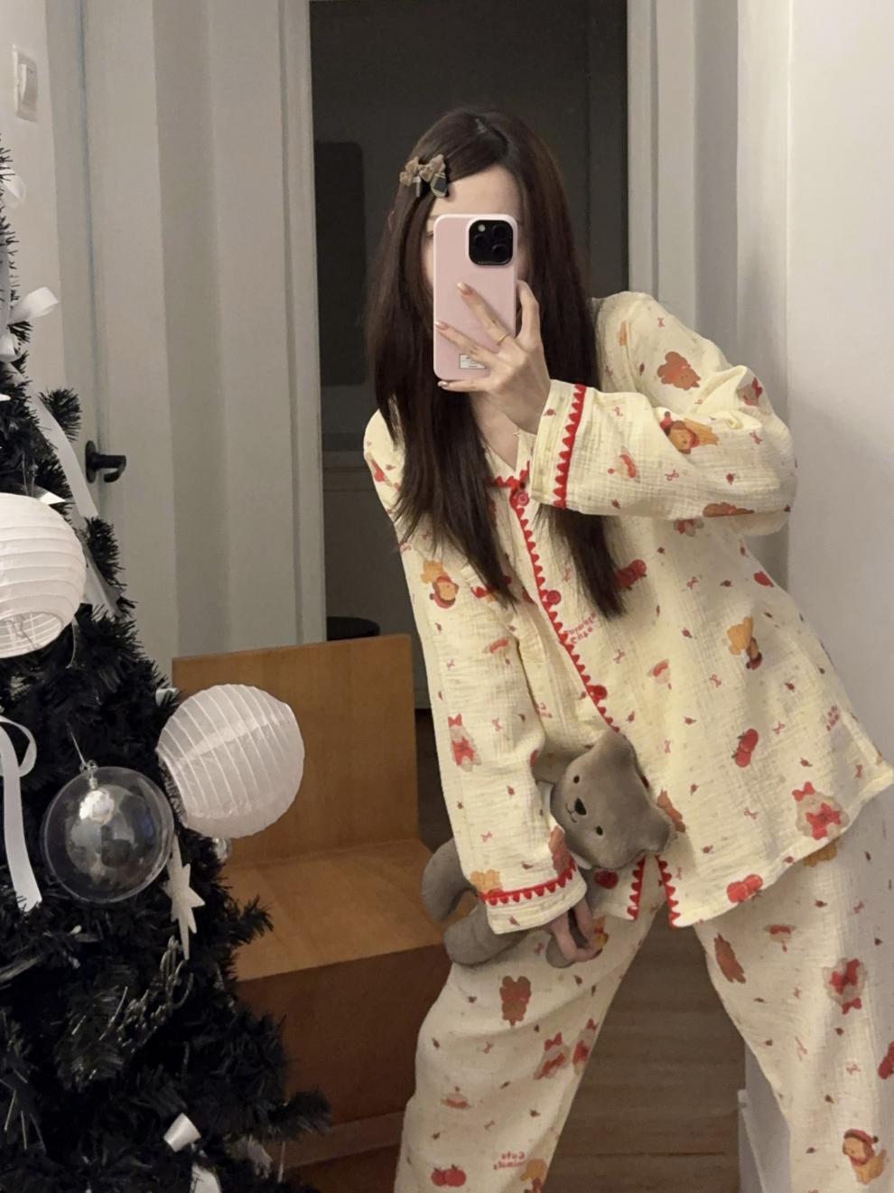 Pijamas de Algodón Japonéses Lindos para Mujer Otoño Primavera Manga Larga Dulce Dibujo Animado Estudiante Conjunto Ropa de Casa Físico Taobao Mayoreo