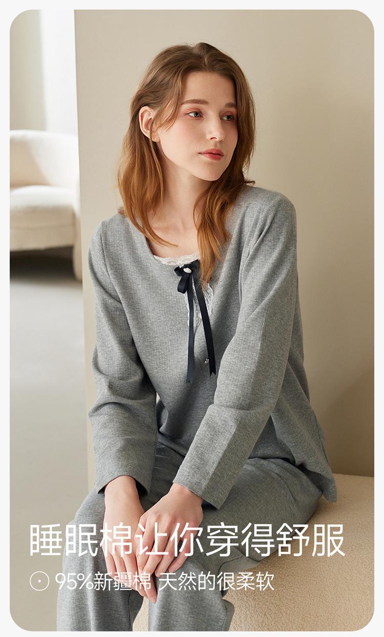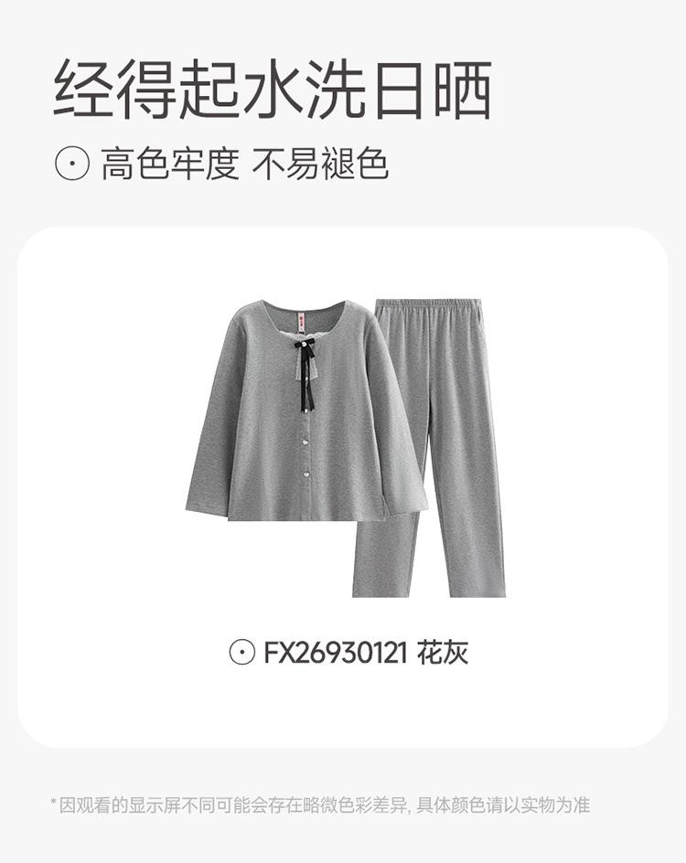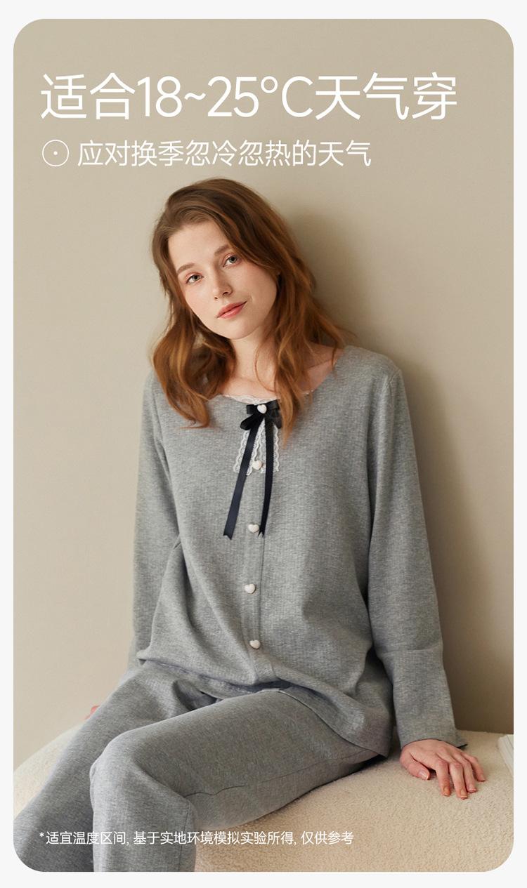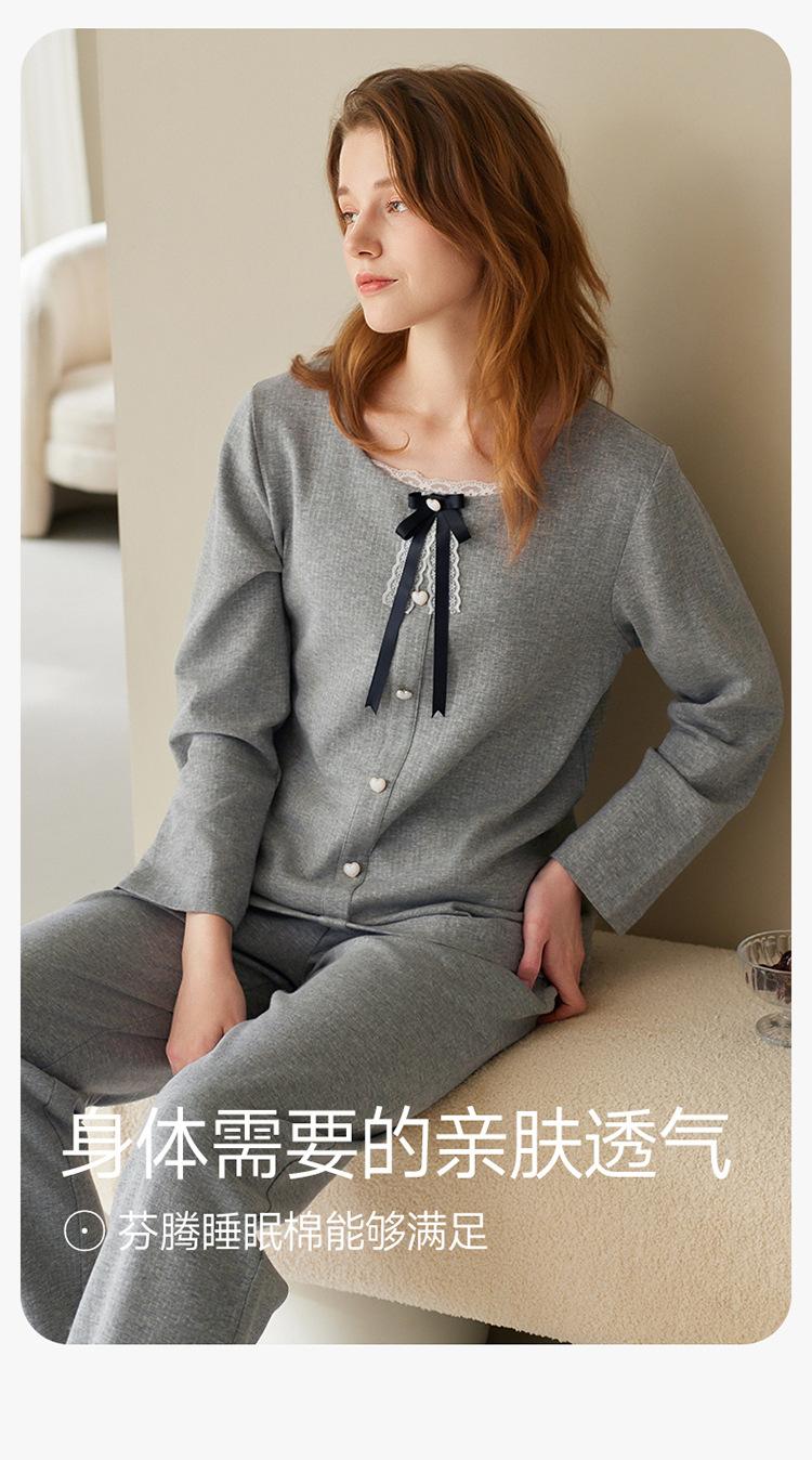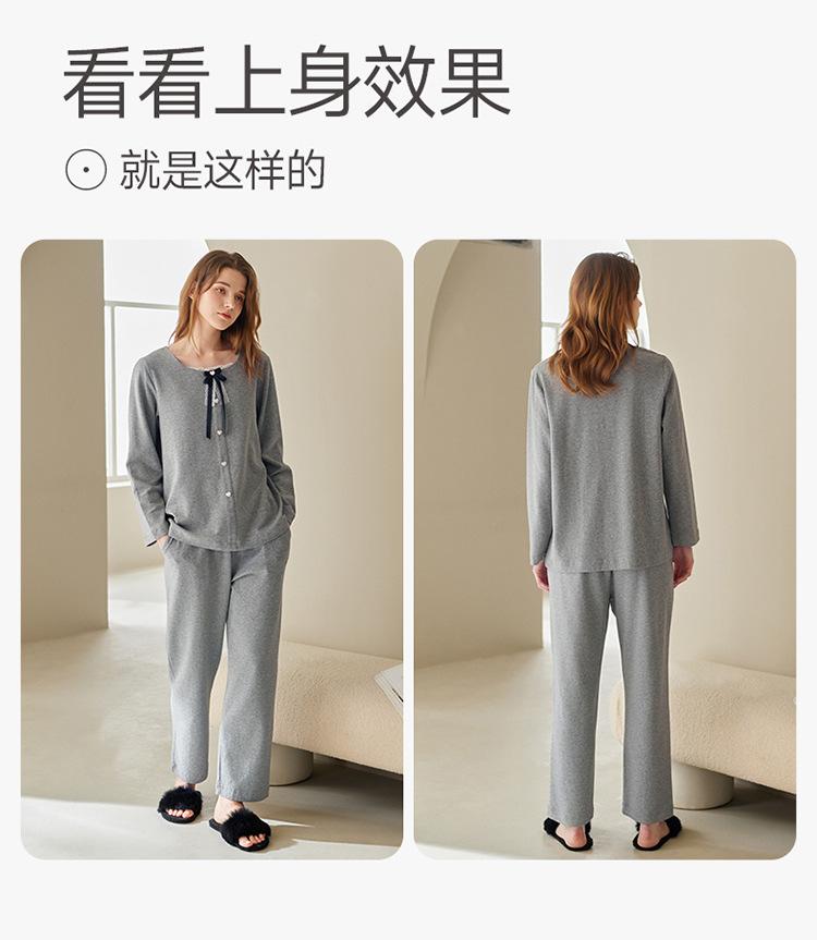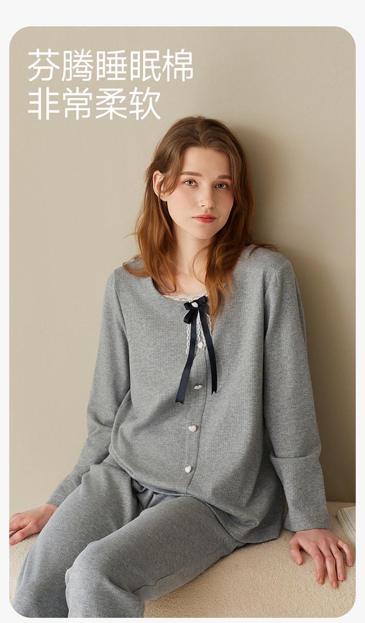 Fenteng [Algodón para Dormir Antiestático] Pijama de Algodón Puro para Mujer Primavera y Otoño Set de Manga Larga Antibacteriano Se Puede Usar Fuera Ropa para el Hogar