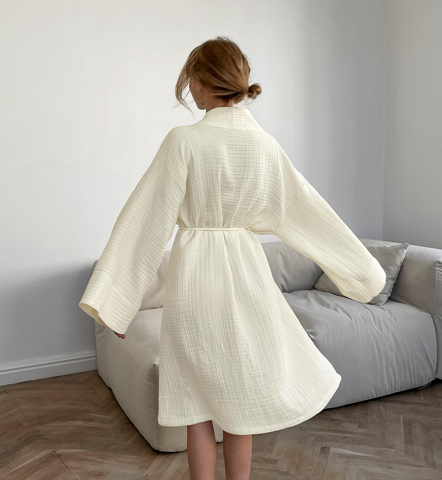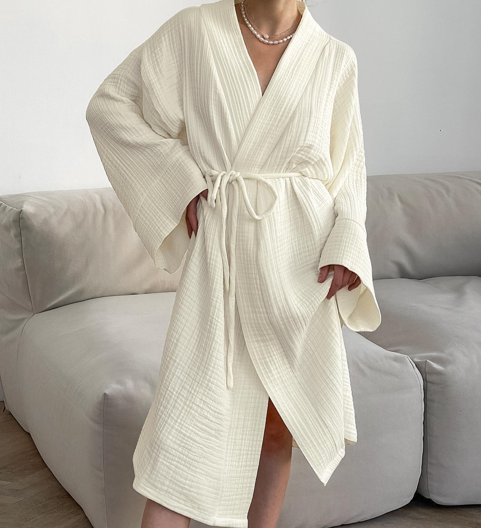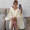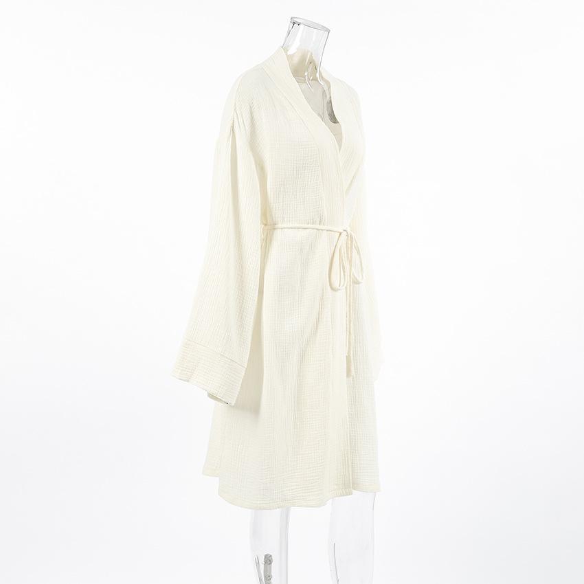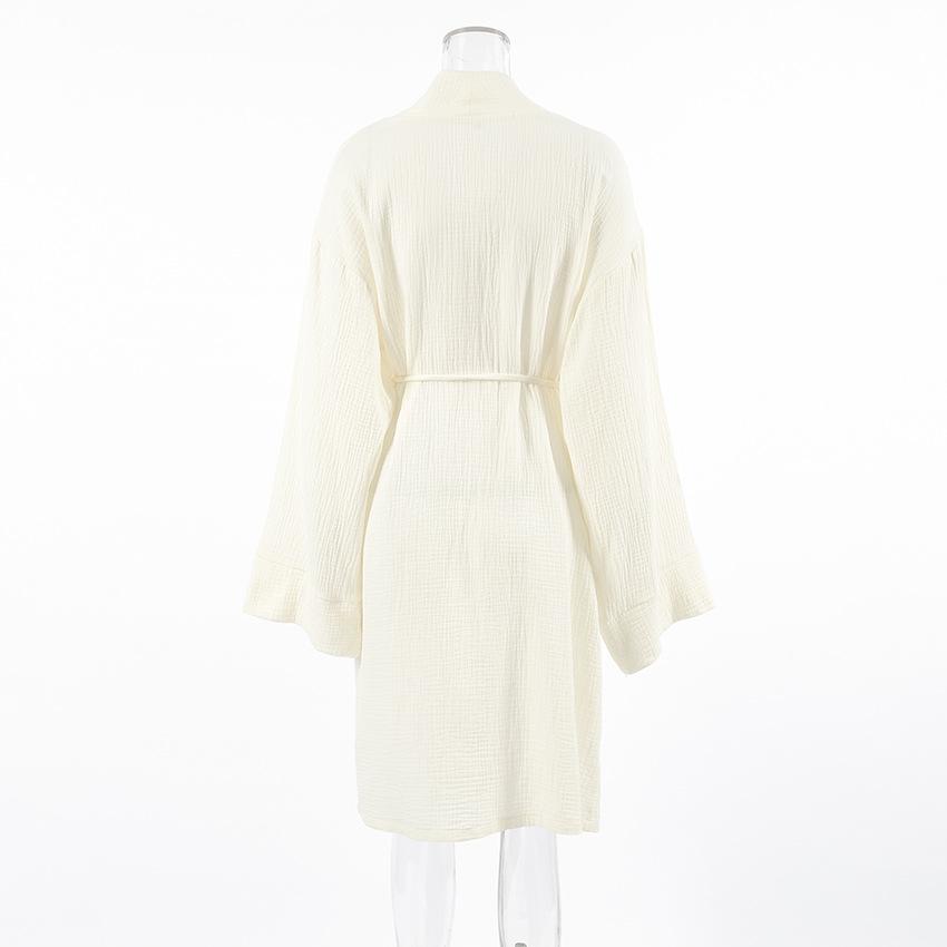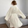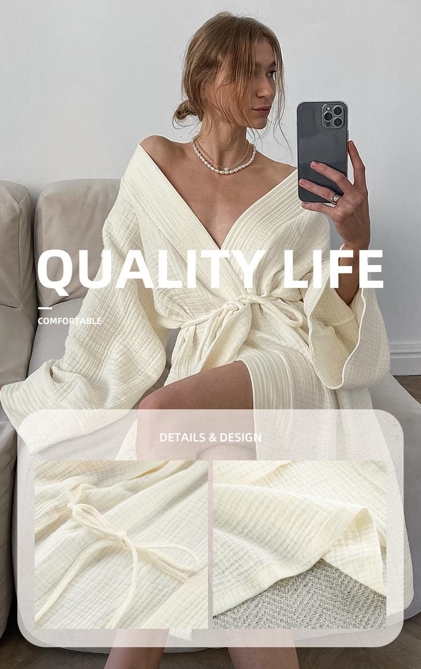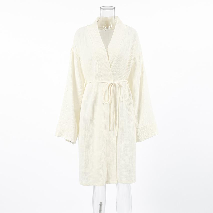 Bata de baño de manga larga con lazo de algodón puro transpirable y cómodo de estilo europeo y americano, pijamas holgados para otoño 2025, ropa de casa para mujer