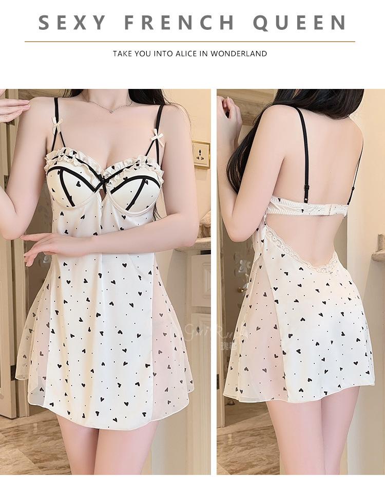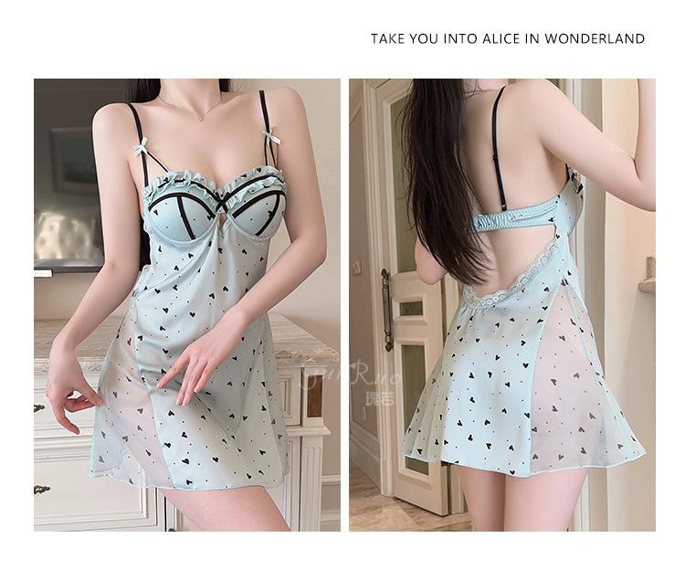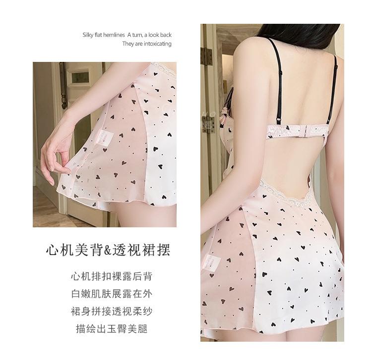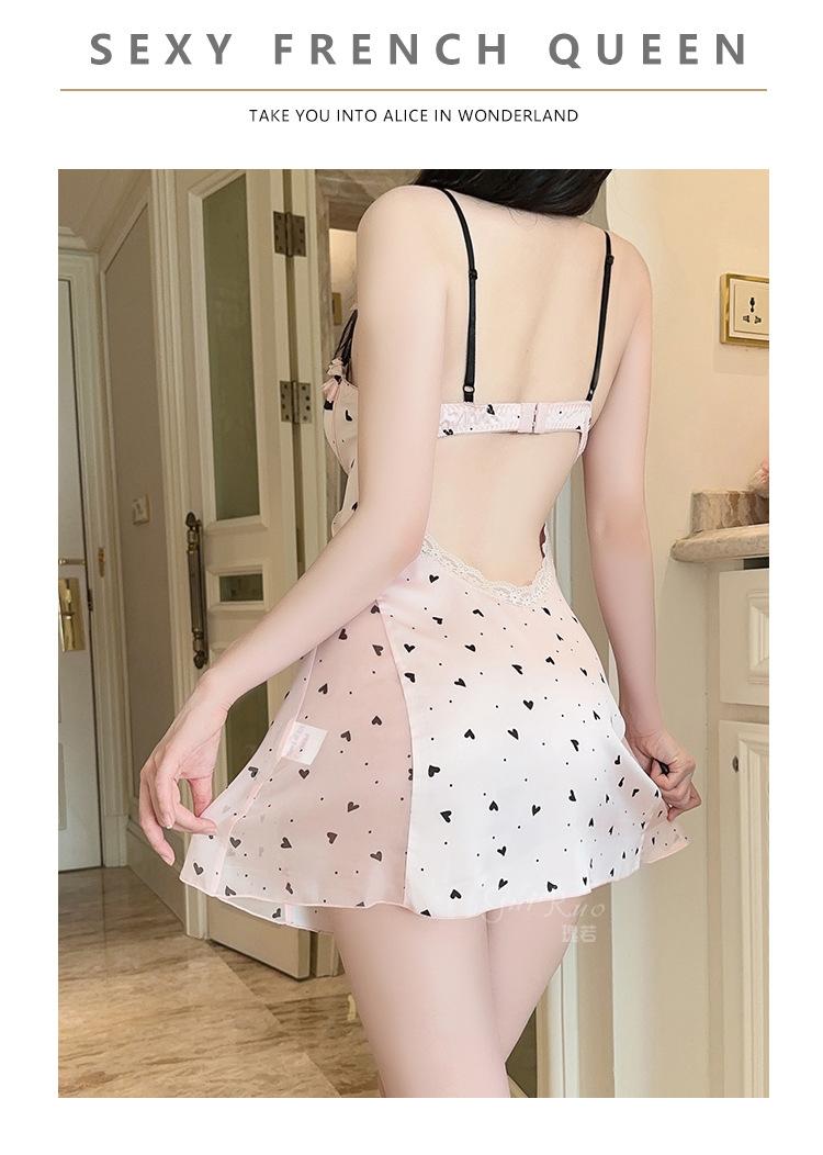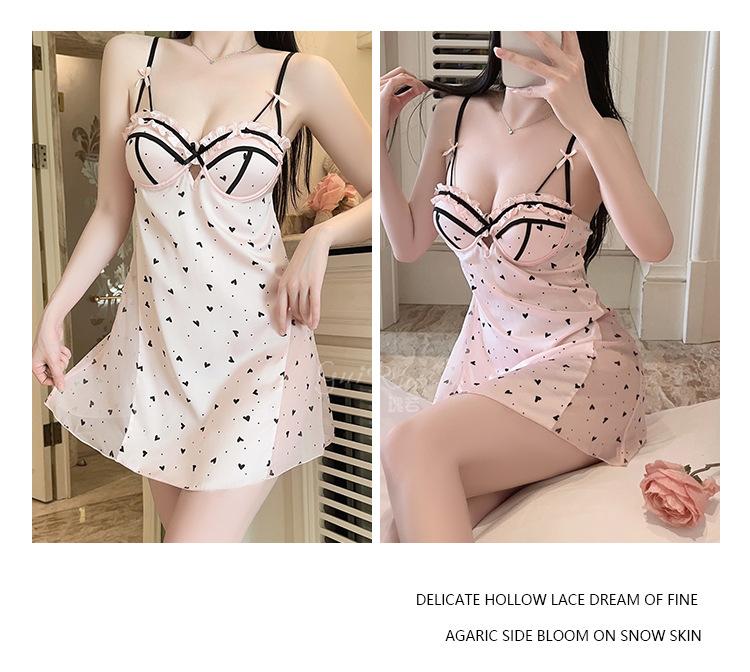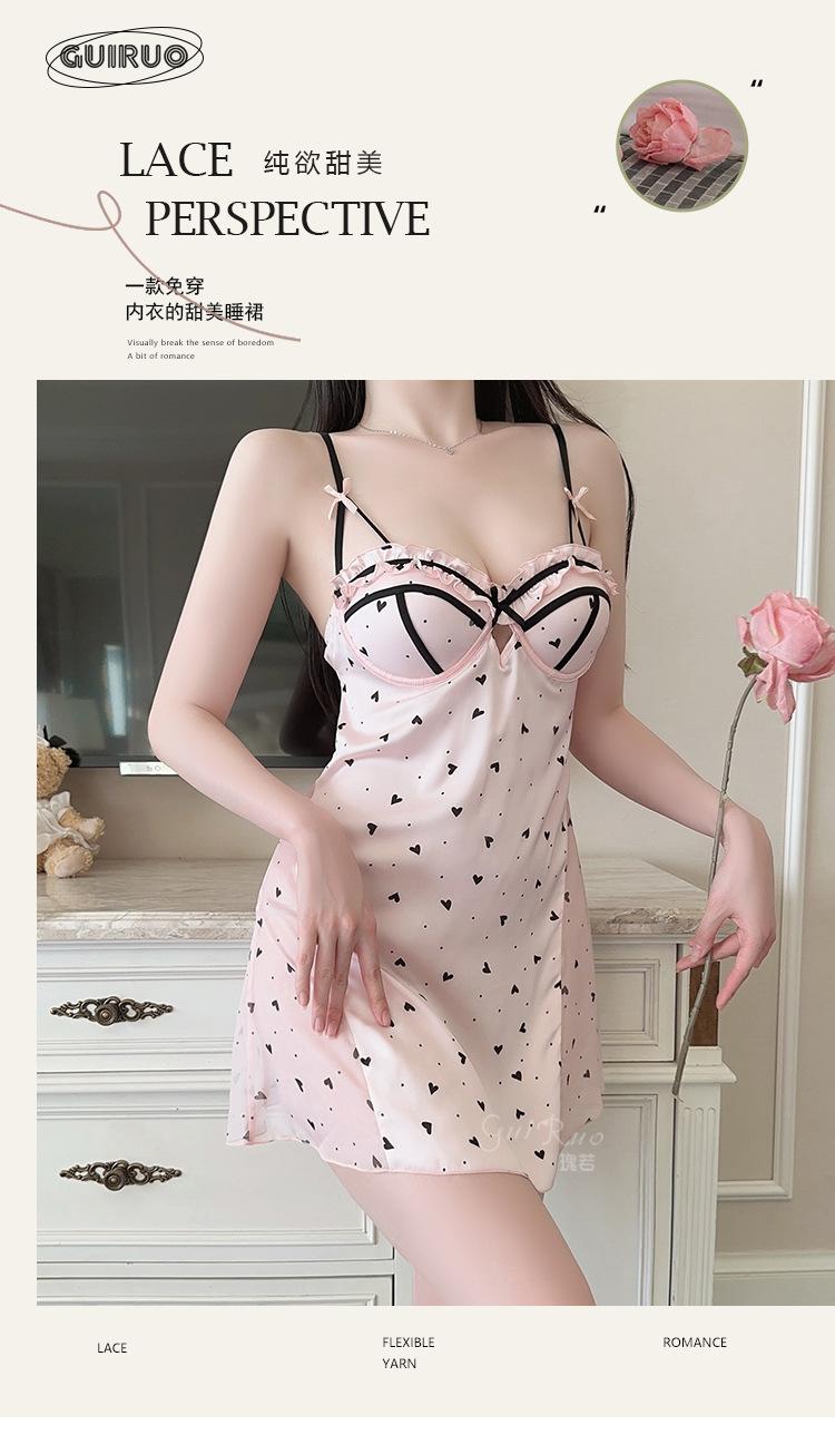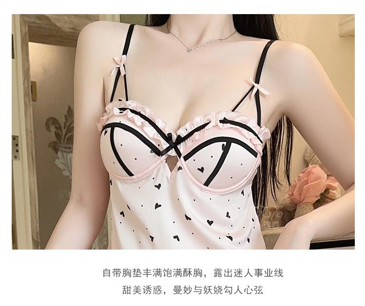 Precioso Pijama de Satén Talla Grande Pure Desire Tentación de Escote en V Profundo con Almohadillas en el Busto Camisón Sexy de Malla Conjunto para Estar en Casa 4944
