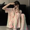 [imitation cotton] three-piece suit: dopamine stripes (short sleeve shorts trousers)