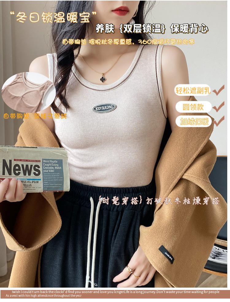 Con Almohadilla en el Pecho Camisola Gruesa con Forro Polar Cálido para Mujer 2025 Nuevo Otoño e Invierno Ropa Interior Top Reductor Camiseta Base Invierno