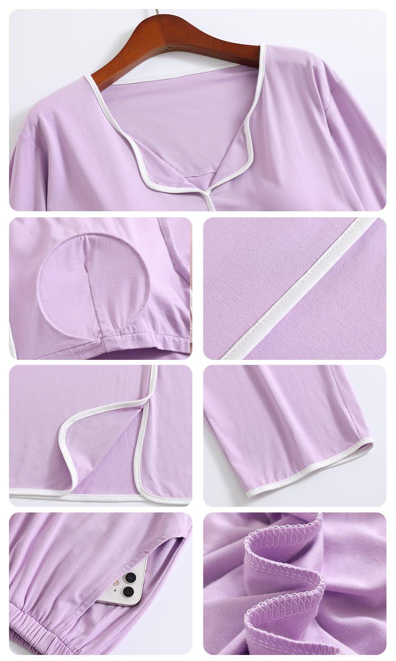 Pijama para mujer con almohadilla en el pecho primavera y otoño modal manga larga ropa para el hogar primavera y verano delgada ropa exterior traje de talla grande