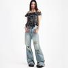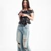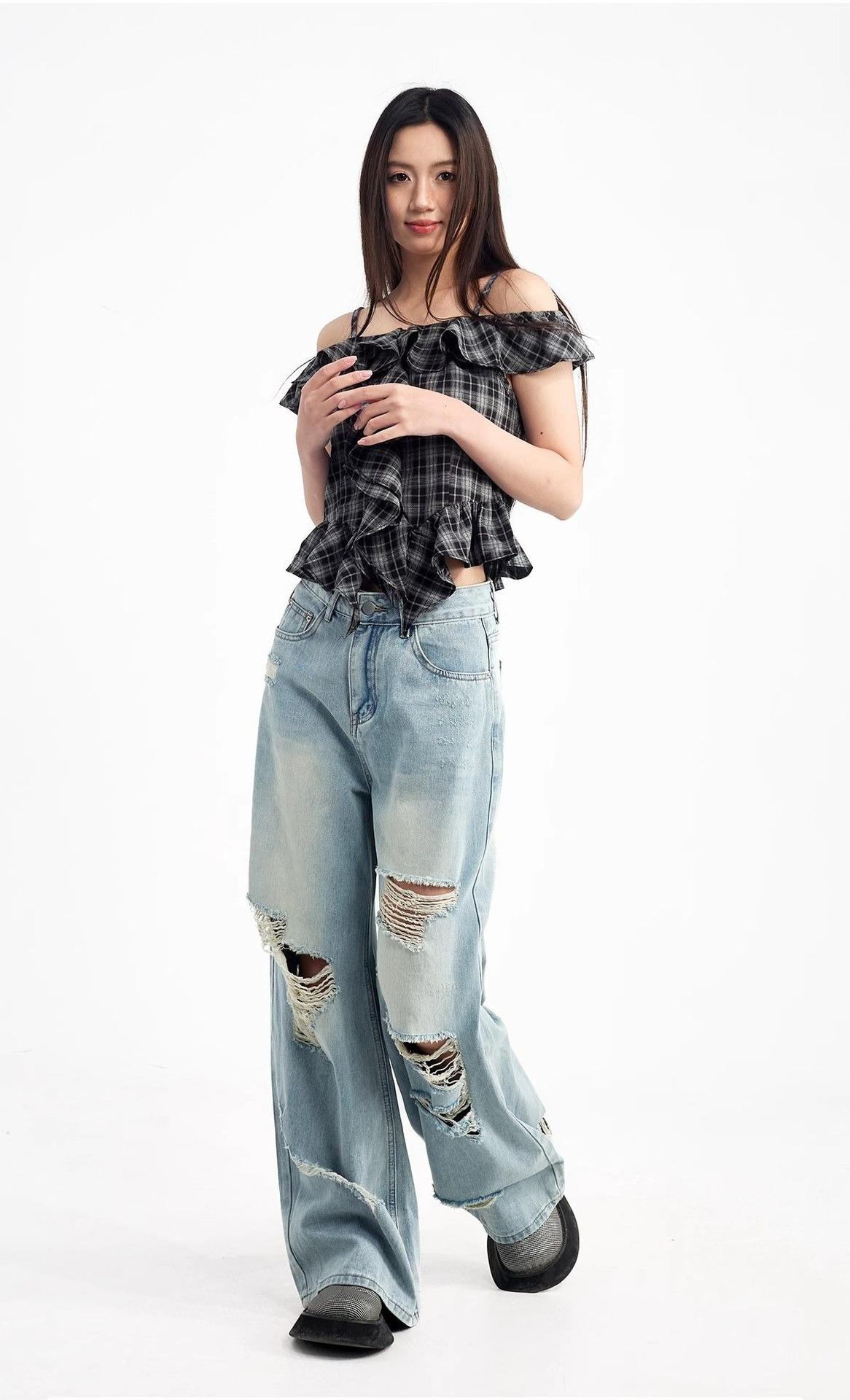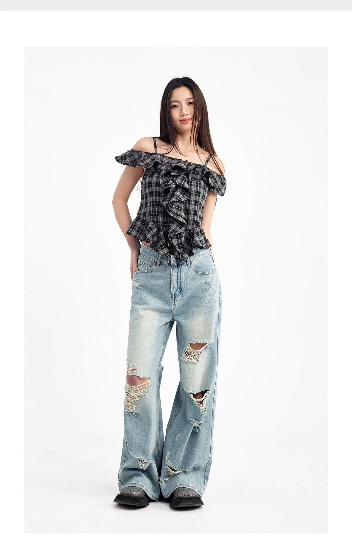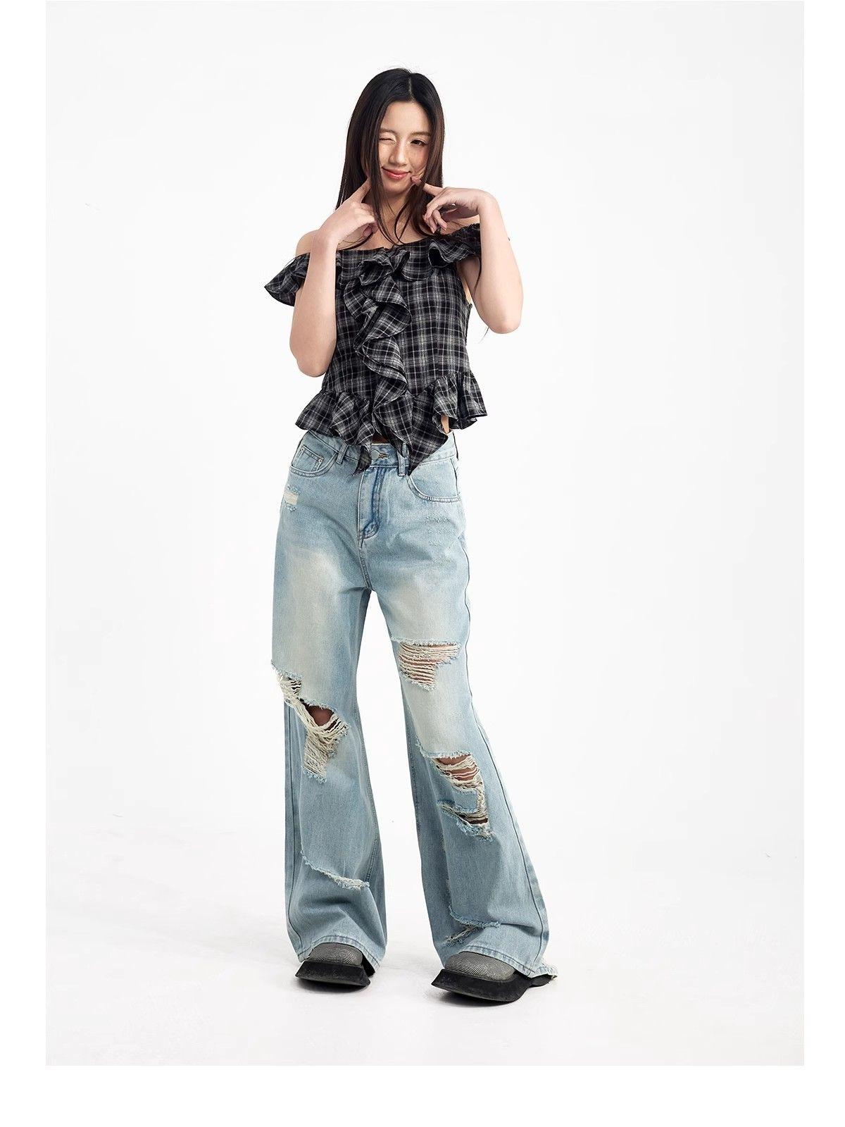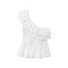 Comercio transfronterizo verano nuevo camisola a cuadros blanco y negro top hombros descubiertos camiseta de mujer blusa con adorno de volantes