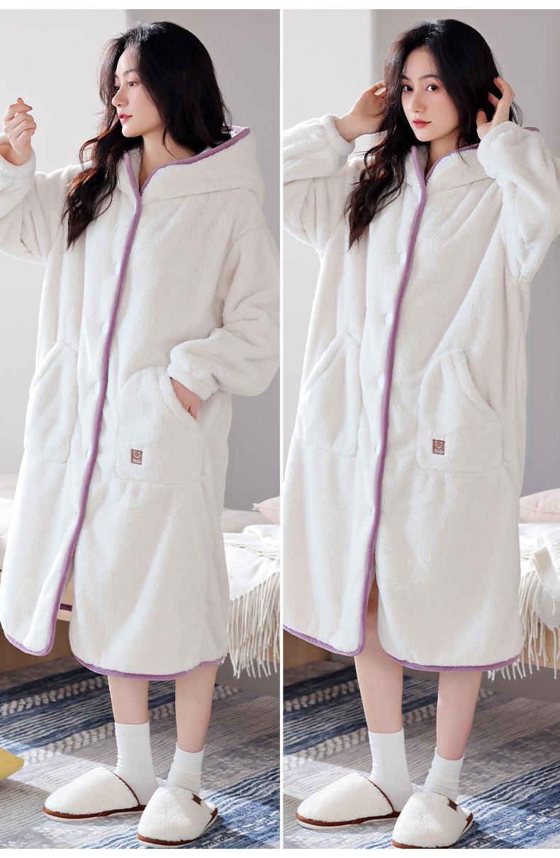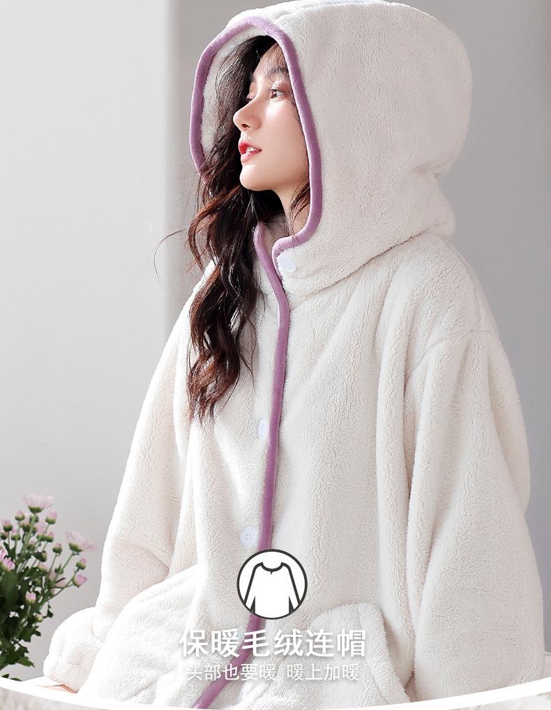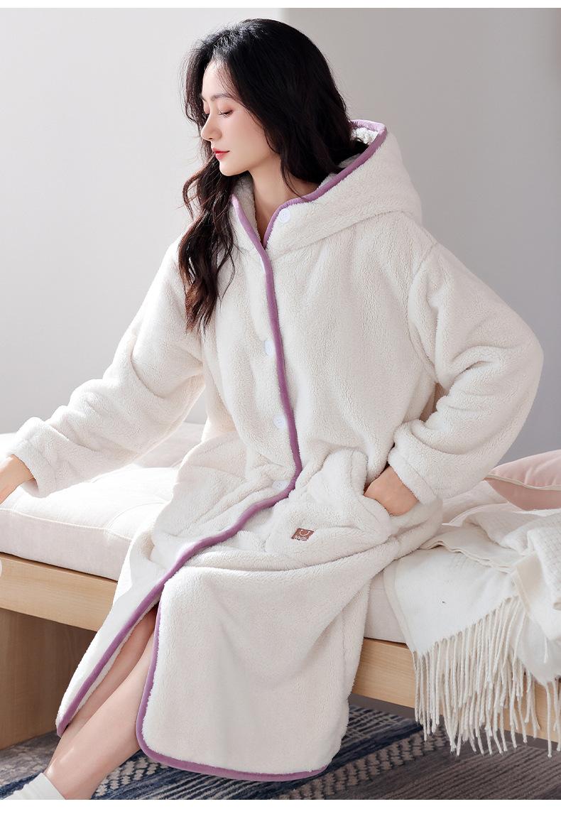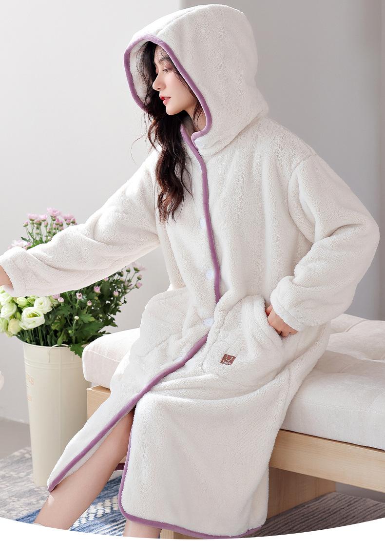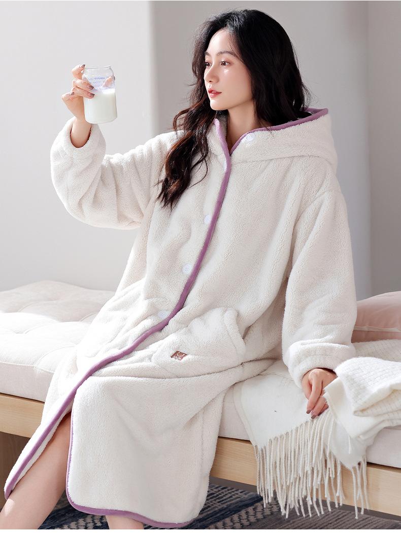 Camisón de franela para mujer, otoño e invierno, con forro polar de terciopelo coral y capucha gruesa, pijama largo y cálido (2025).