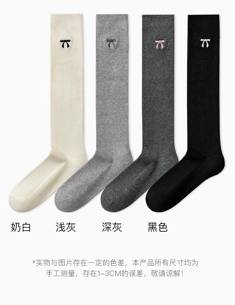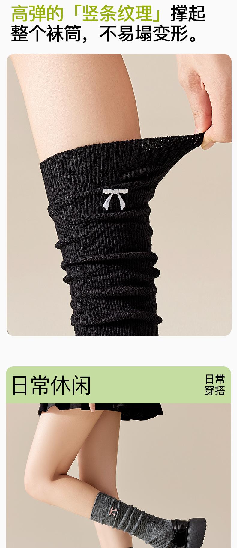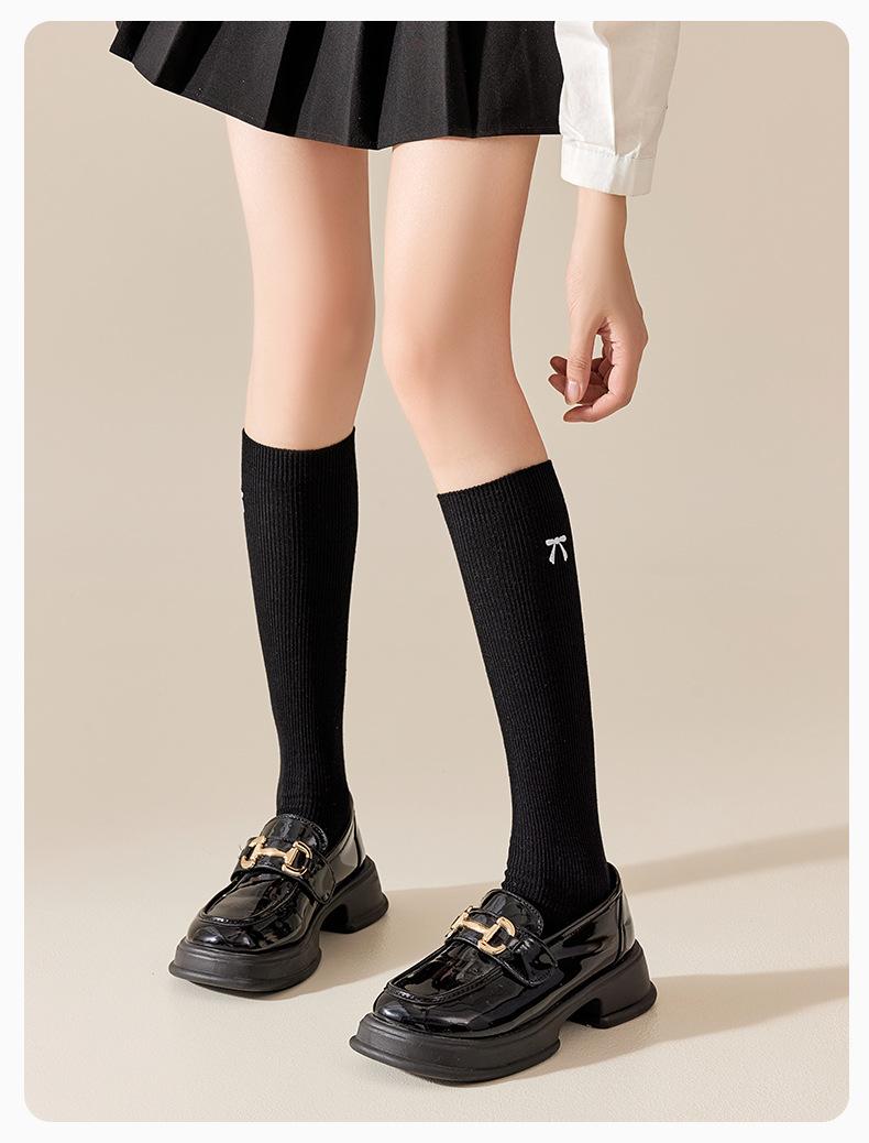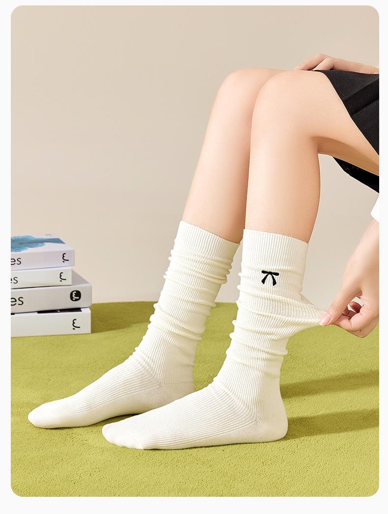 Bordado de Lazo Estilo Ins Retro Largo a la Pantorrilla Estilo Escolar JK Japonés Calcetines Arrugados Calcetines hasta la Rodilla Resistentes al Olor para Mujer Otoño Invierno
