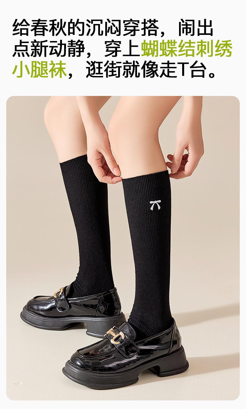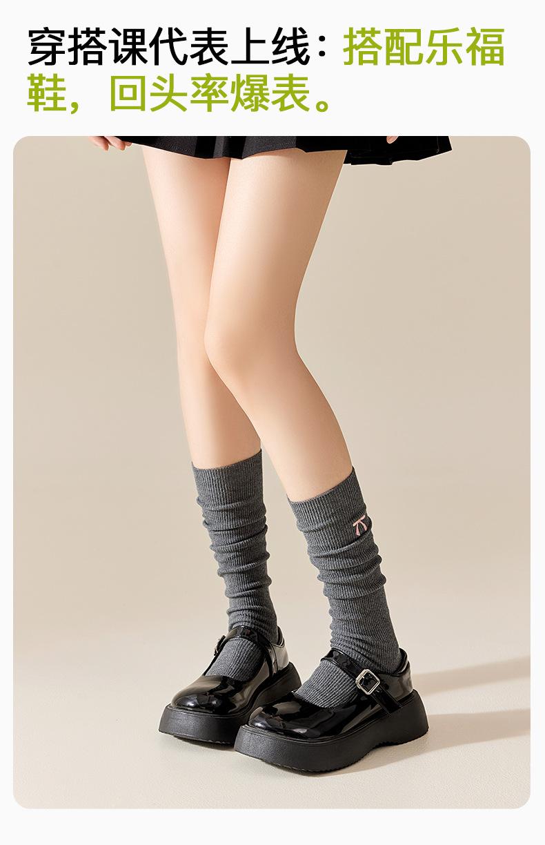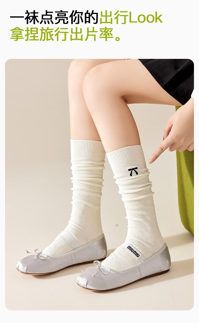 Bordado de Lazo Estilo Ins Retro Largo a la Pantorrilla Estilo Escolar JK Japonés Calcetines Arrugados Calcetines hasta la Rodilla Resistentes al Olor para Mujer Otoño Invierno