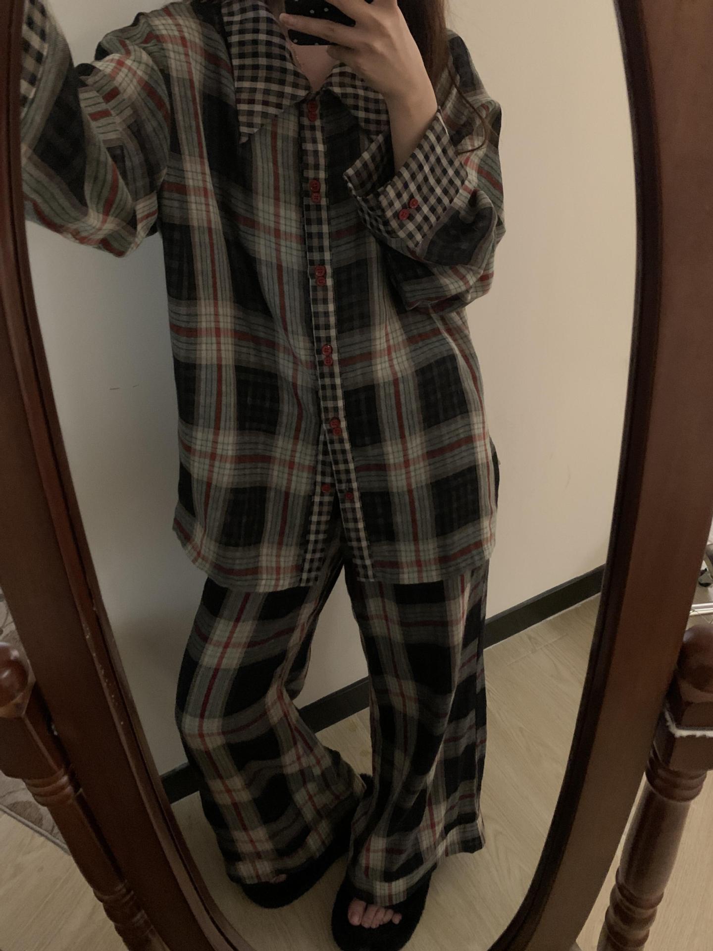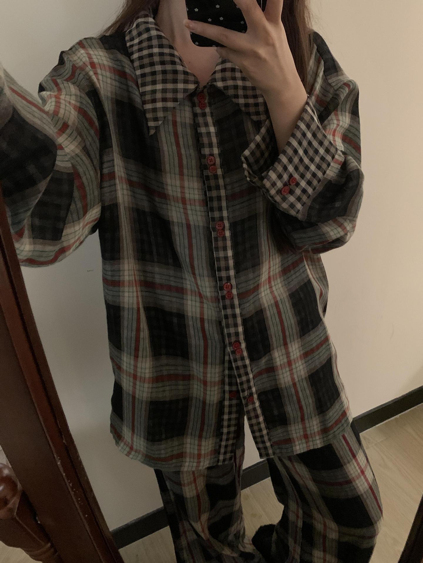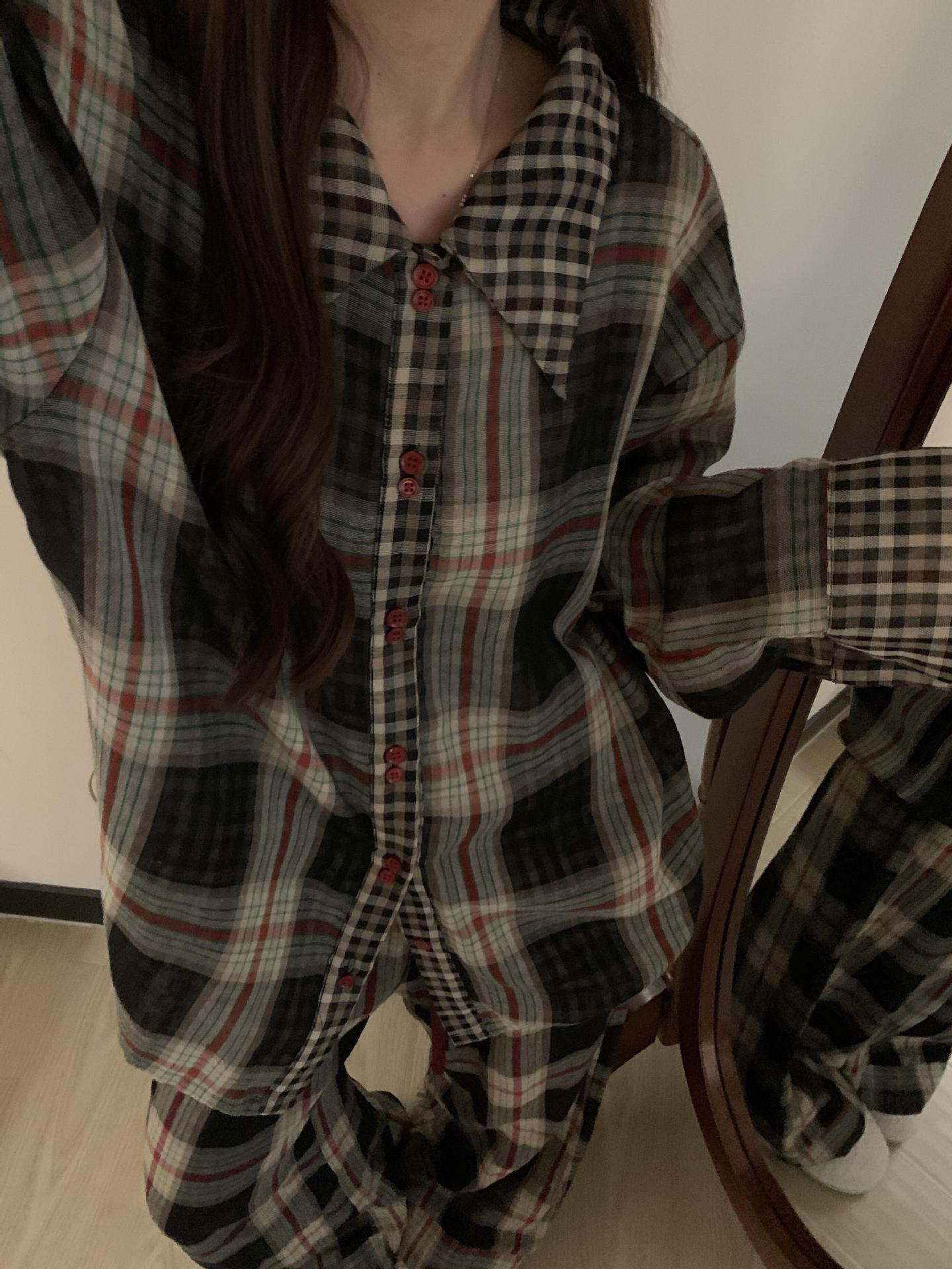 Pijama de Camisa de Contraste de Alta Calidad para Niña Primavera y Otoño para Mujer Suelto Talla Grande Pantalones Traje Ropa para el Hogar para Usar Afuera