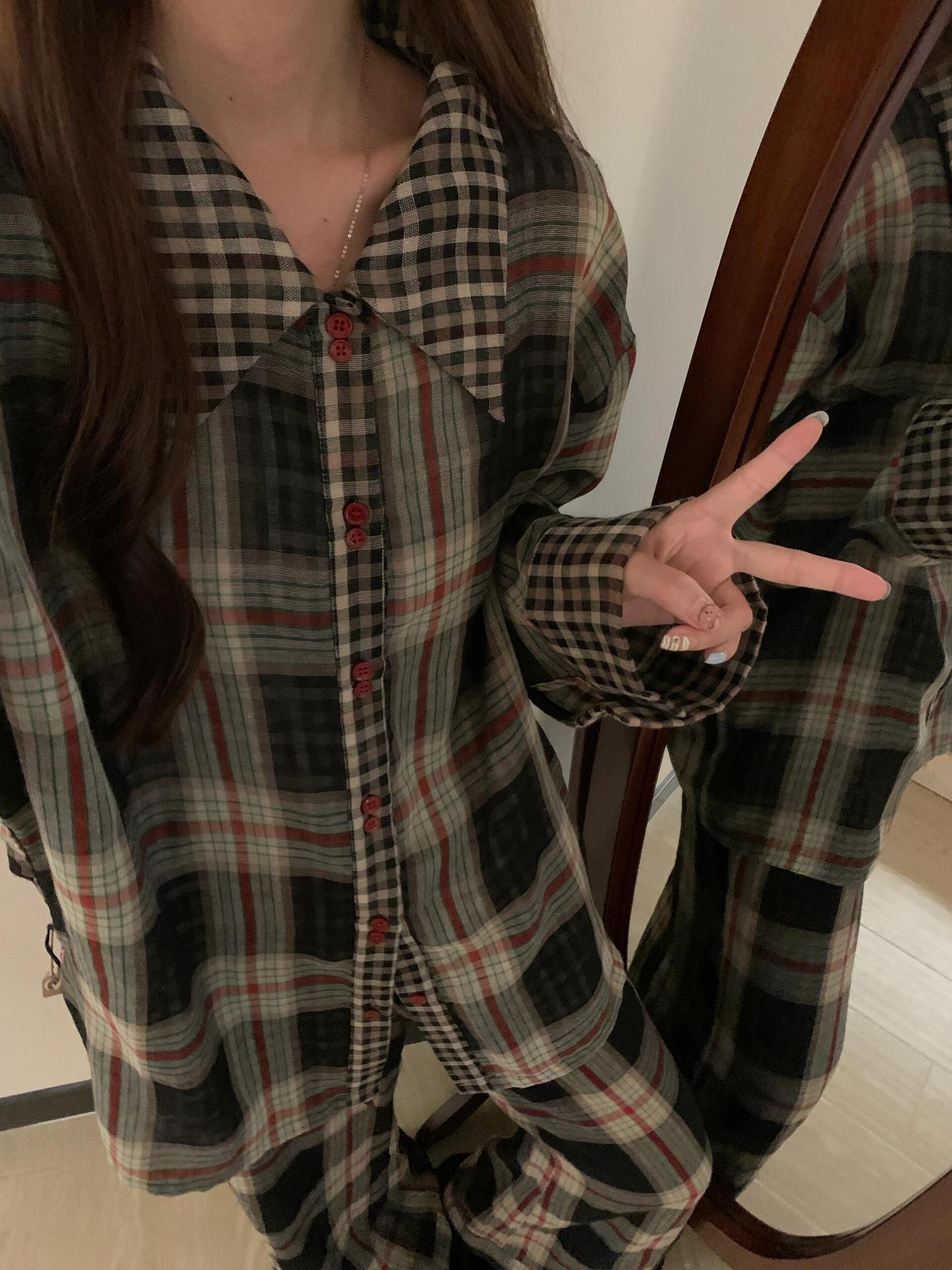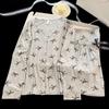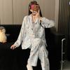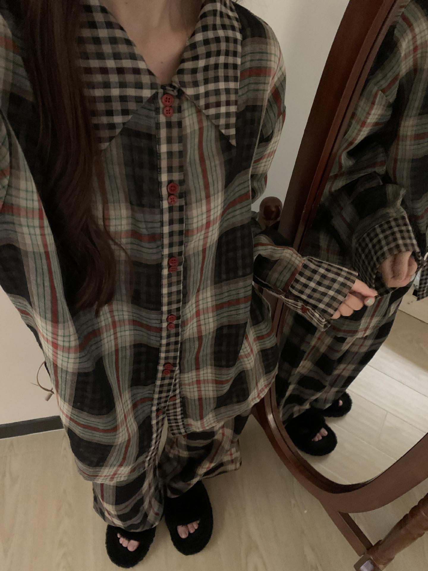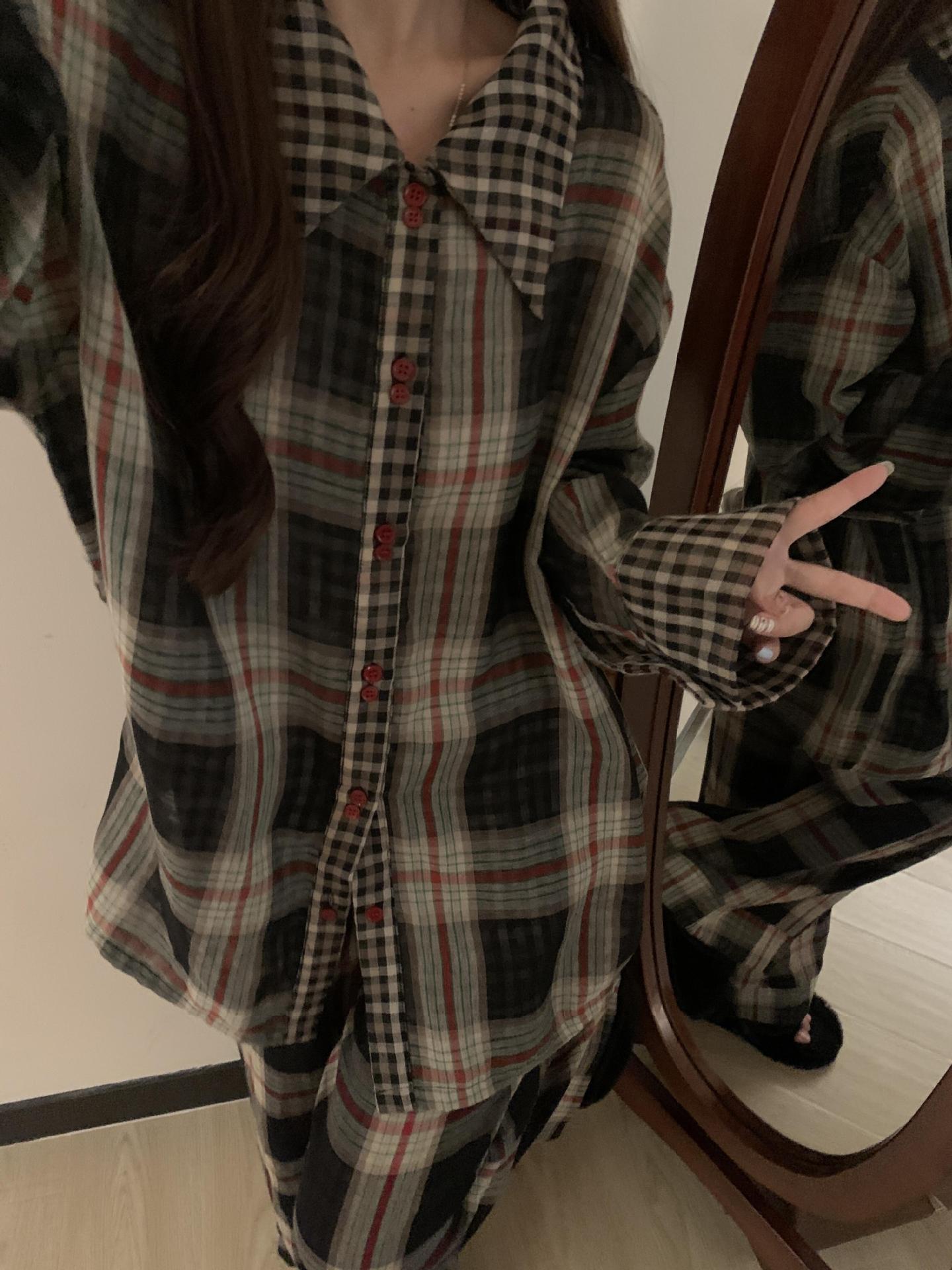 Pijama de Camisa de Contraste de Alta Calidad para Niña Primavera y Otoño para Mujer Suelto Talla Grande Pantalones Traje Ropa para el Hogar para Usar Afuera