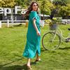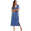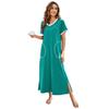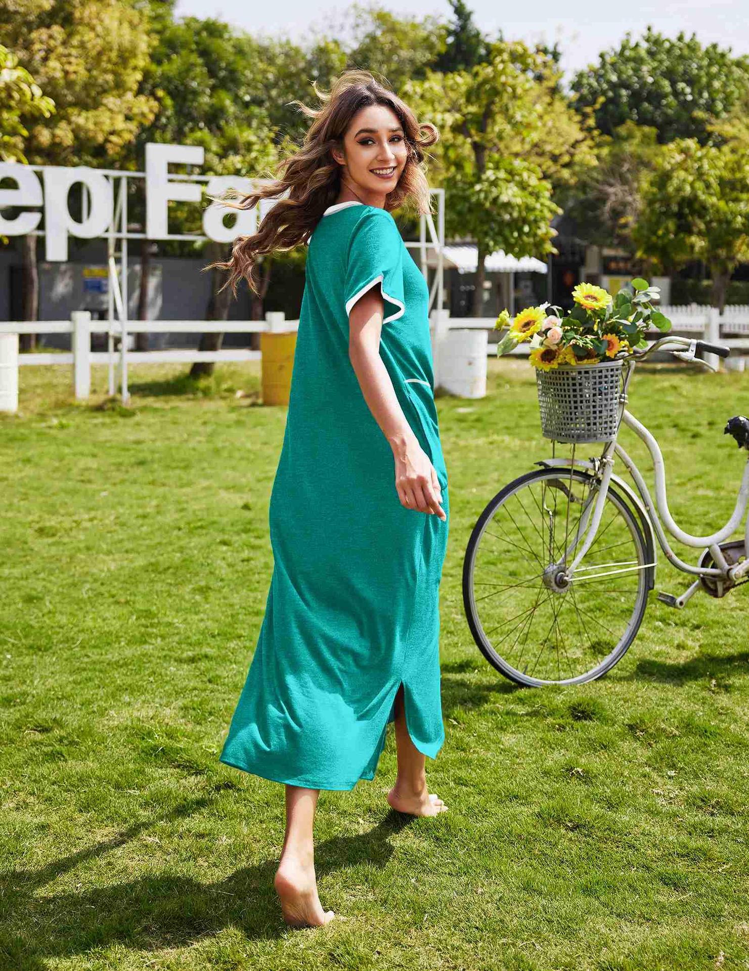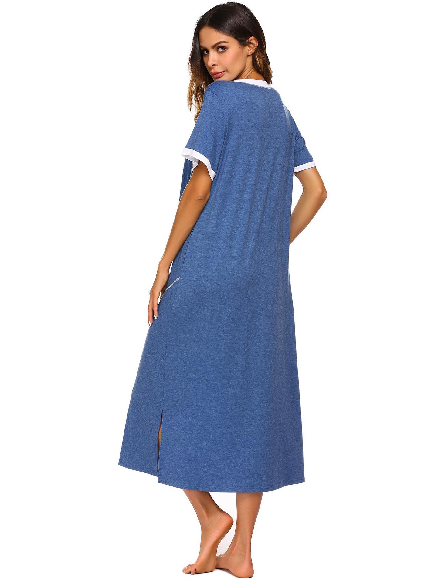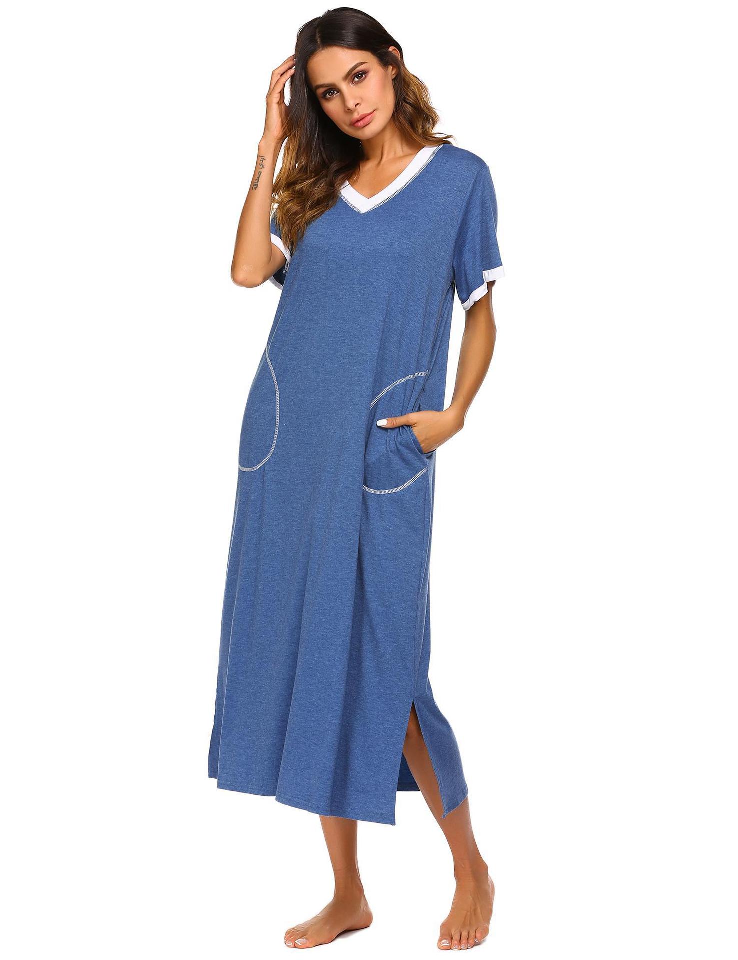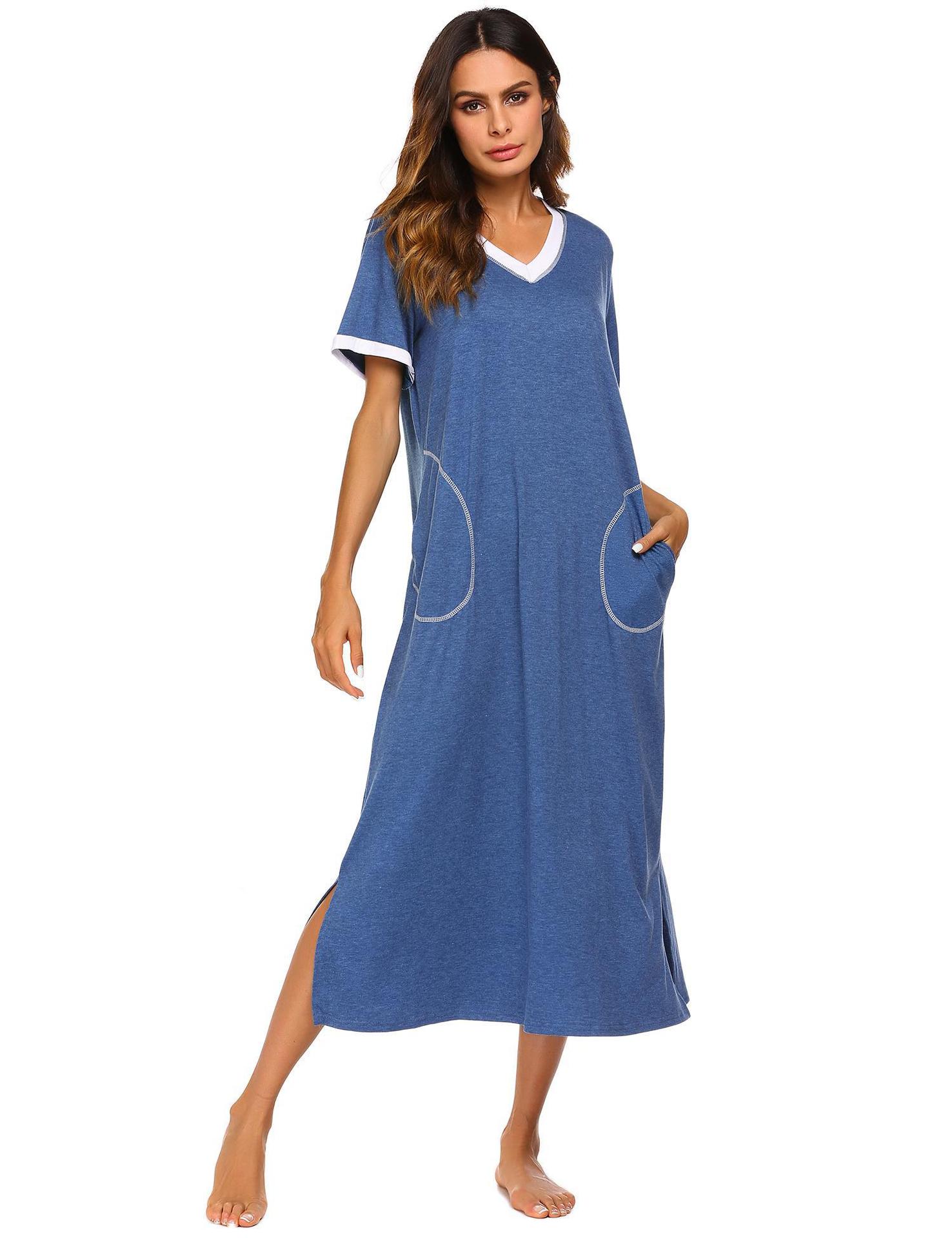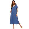 Camisón de Verano Estilo Europeo y Americano para Mujer Amazon Manga Corta Bloque de Color Patchwork Vestido Largo Casual Holgado Ropa de Casa Pijama para Mujer