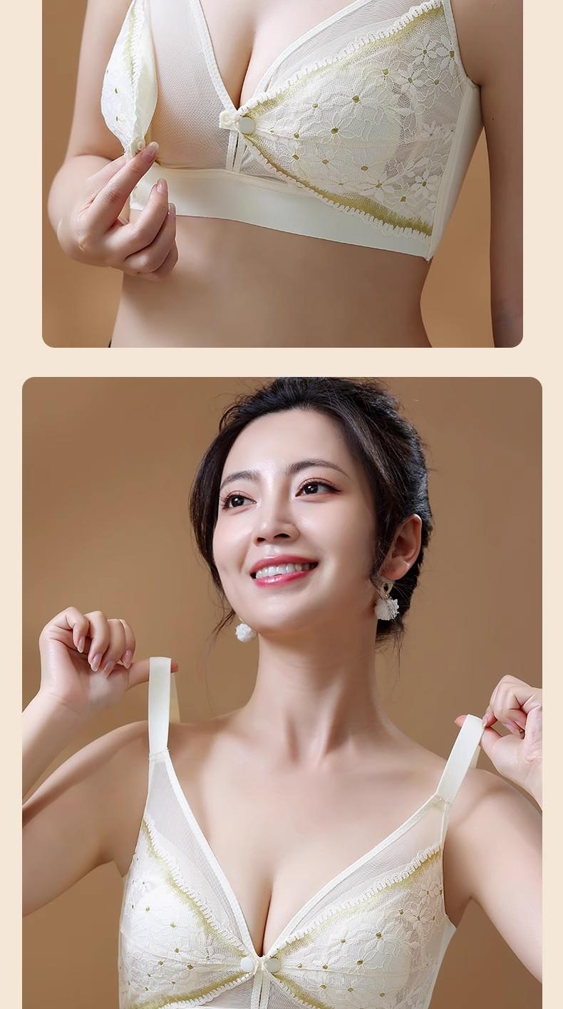 Taza Oreja de Conejo Sujetador de Lactancia Maternidad Verano Sujetador Ultradelgado Hebilla Frontal Abierta Sujetador de Lactancia Postparto Anticaída