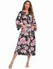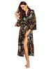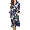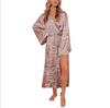 Bata de Mujer Europea y Americana Transfronteriza Imitación Seda Satén Cárdigan Manga Larga Ropa para el Hogar Bata Larga Pijama Mujer