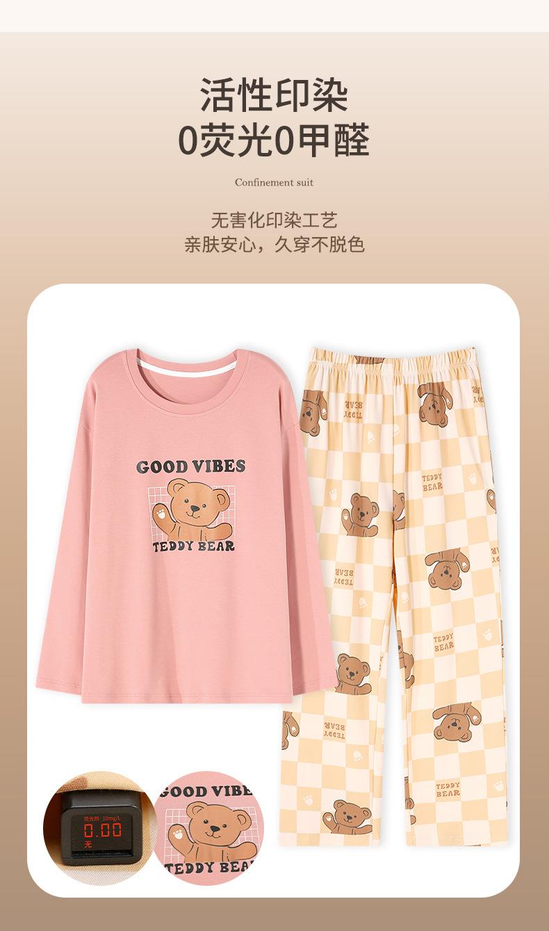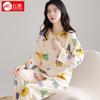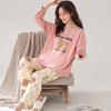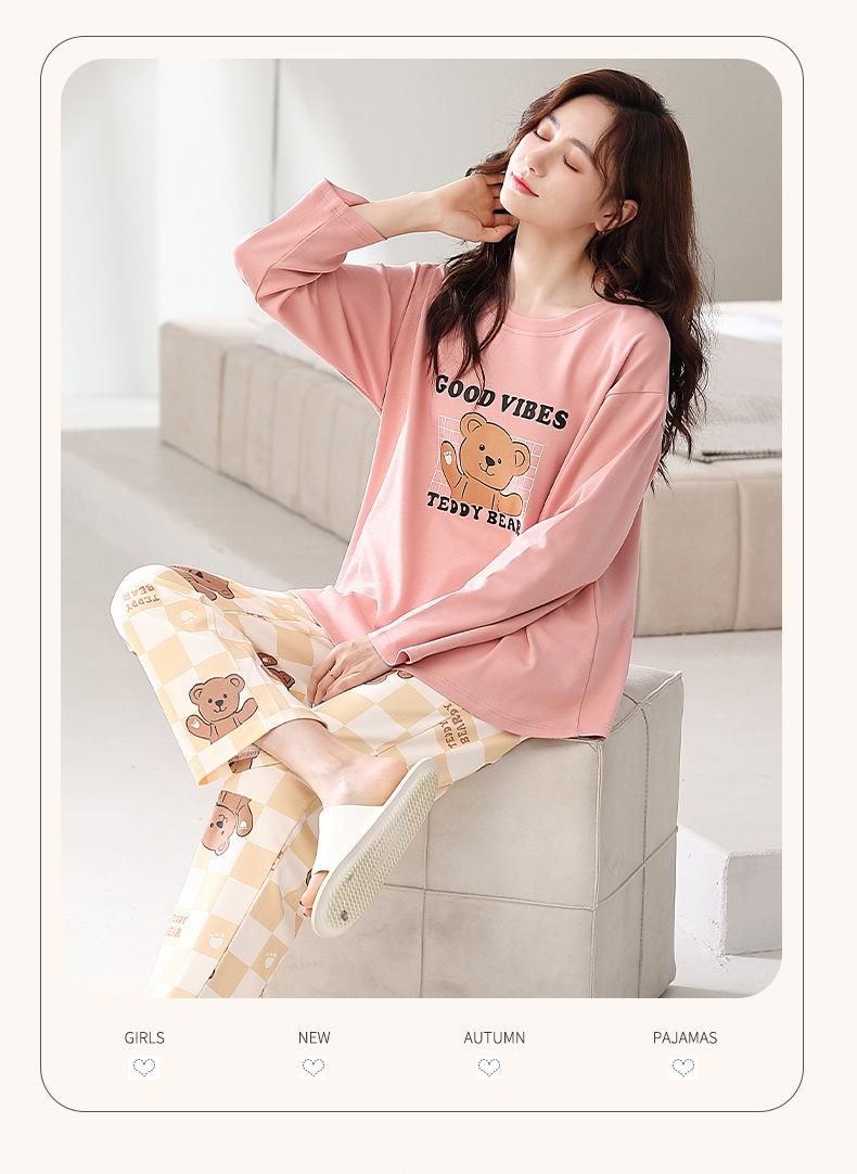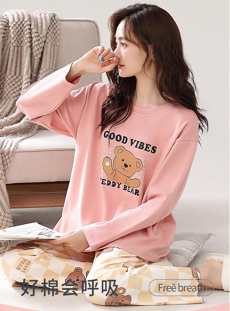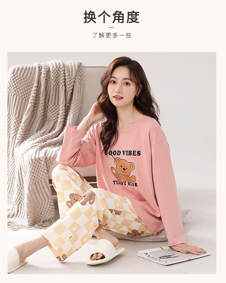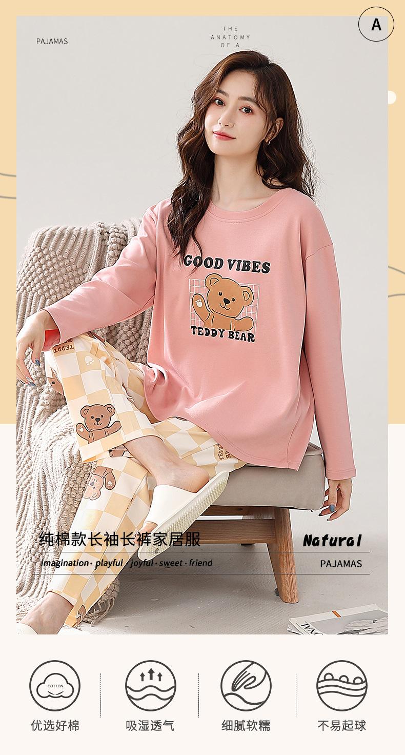 Pijama para mujer de primavera y otoño de algodón para estar en casa se puede usar fuera algodón lindo caricatura jersey manga larga traje de pantalón