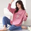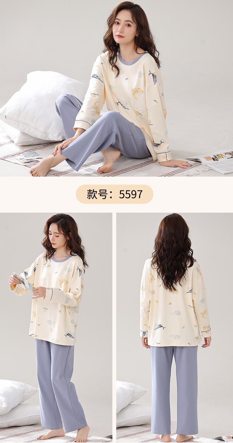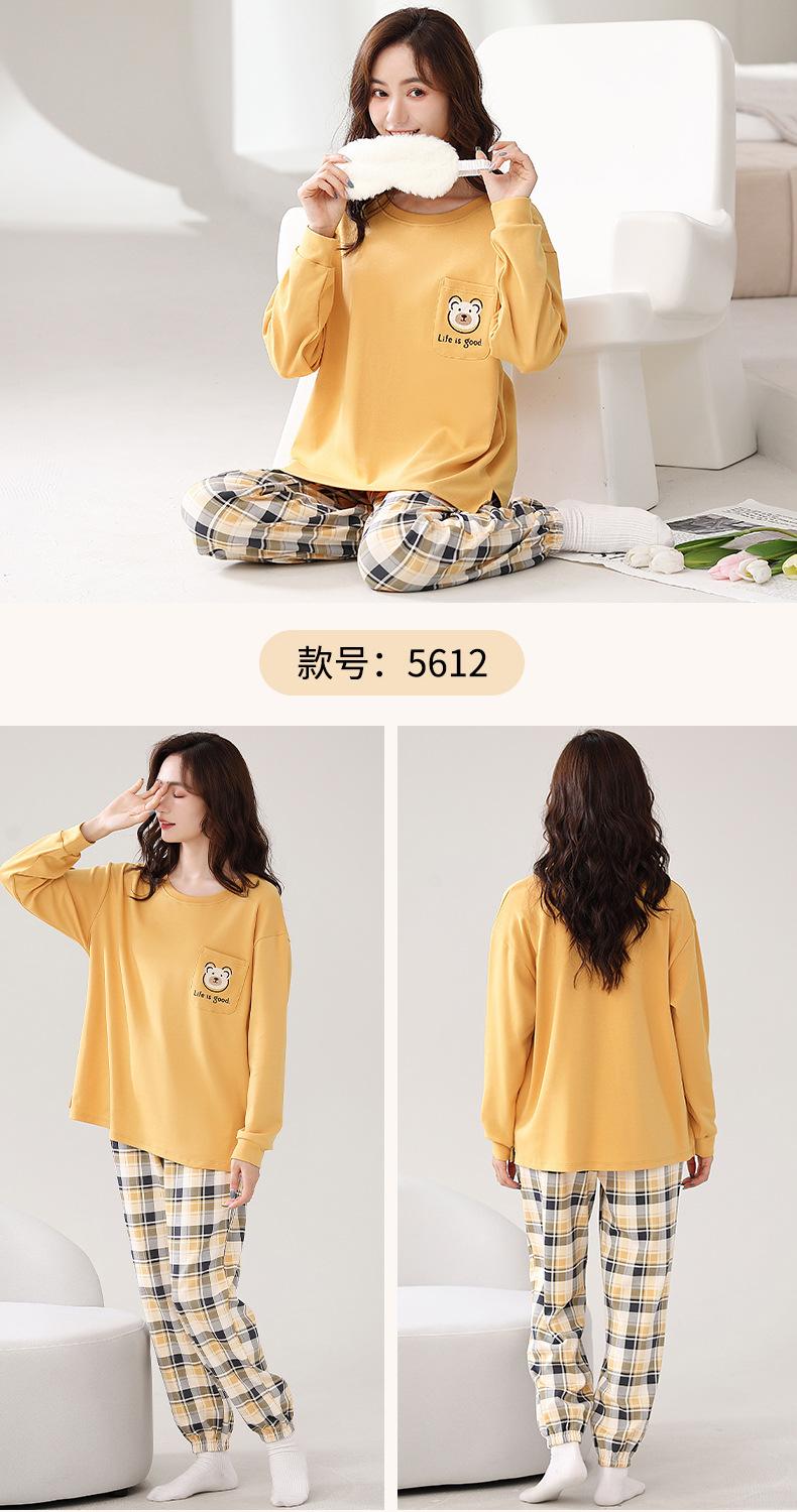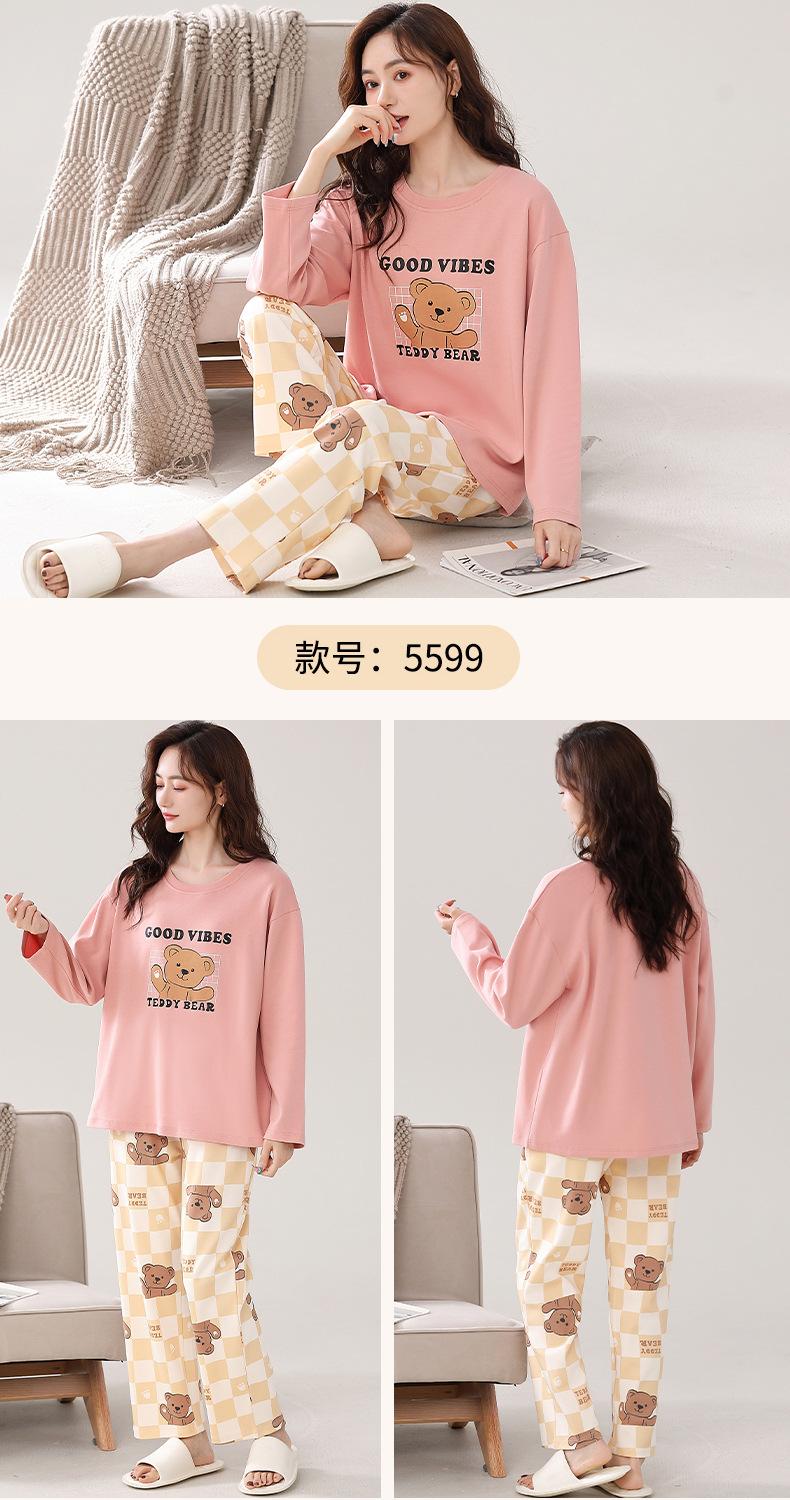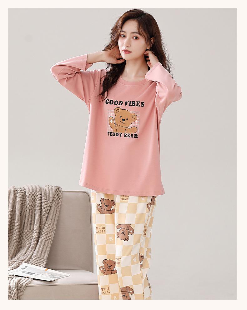 Pijama para mujer de primavera y otoño de algodón para estar en casa se puede usar fuera algodón lindo caricatura jersey manga larga traje de pantalón