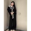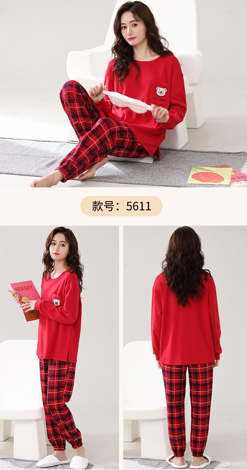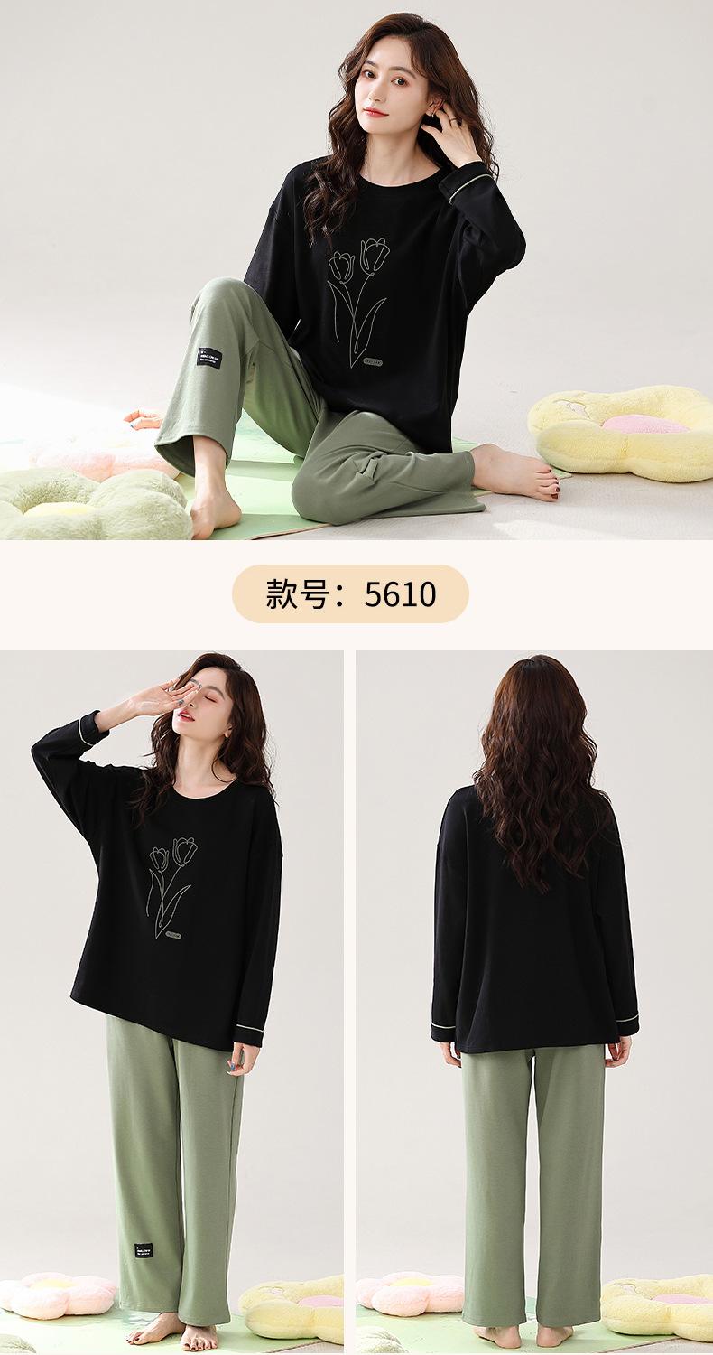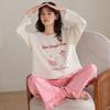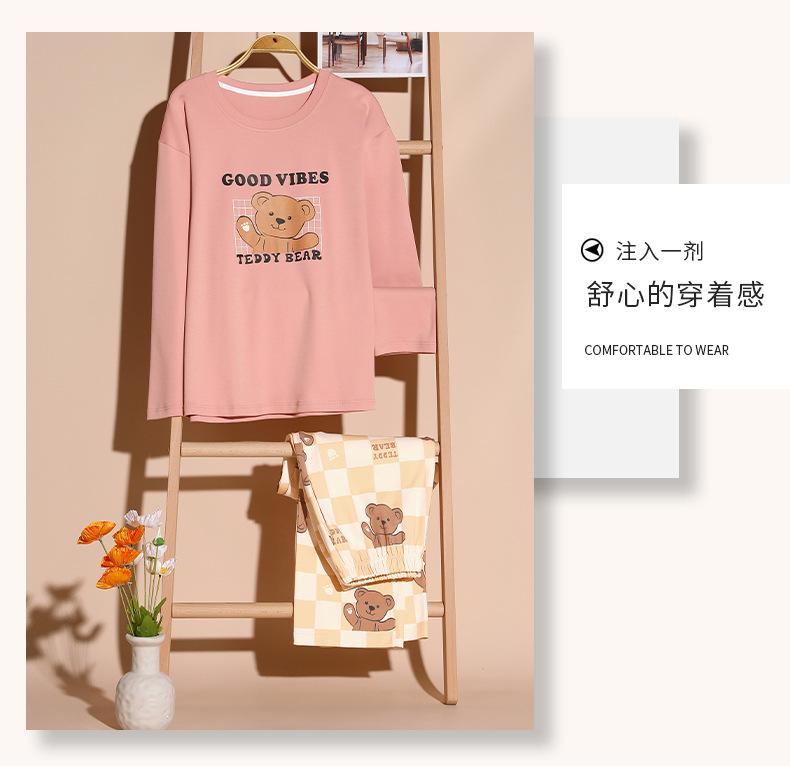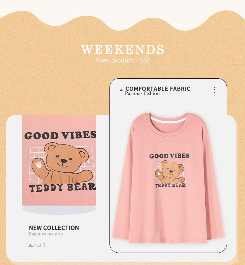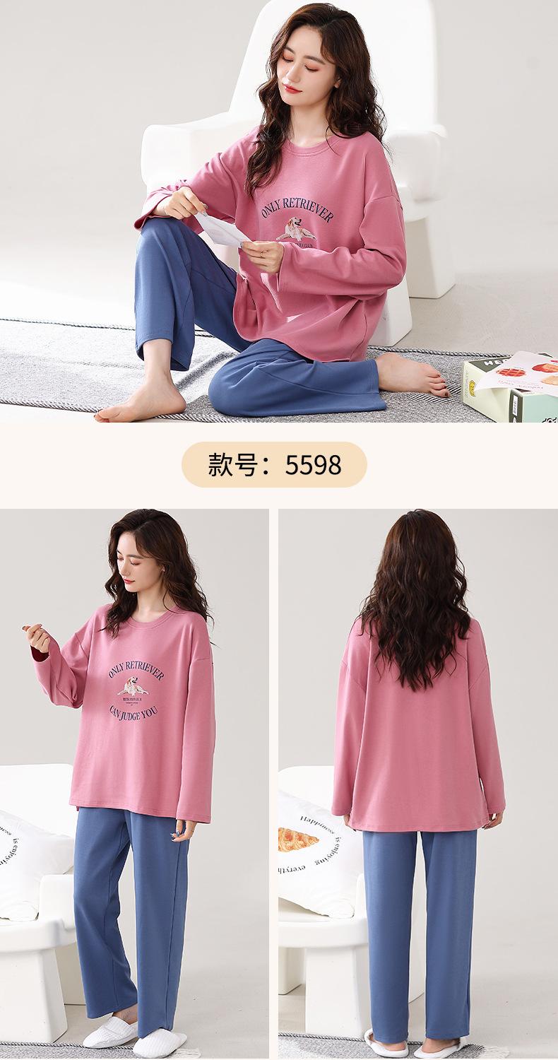 Pijama para mujer de primavera y otoño de algodón para estar en casa se puede usar fuera algodón lindo caricatura jersey manga larga traje de pantalón
