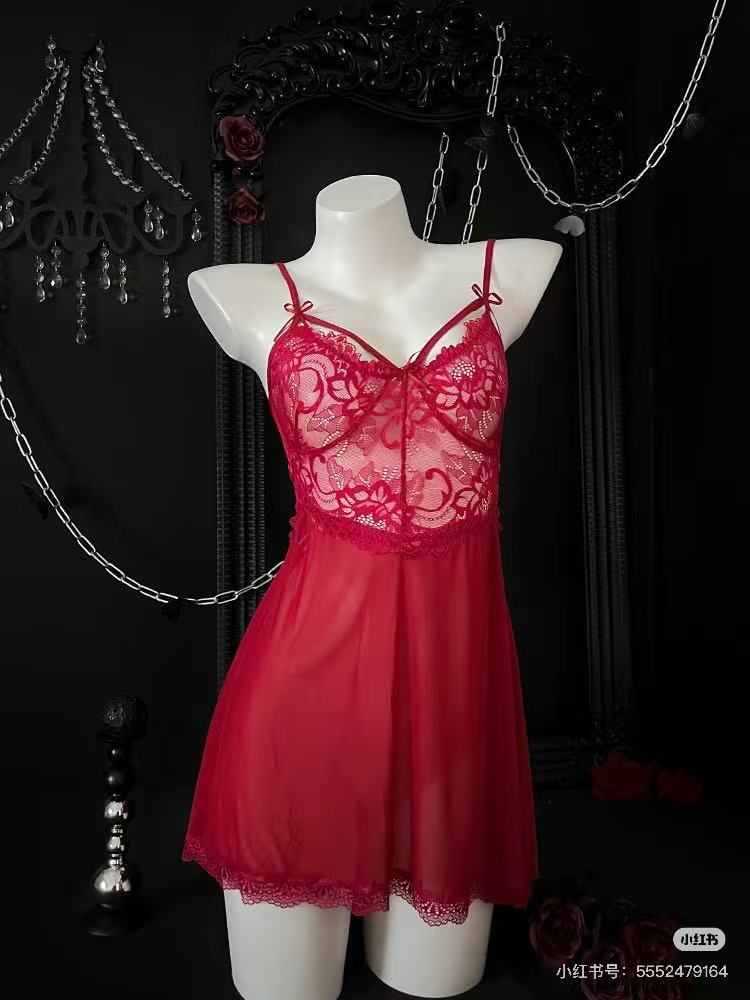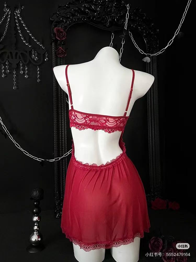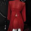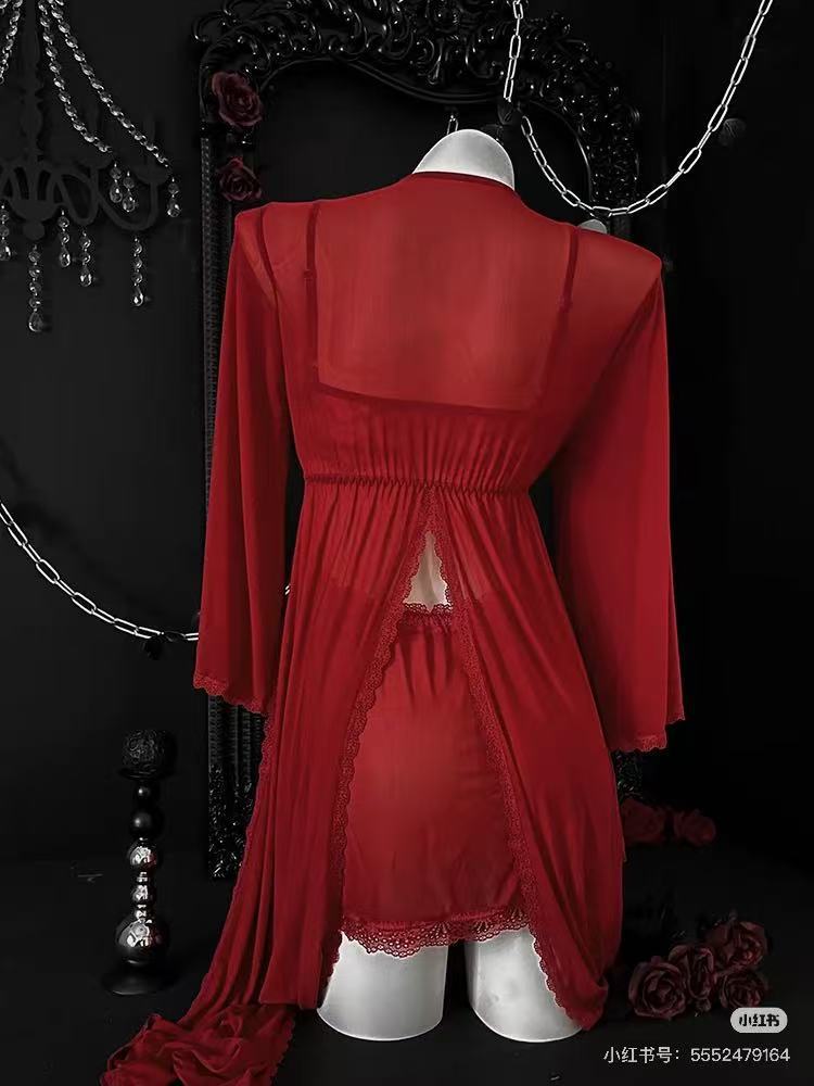 [High-Quality Nylon] Burgundy Slip Dress + Burgundy Outer Robe