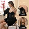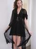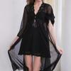 [High-Quality Nylon] Black Slip Dress + Black Outer Robe