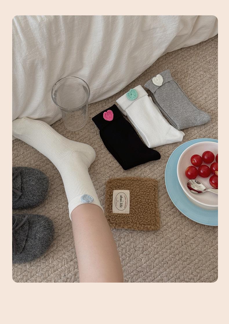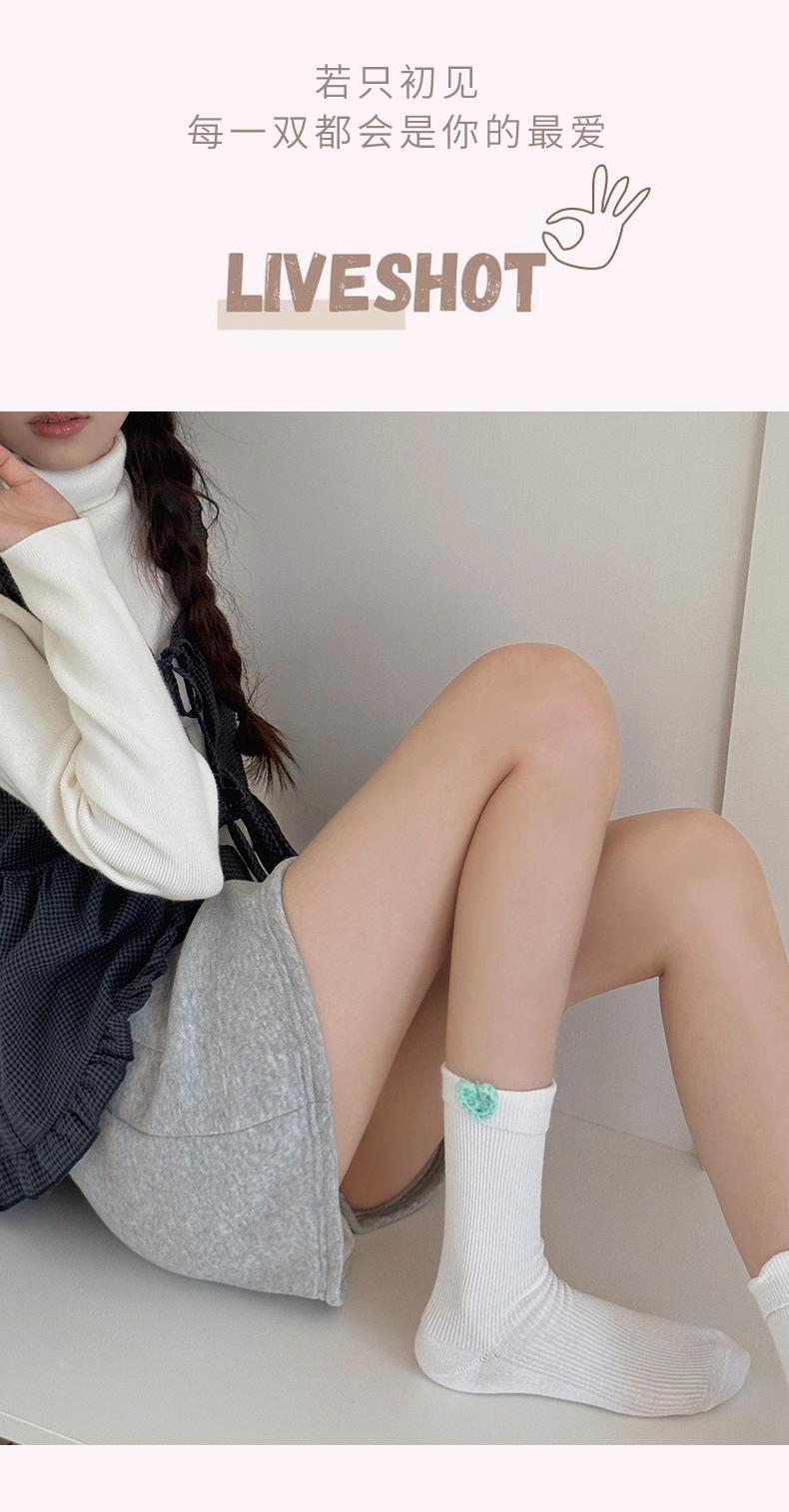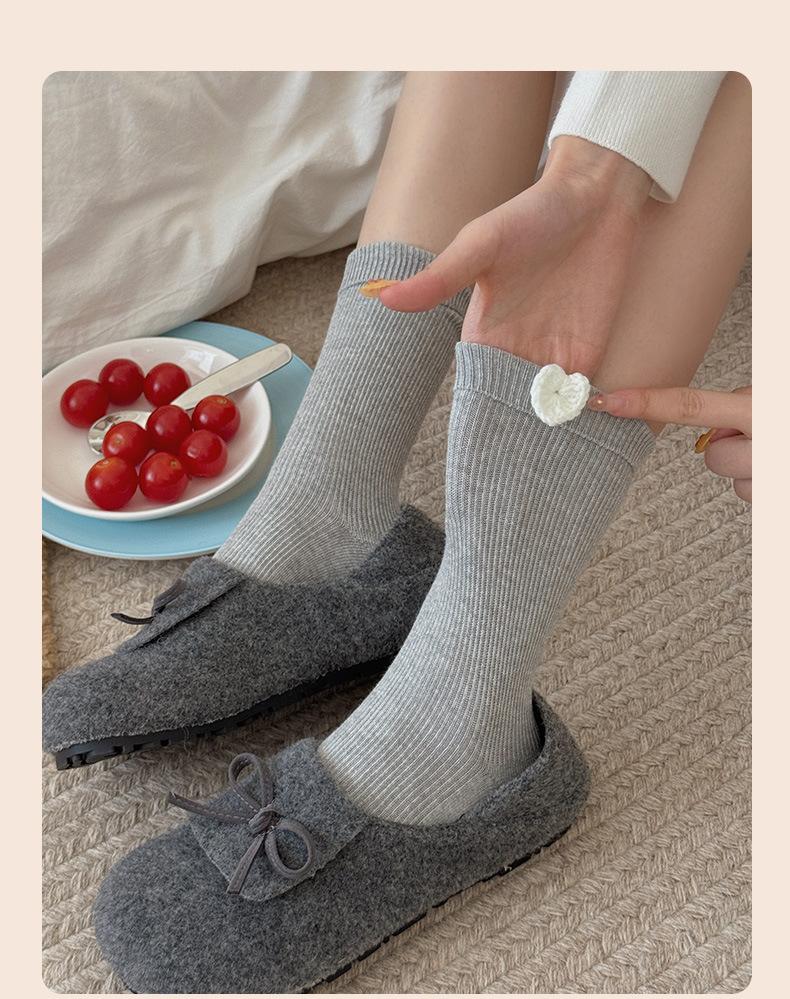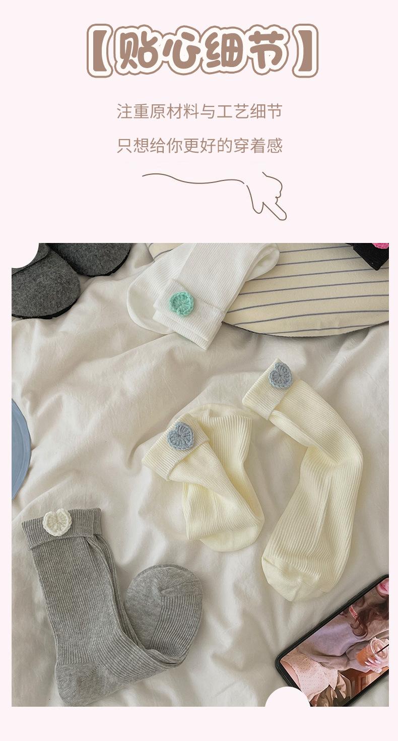Calcetines Coreanos para Mujer Tejido de Lana Corazón de Amor Media Caña Color Sólido Versátil Calcetines Acanalados Fruncidos Ins Modernos Calcetines Dobladillos