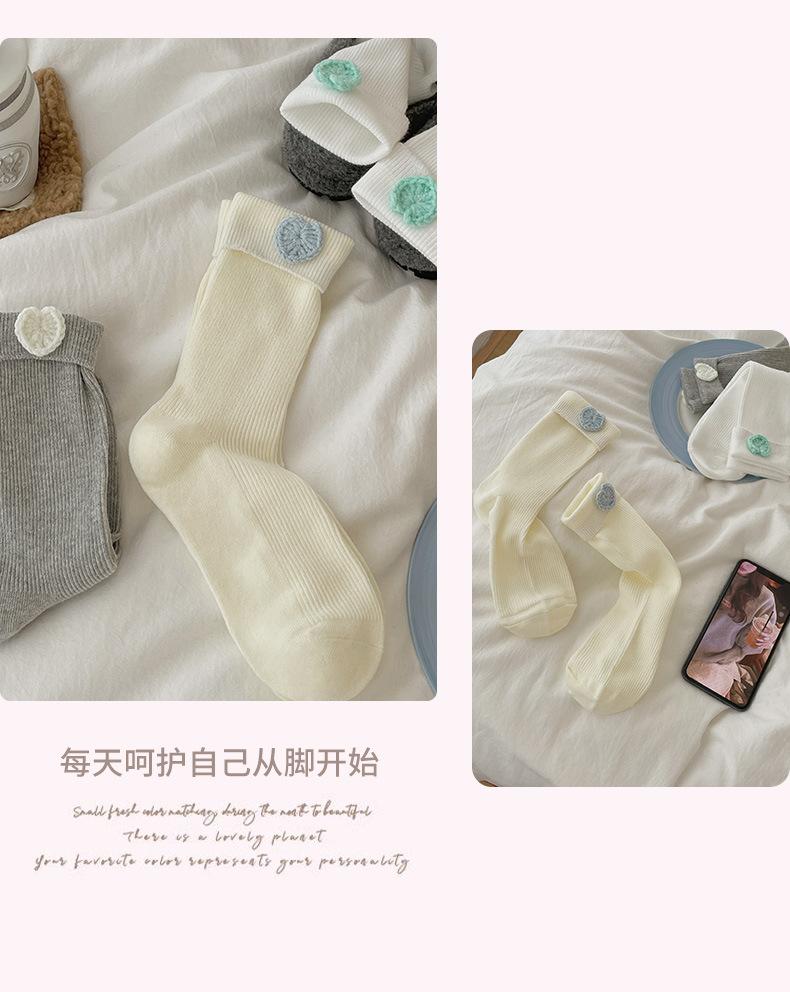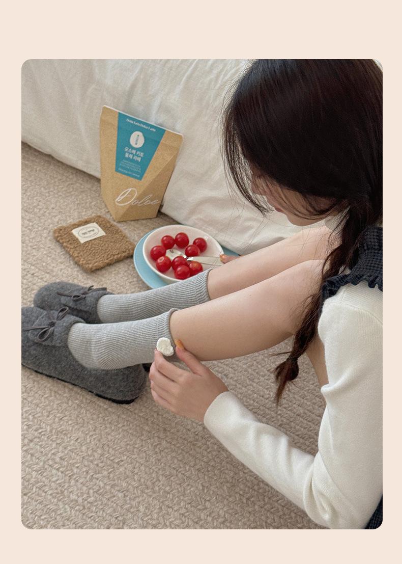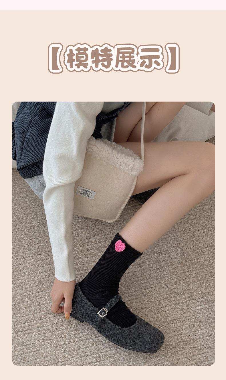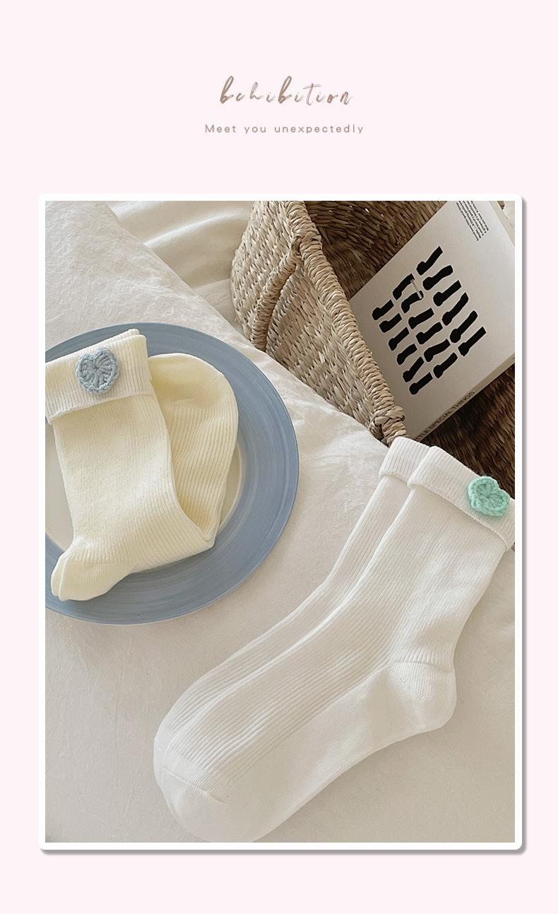 Calcetines Coreanos para Mujer Tejido de Lana Corazón de Amor Media Caña Color Sólido Versátil Calcetines Acanalados Fruncidos Ins Modernos Calcetines Dobladillos