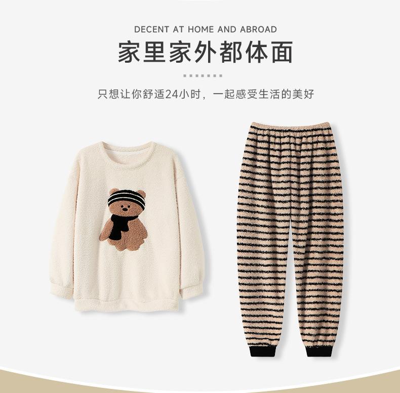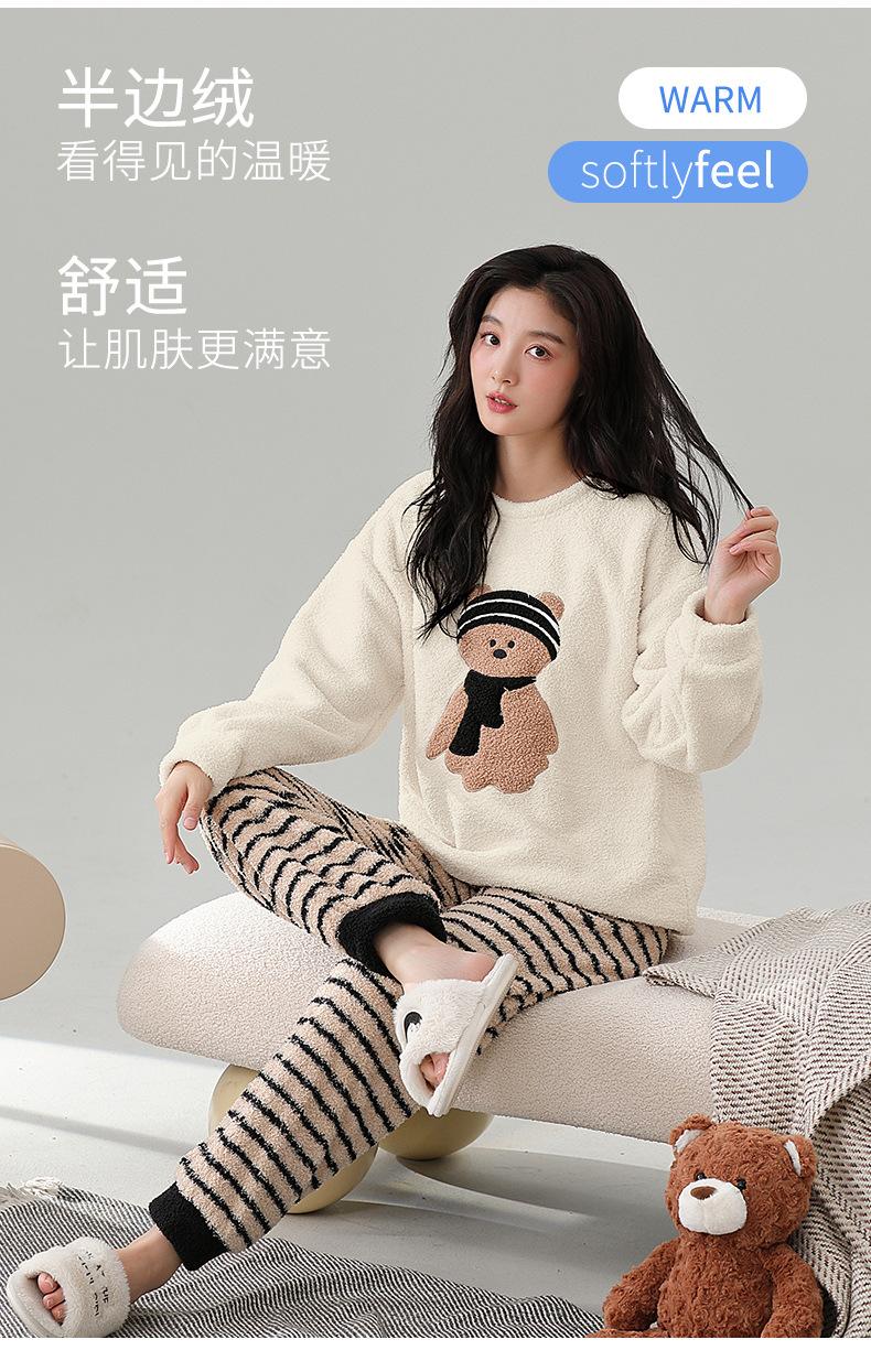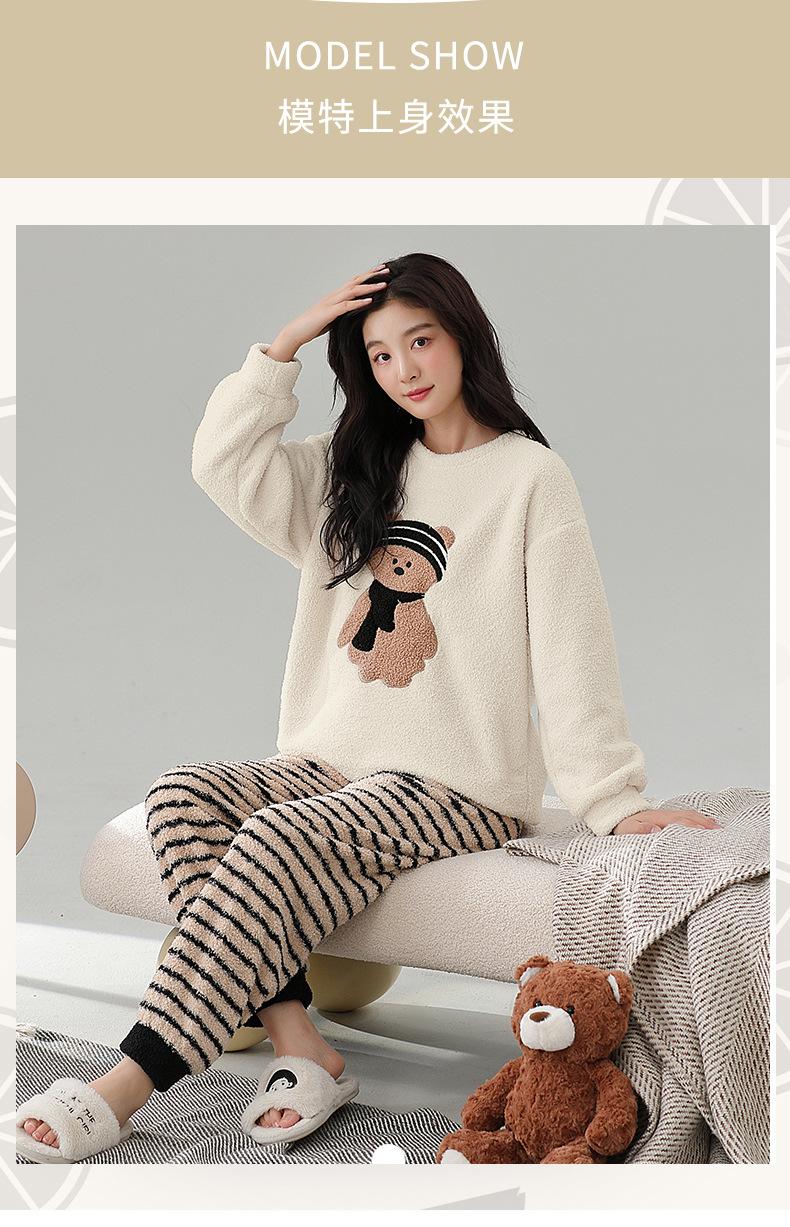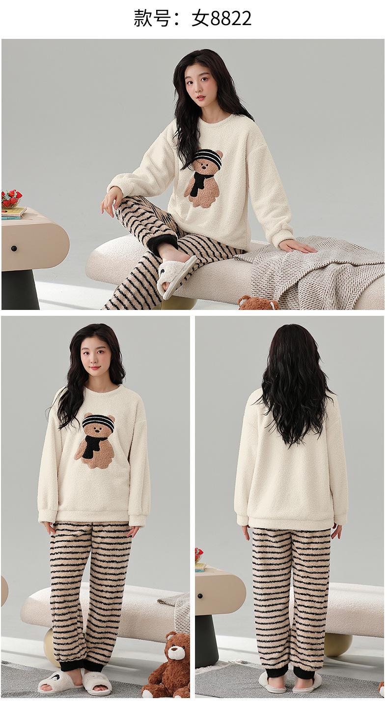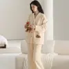 Pijama de Mujer Otoño/Invierno Terciopelo Simple de Alta Gama Estilo Chino Espesado Forro Polar de Doble Cara Invierno Conjunto de Ropa para el Hogar