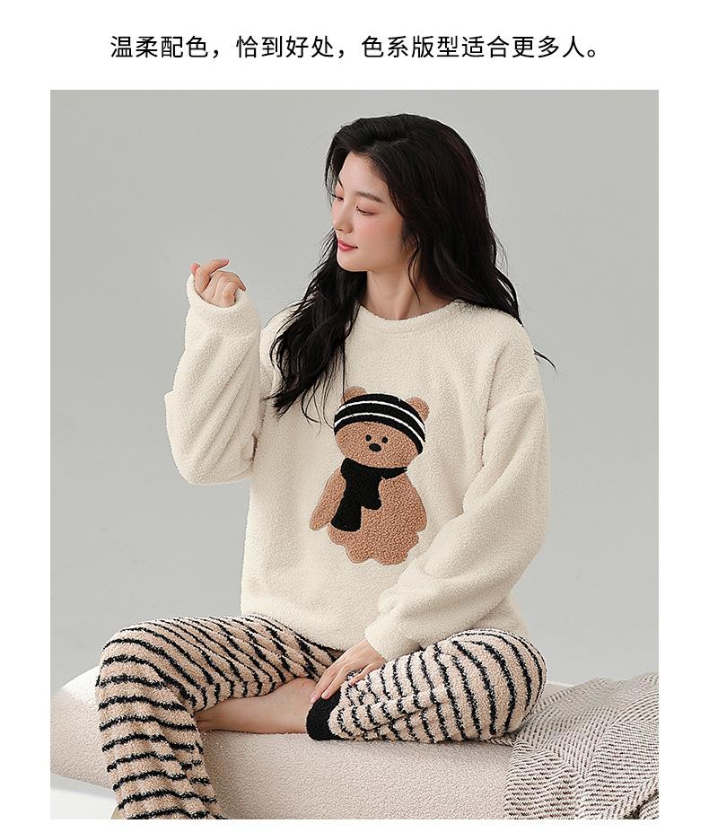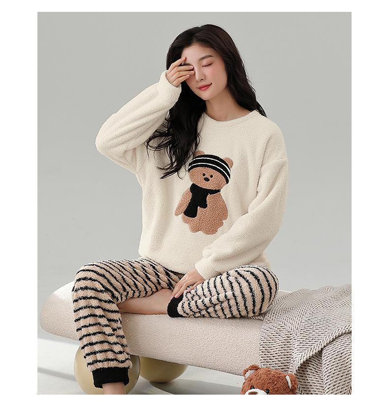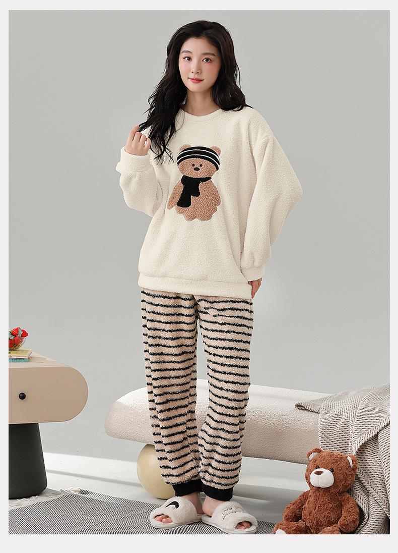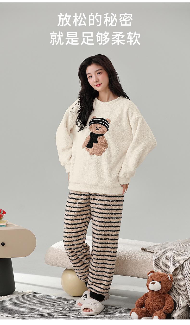 Pijama de Mujer Otoño/Invierno Terciopelo Simple de Alta Gama Estilo Chino Espesado Forro Polar de Doble Cara Invierno Conjunto de Ropa para el Hogar