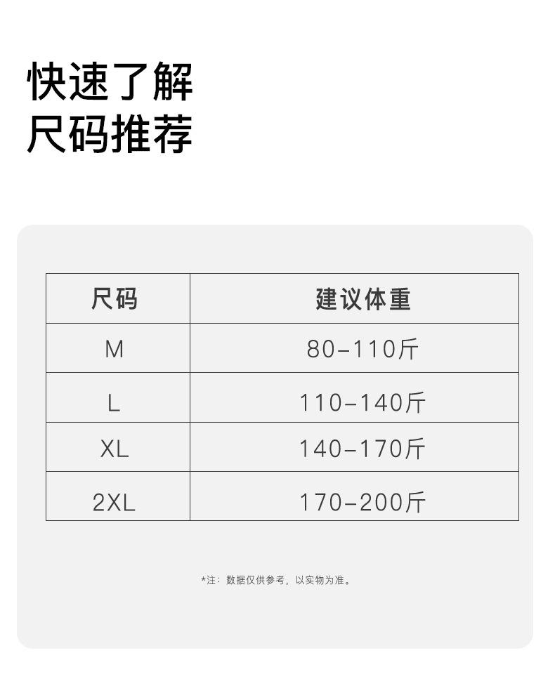 M (recommended 40-55kg ), L (recommended 55-70kg ), Xl (recommended 70-85kg ), Xxl (recommended 85-100kg )