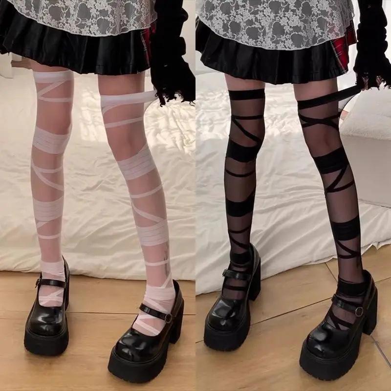 Medias de Lazo de Seda Blanco Crema Medias con Costura Medias Finas para Mujer Lolita Spice Girls Seda Negra Ajustadas Calcetines Base