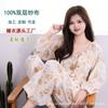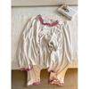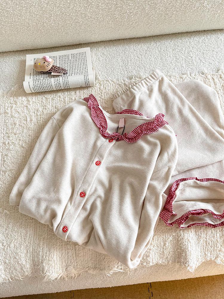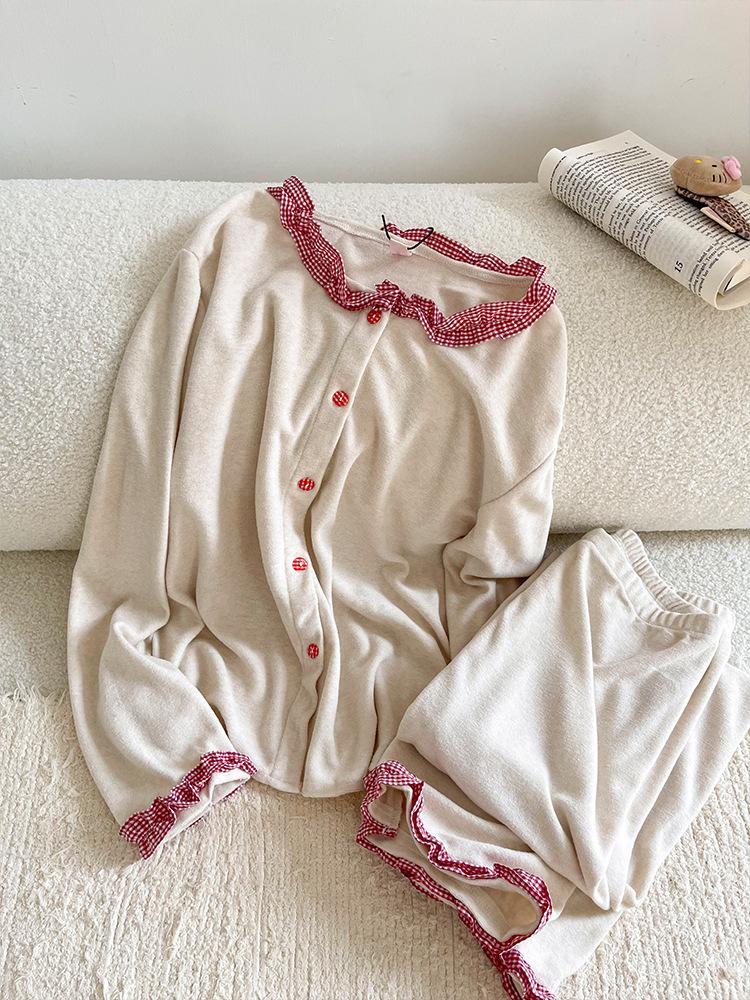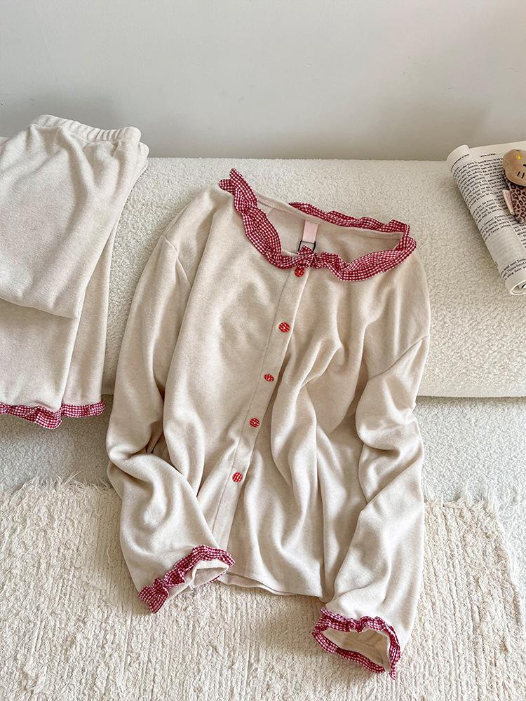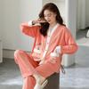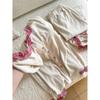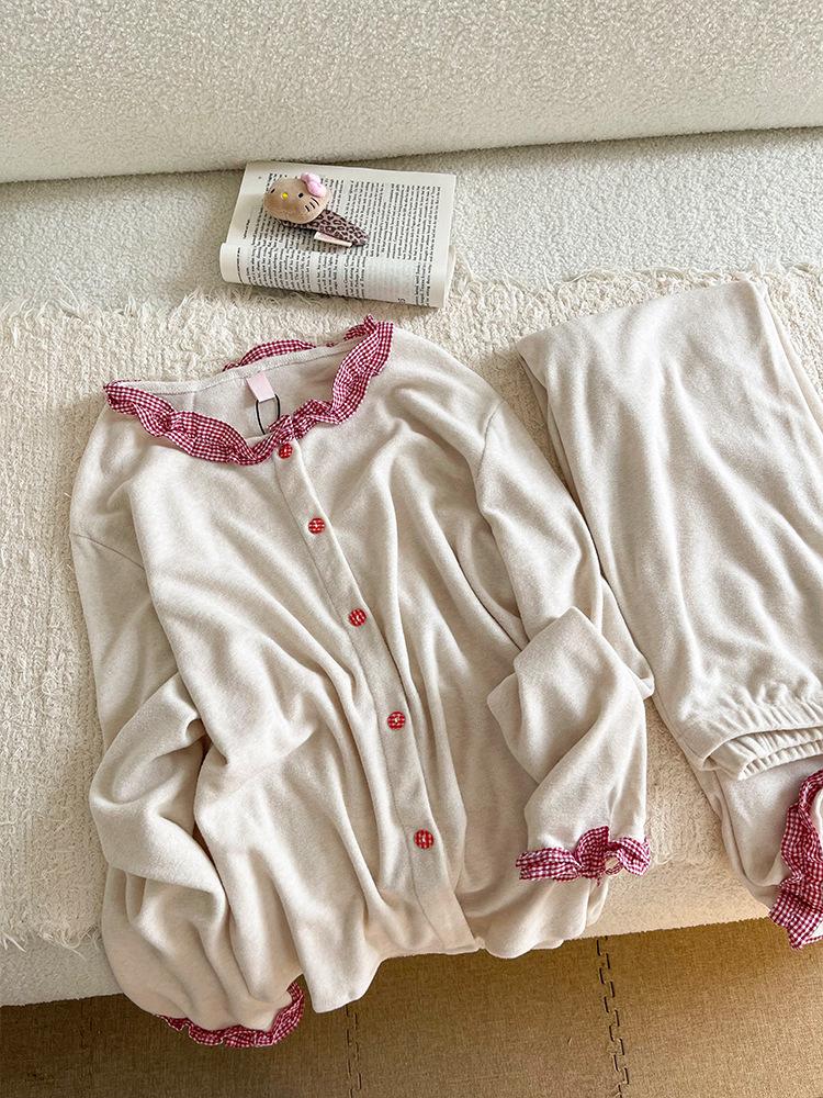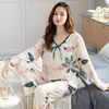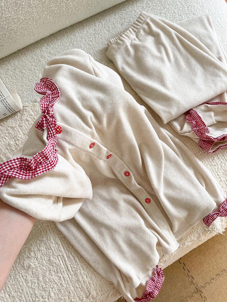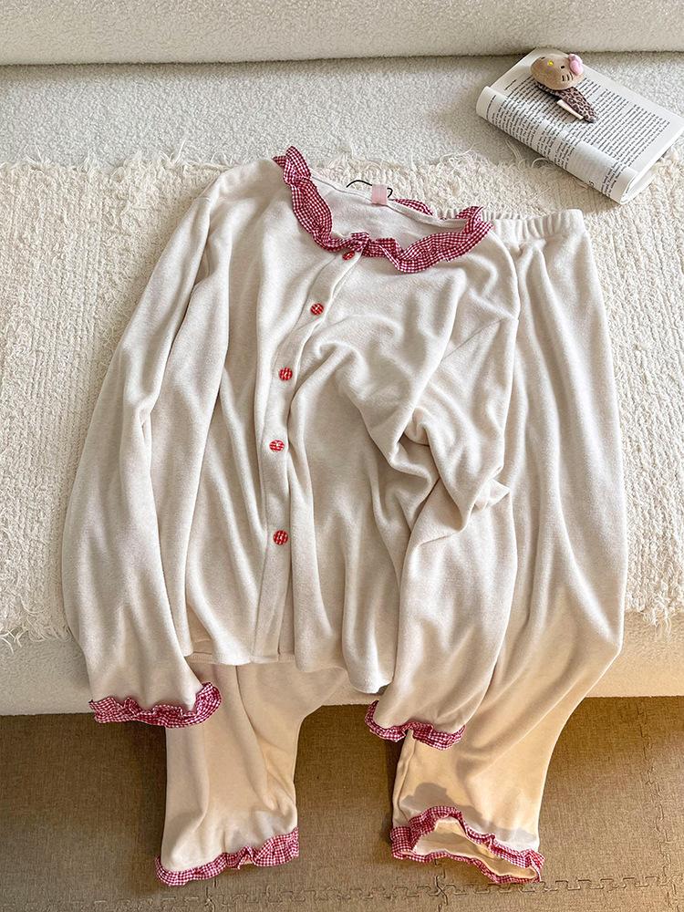 Pijama de Manga Larga de Terciopelo con Borde de Bloque de Color Estilo Coreano Puro y Sexy Suave Agradable a la Piel para Mujer Otoño Talla Grande Holgado Pantalón Largo Ropa de Casa