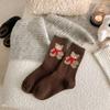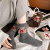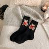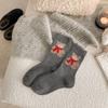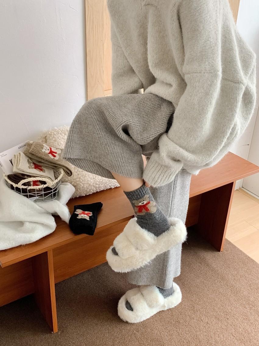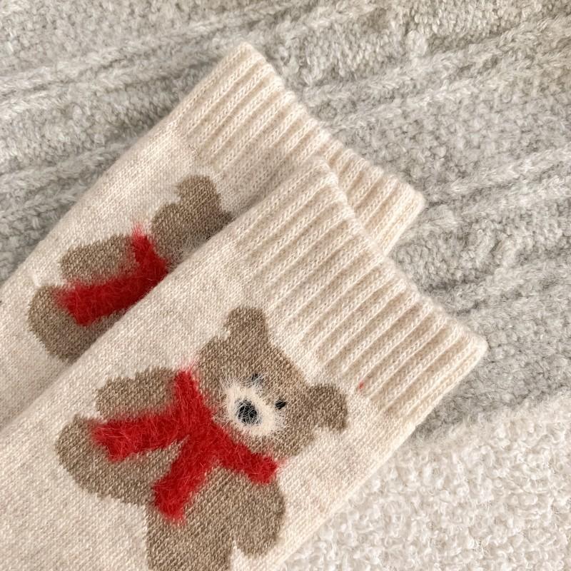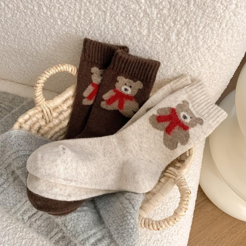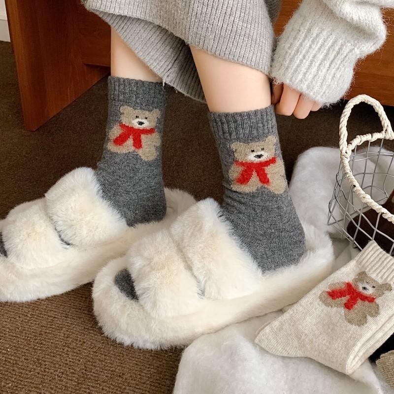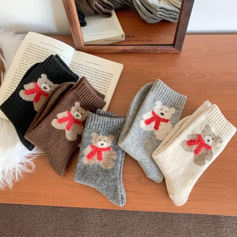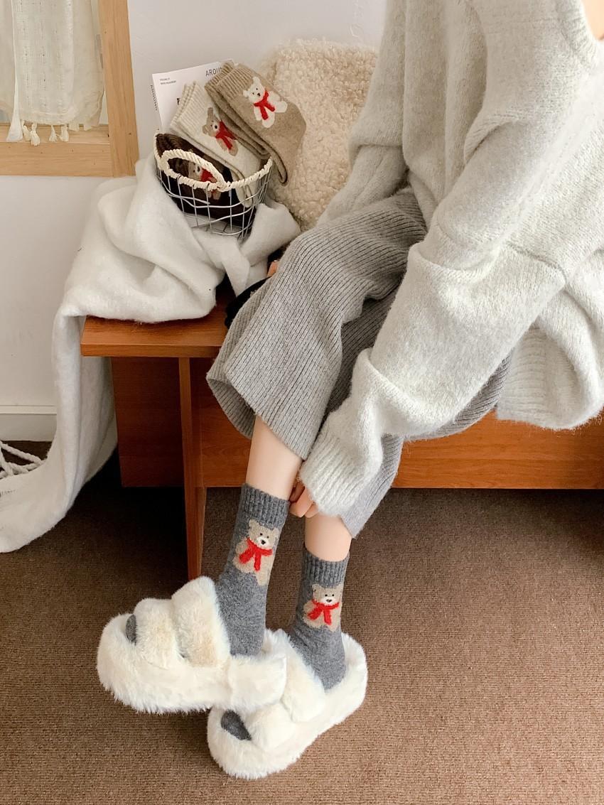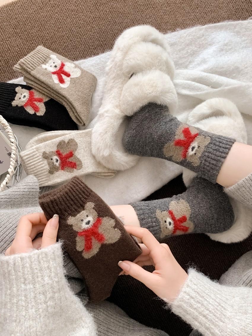 Calcetines de lana para mujer, gruesos, cálidos, de invierno, gruesos, grises, con forma de tubo, estilo japonés, vintage, con bufanda de oso, bonitos calcetines para mujer