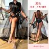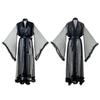 Muffy Comercio Exterior Europeo y Americano Sexy Malla Negra Lentejuelas Transparente Bata Larga para Mujer Borde de Flecos Ropa de Casa 721