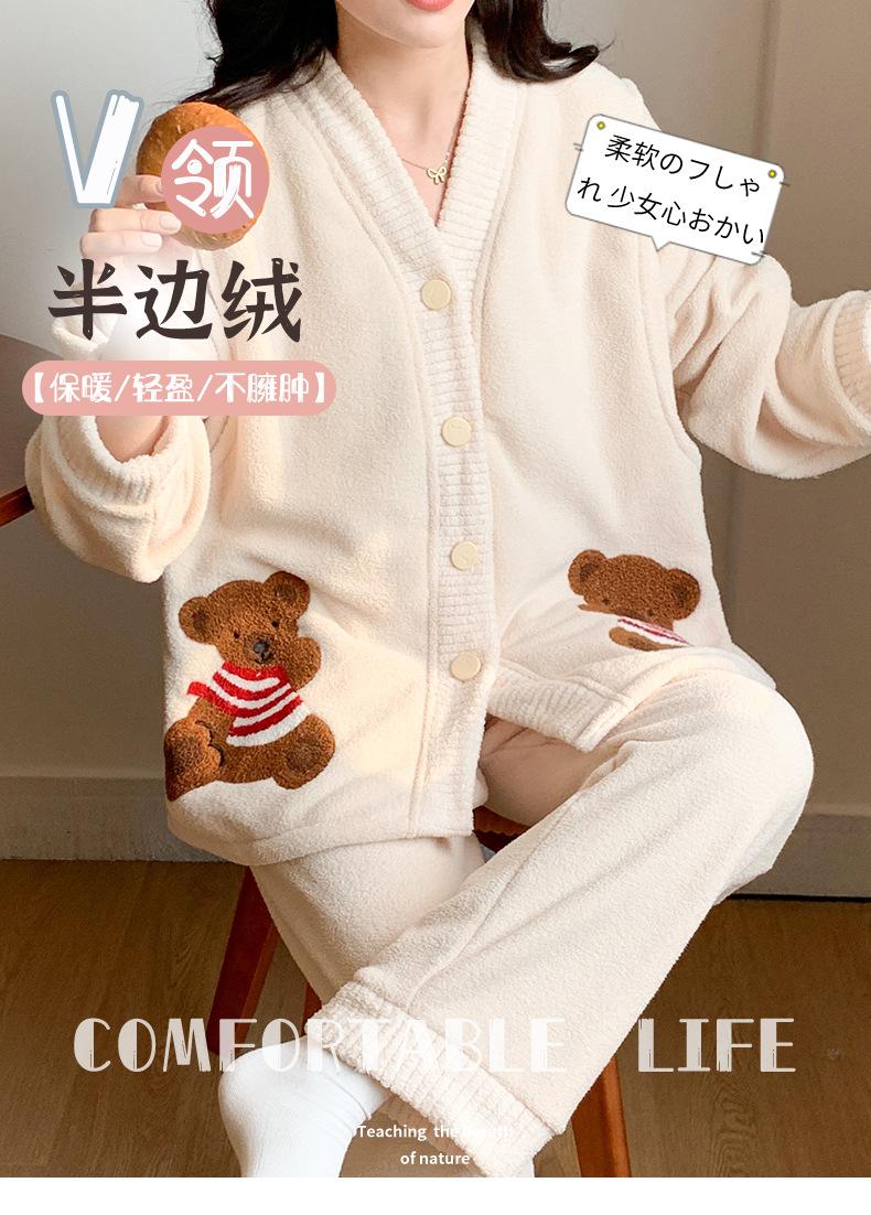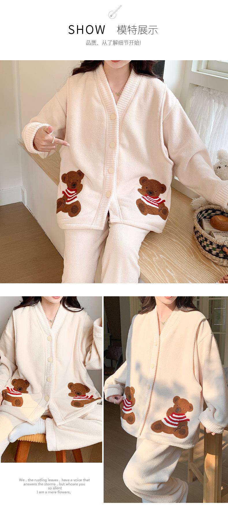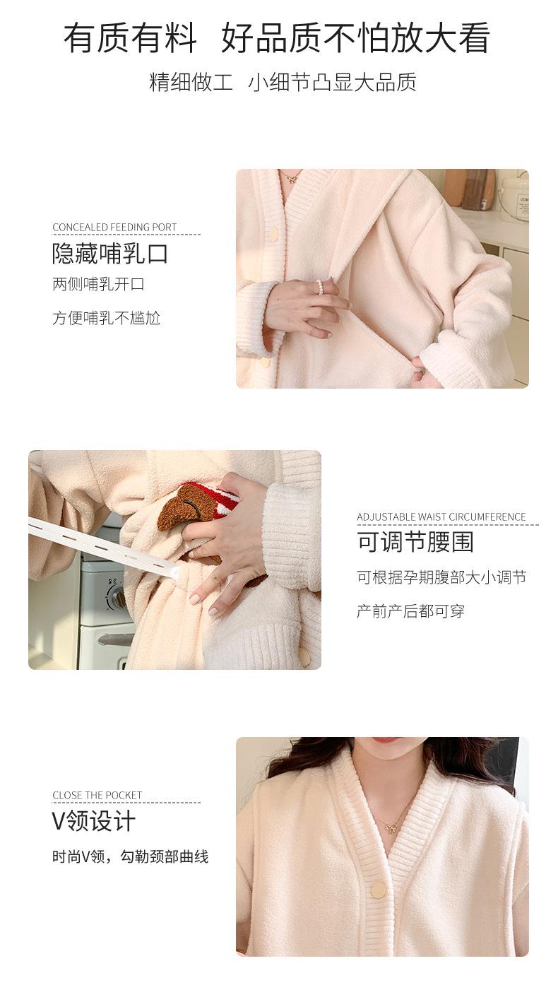 Xi Yue Invierno Terciopelo Medio Postparto Grueso y Forrado de Vellón Ropa de Maternidad 2025 Mujeres Embarazadas Lactancia Trabajo Conjunto de Pijama