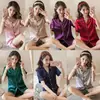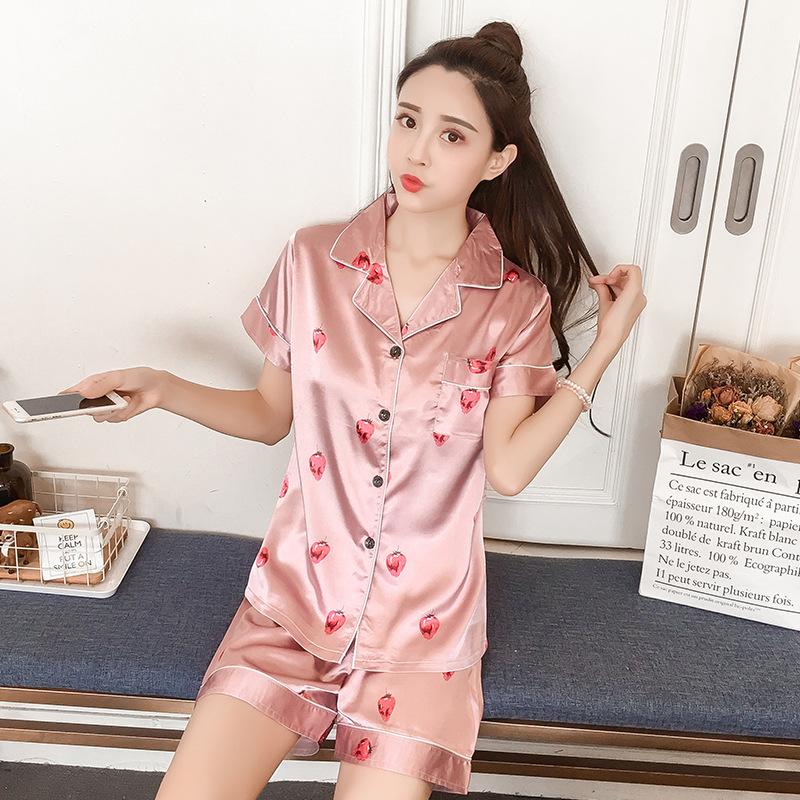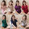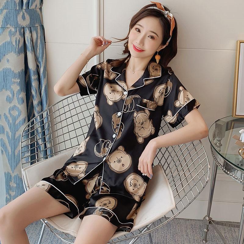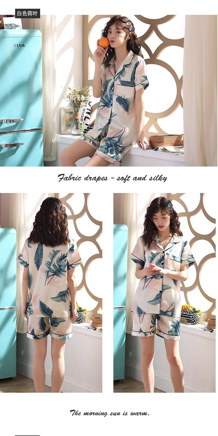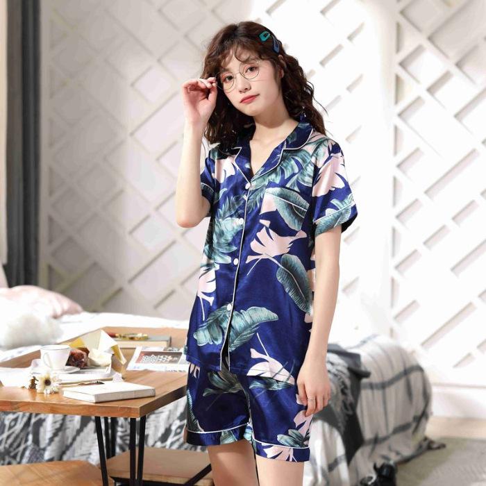 Pijama de Verano de Comercio Exterior de Gran Venta para Mujer, Seda Simulada, Sexy, Cárdigan, Manga Corta, Shorts, Conjunto Holgado, Ropa para el Hogar, Venta al por Mayor