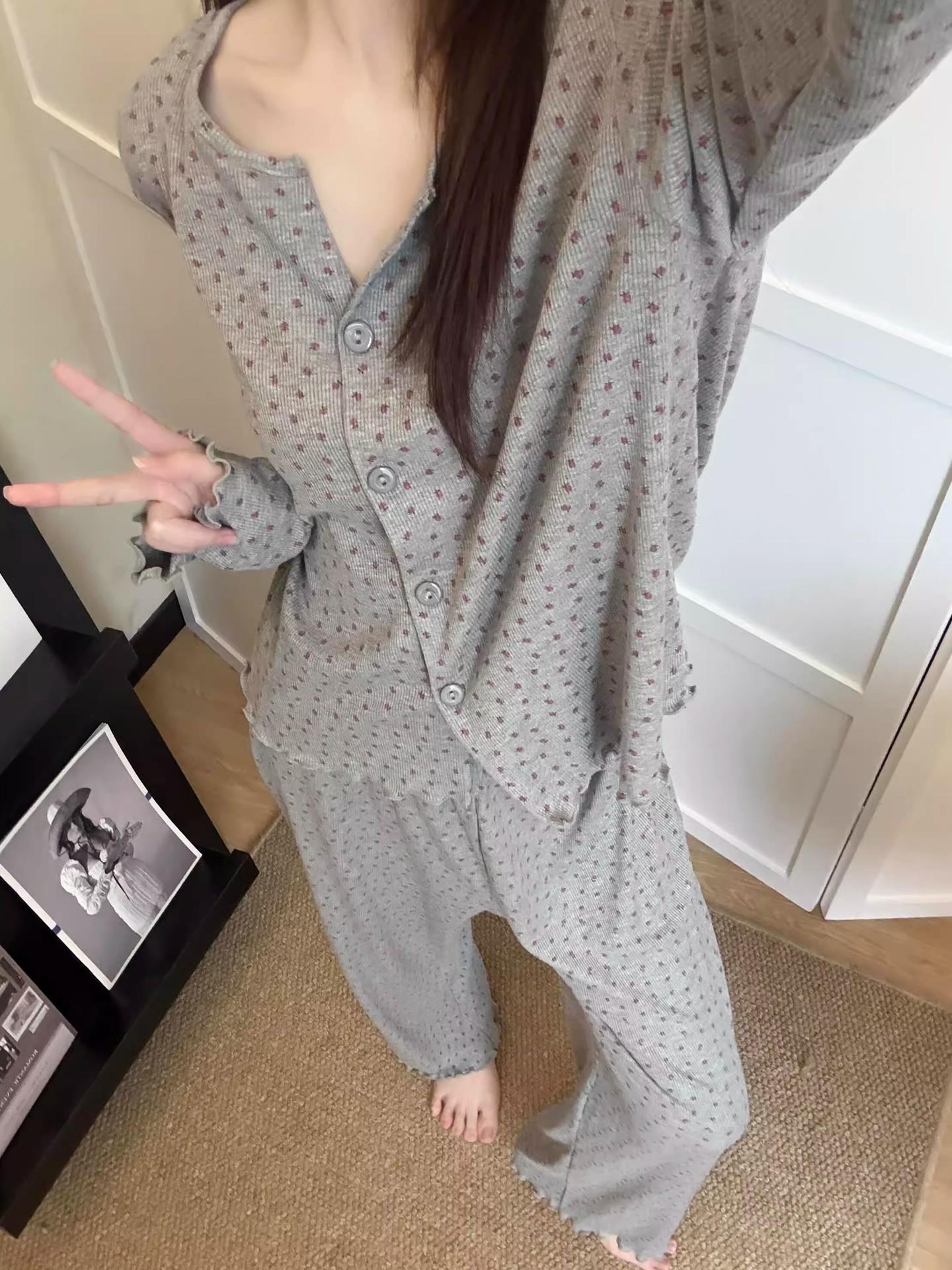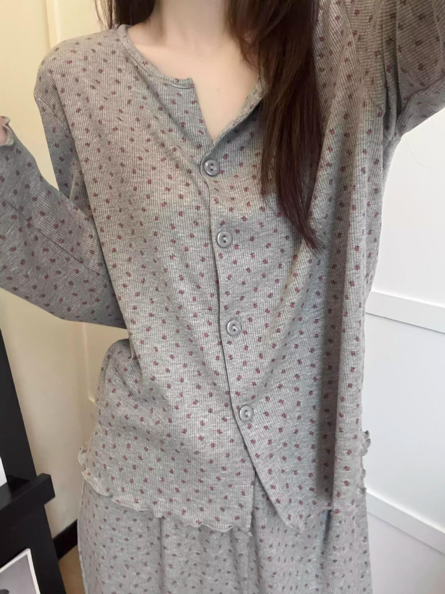 Pijama floral de estilo coreano para mujer, conjunto de manga larga para primavera y otoño, ropa de casa de alta gama, talla grande, linda ropa exterior, venta al por mayor transfronteriza