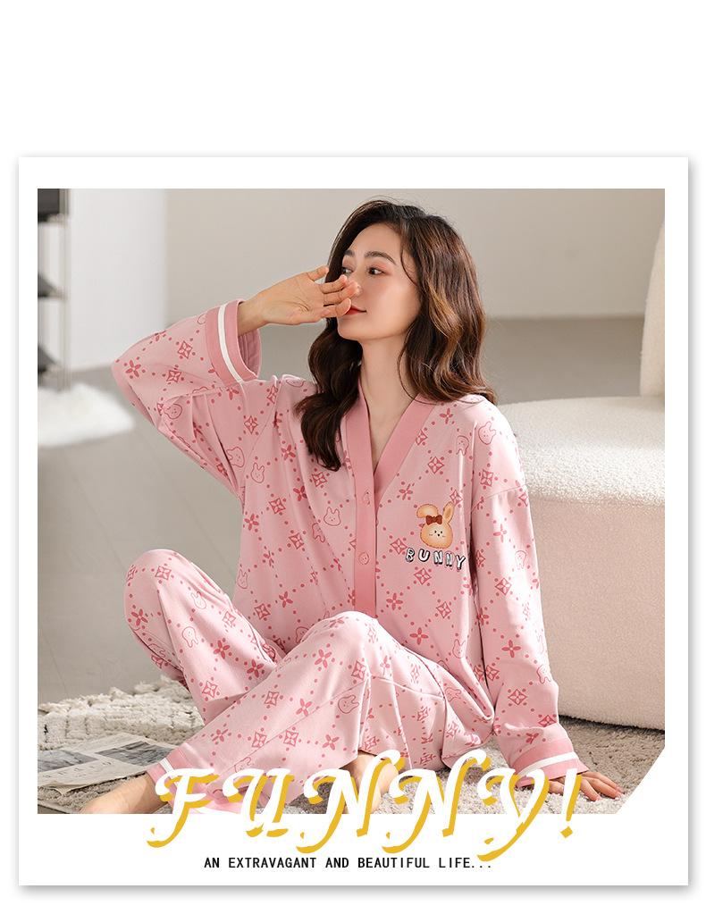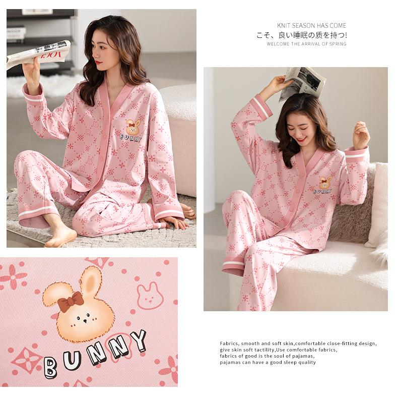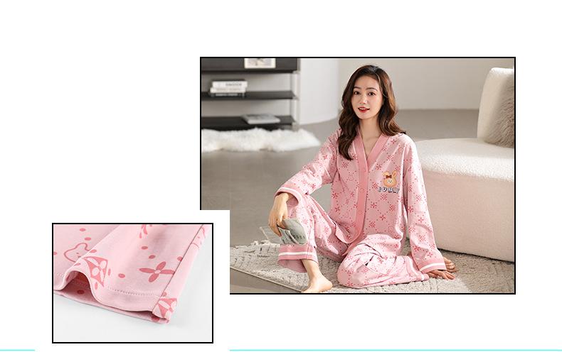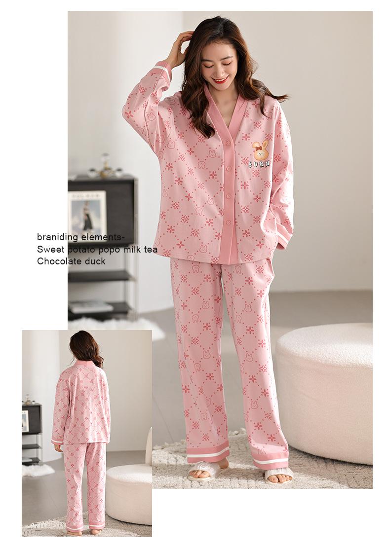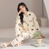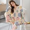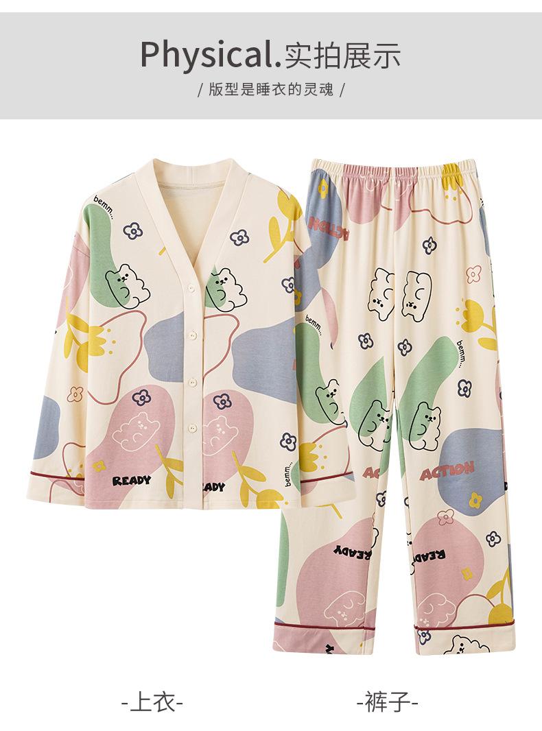 Nuevo Kimono de Primavera y Otoño Pijama de Algodón Puro de Doble Cara para Mujer de Manga Larga Cómodo de Algodón Puro Lindo Estampado Ropa para el Hogar Set Amigable con la Piel
