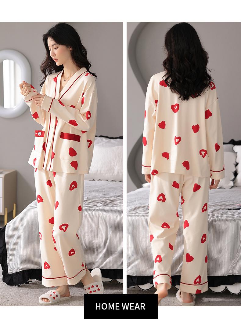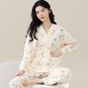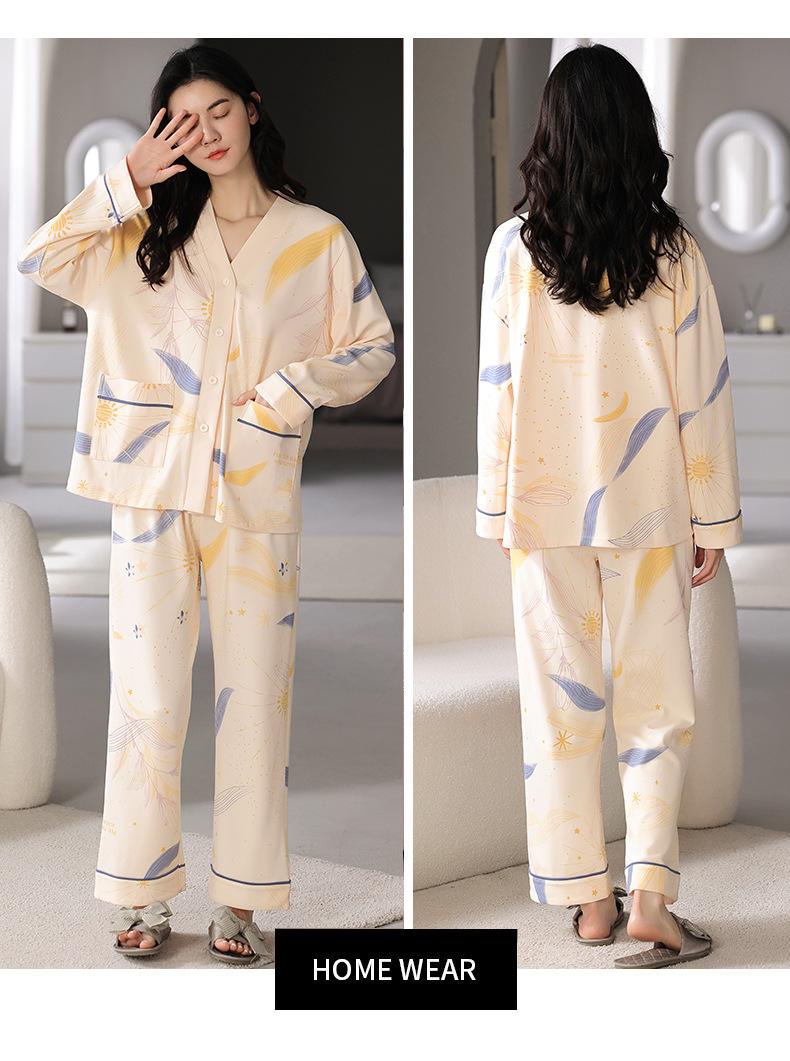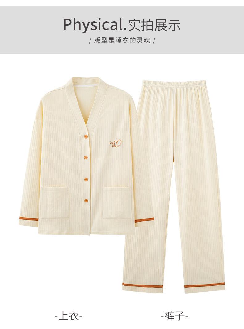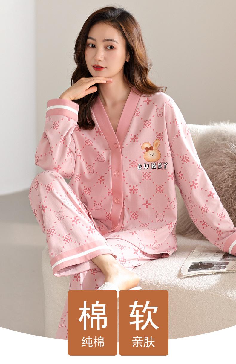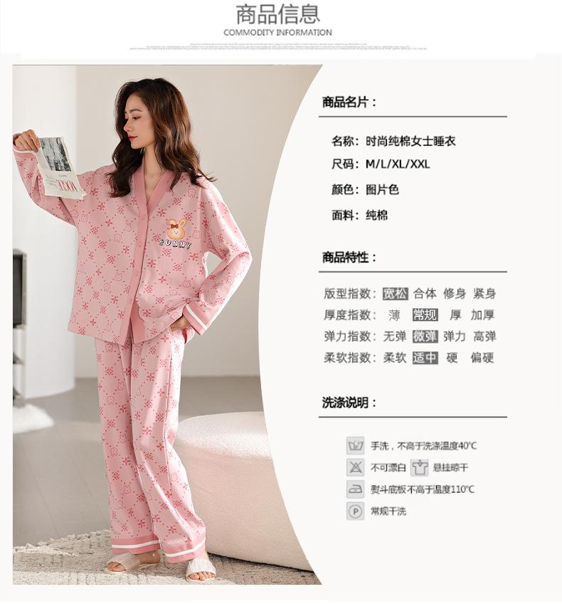 Nuevo Kimono de Primavera y Otoño Pijama de Algodón Puro de Doble Cara para Mujer de Manga Larga Cómodo de Algodón Puro Lindo Estampado Ropa para el Hogar Set Amigable con la Piel