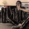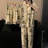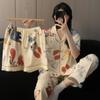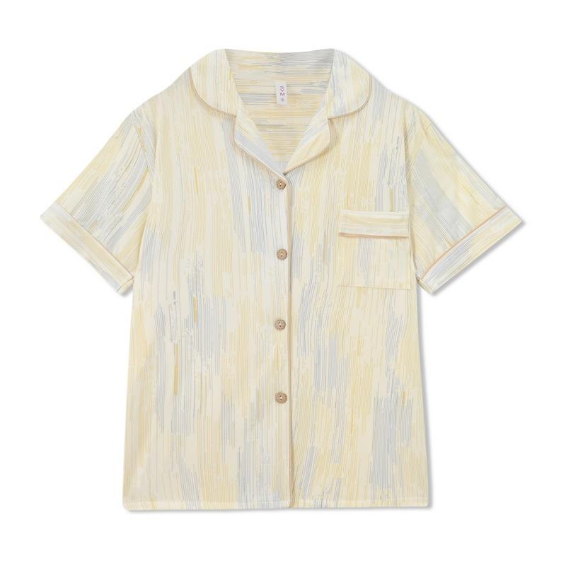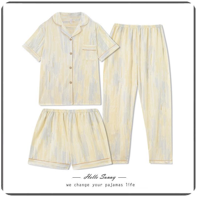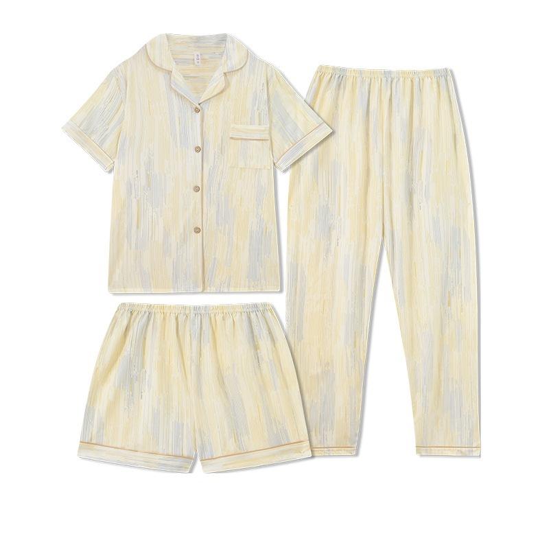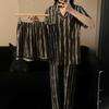 Pijama de pareja al por mayor de fábrica para mujer de alta calidad a rayas primavera y otoño holgado ropa para el hogar traje de tres piezas para hombre de primavera y verano