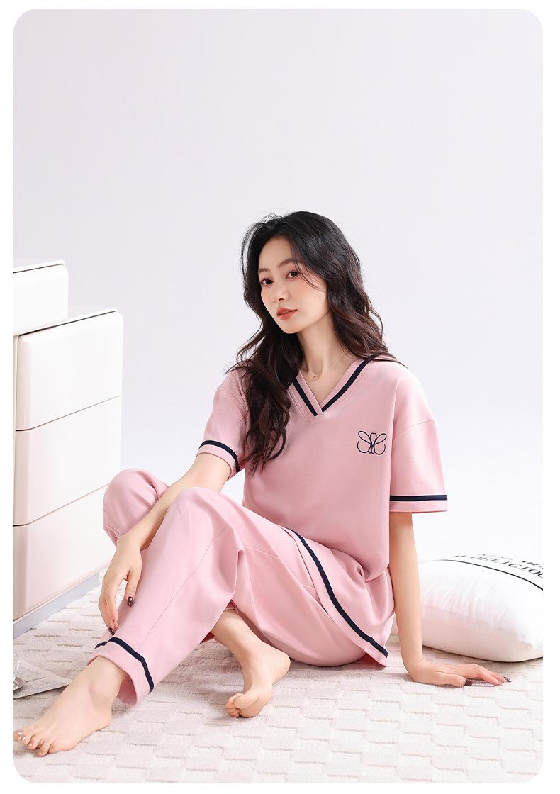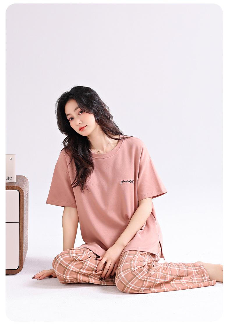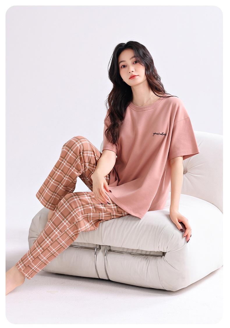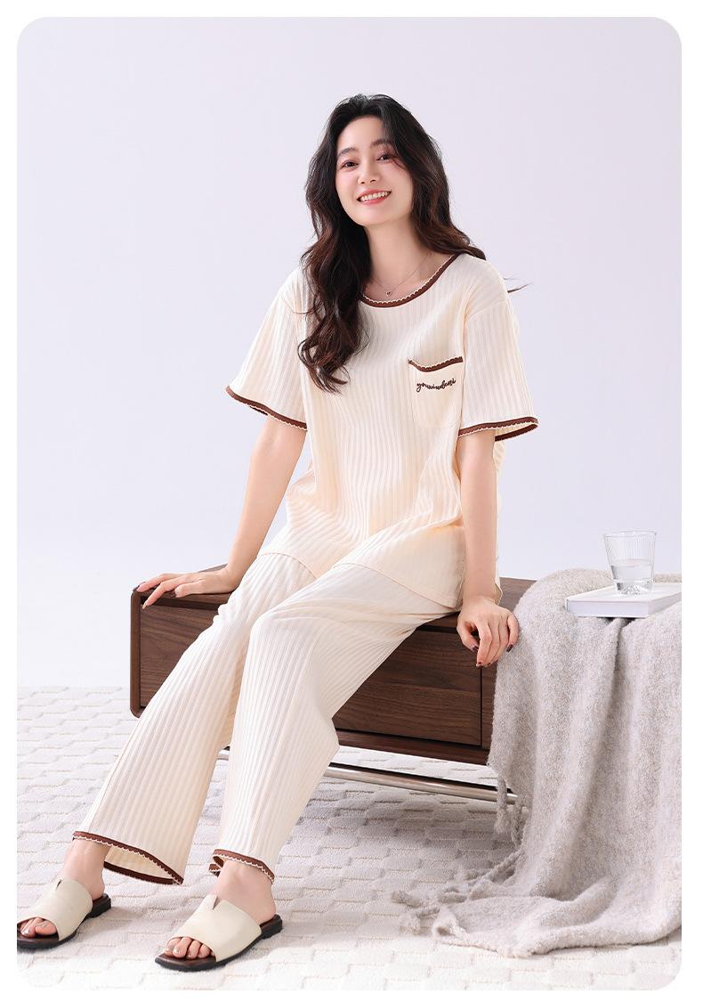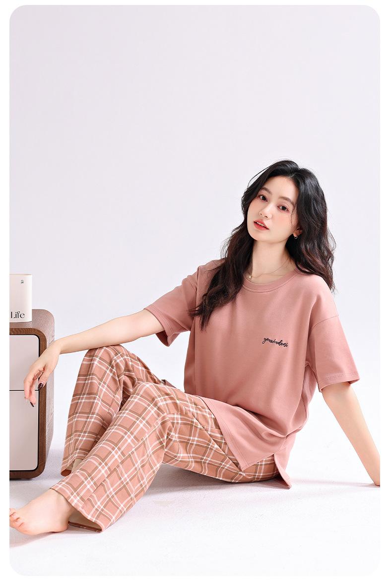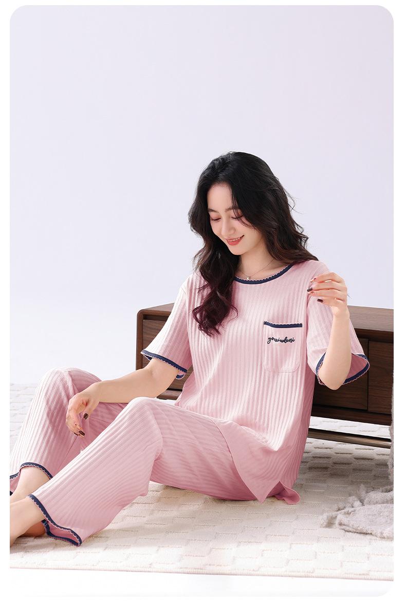 Pijamas para Mujer Verano 2025 Nuevo Algodón Puro con Almohadilla en el Pecho Verano Pantalones de Manga Corta Algodón Fino Conjunto de Ropa para el Hogar