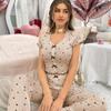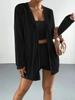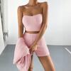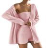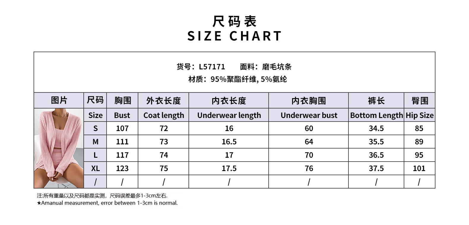 Pijama Europeo y Americano Transfronterizo Acanalado Cepillado para Mujer Manga Larga Cárdigan Bandeau Shorts Set de Tres Piezas Se Puede Usar Fuera Ropa de Casa Mujer
