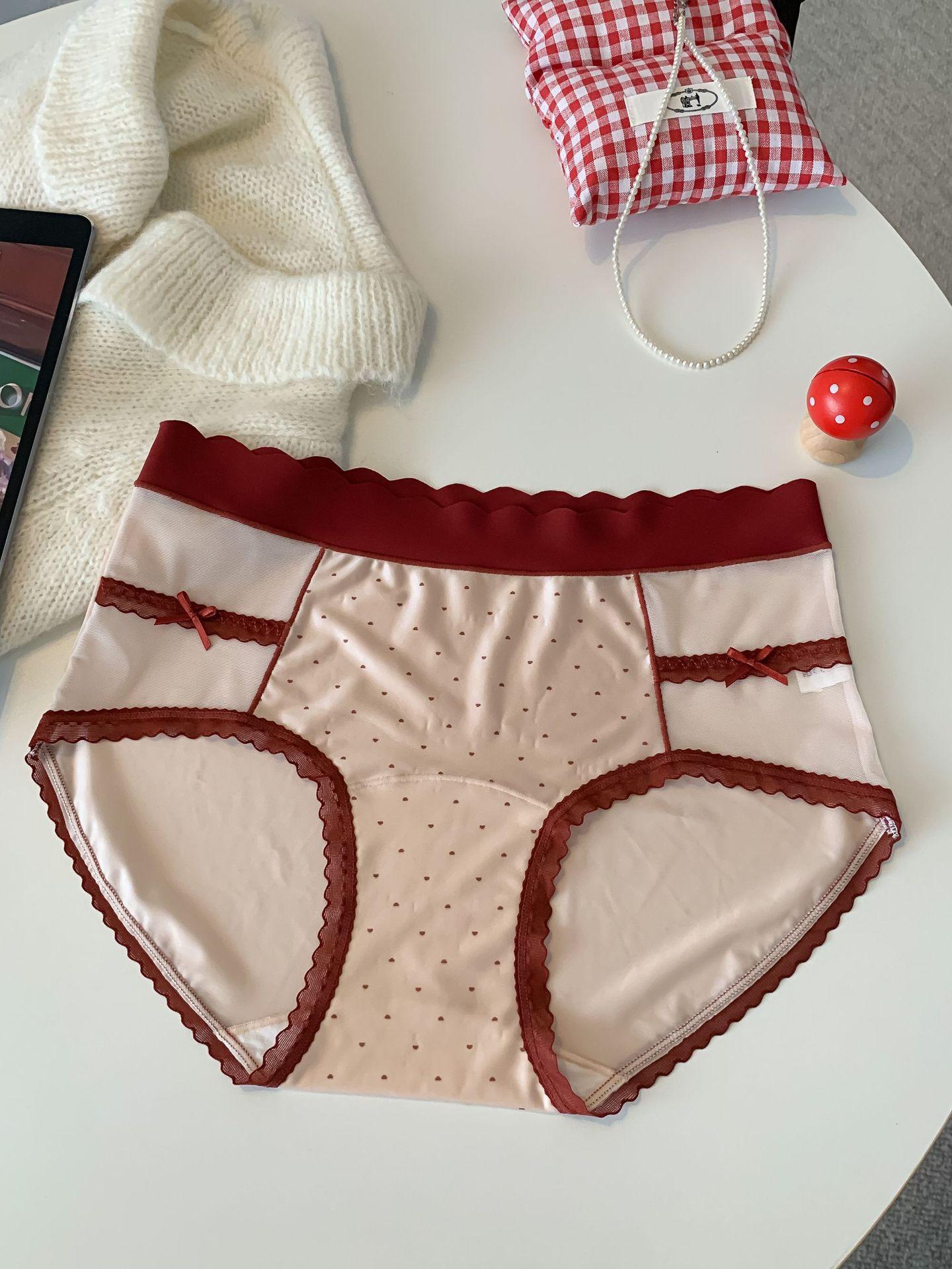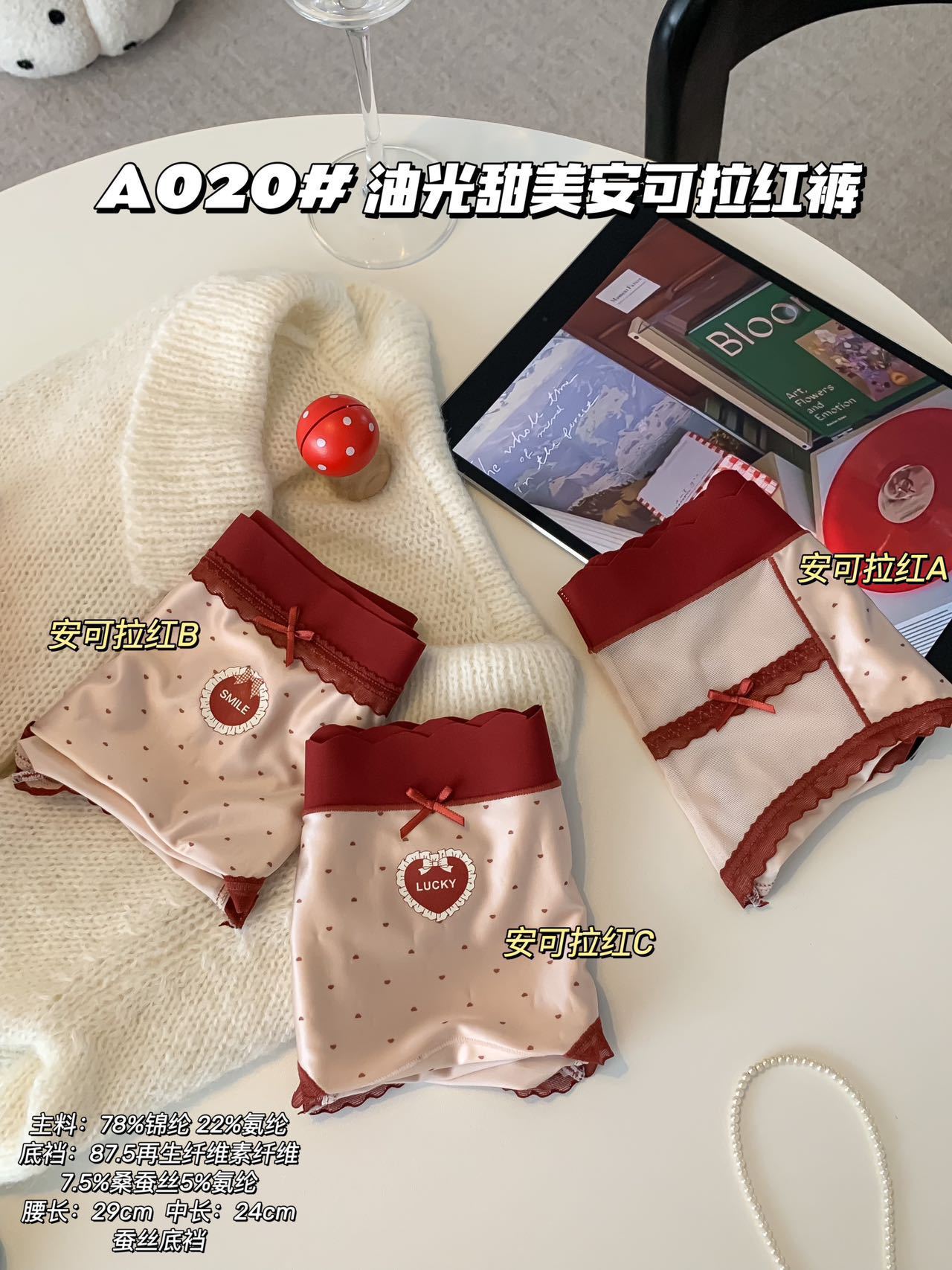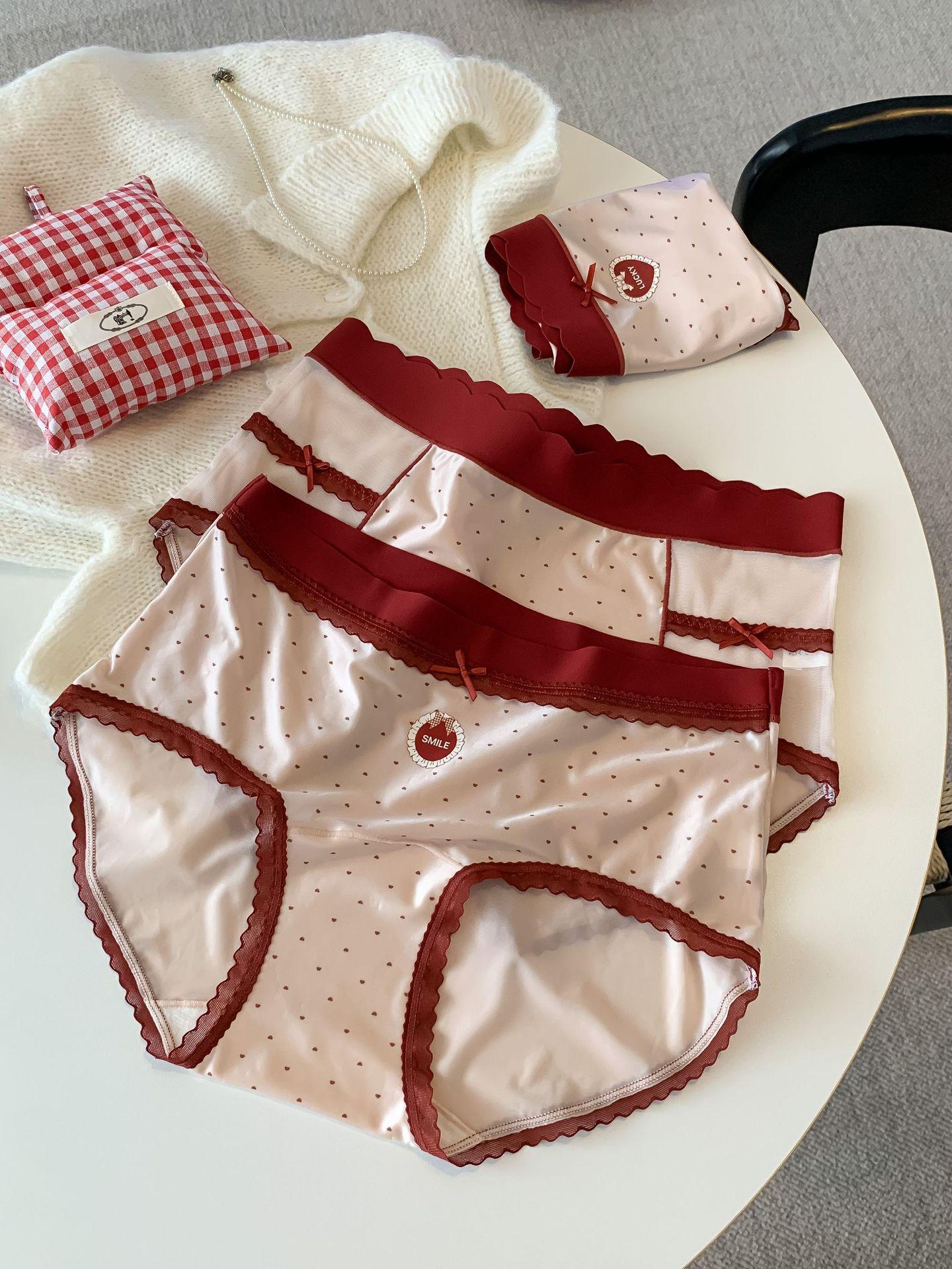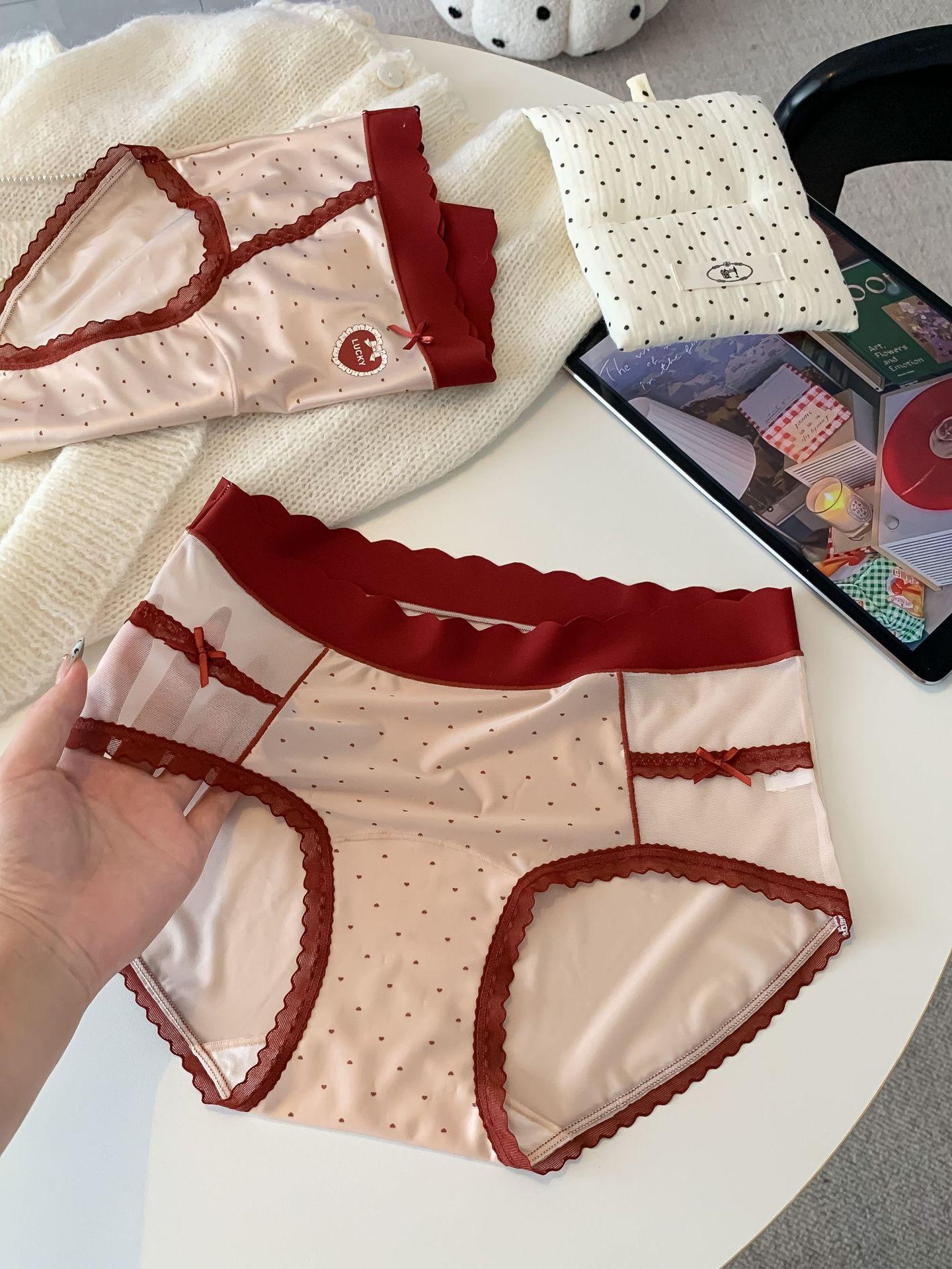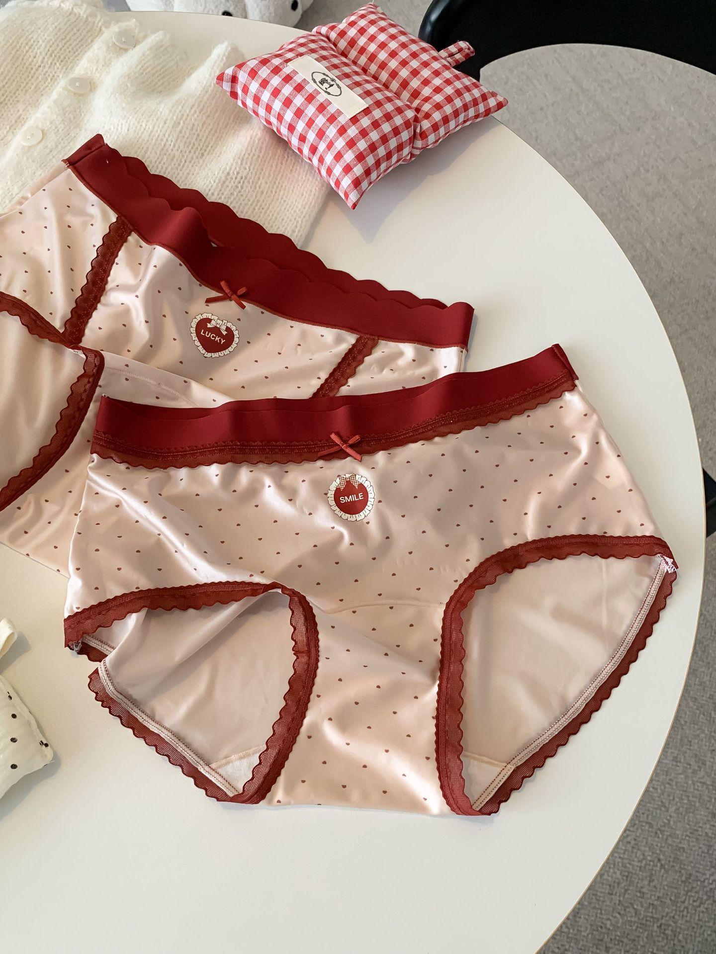 A020 Año Nuevo Ankra Calzones Rojos Grandes para Mujer Cintura Media Estilo Corazón Dulce Calzones Triángulo para Adolescentes Transfronterizo