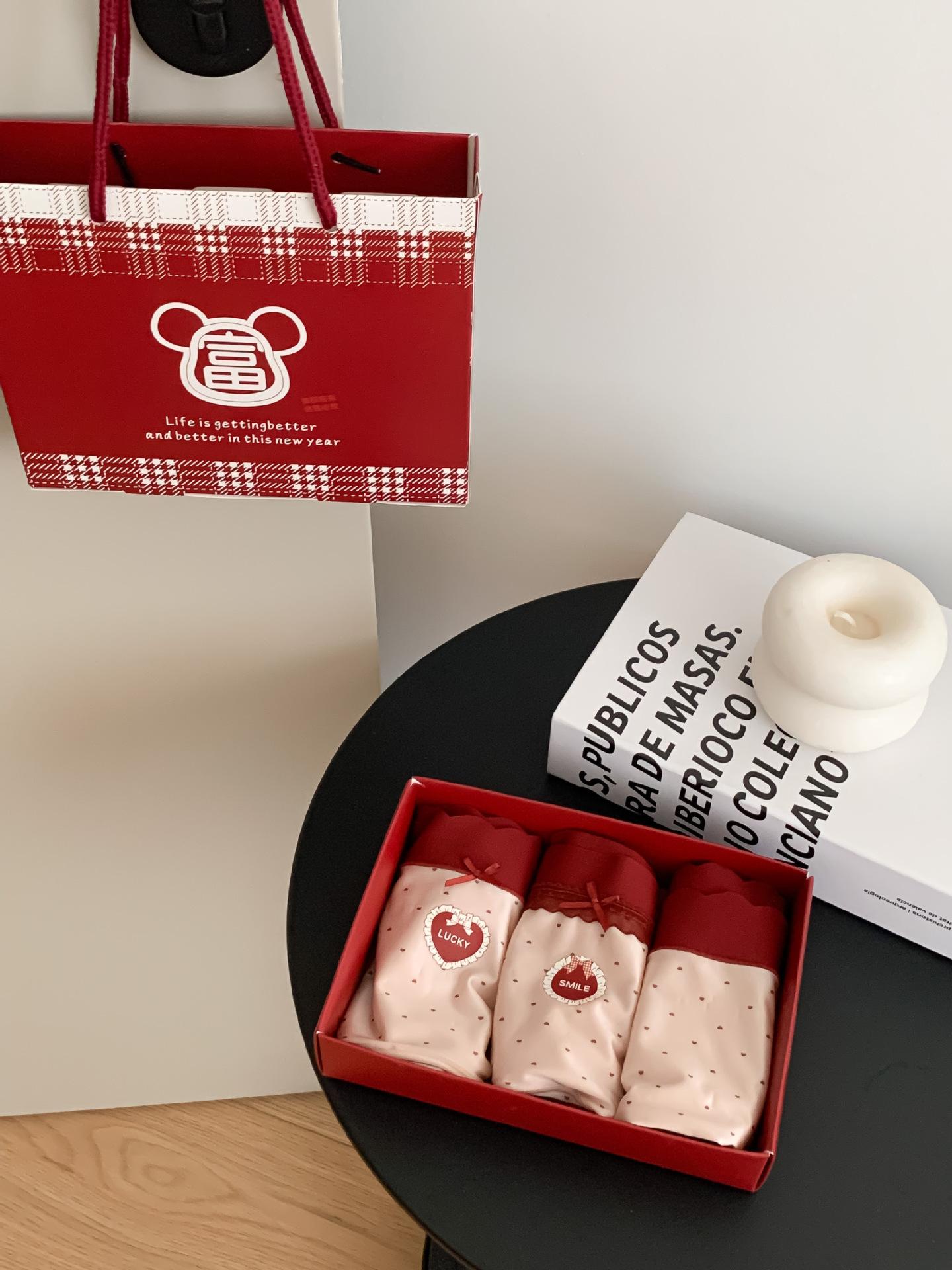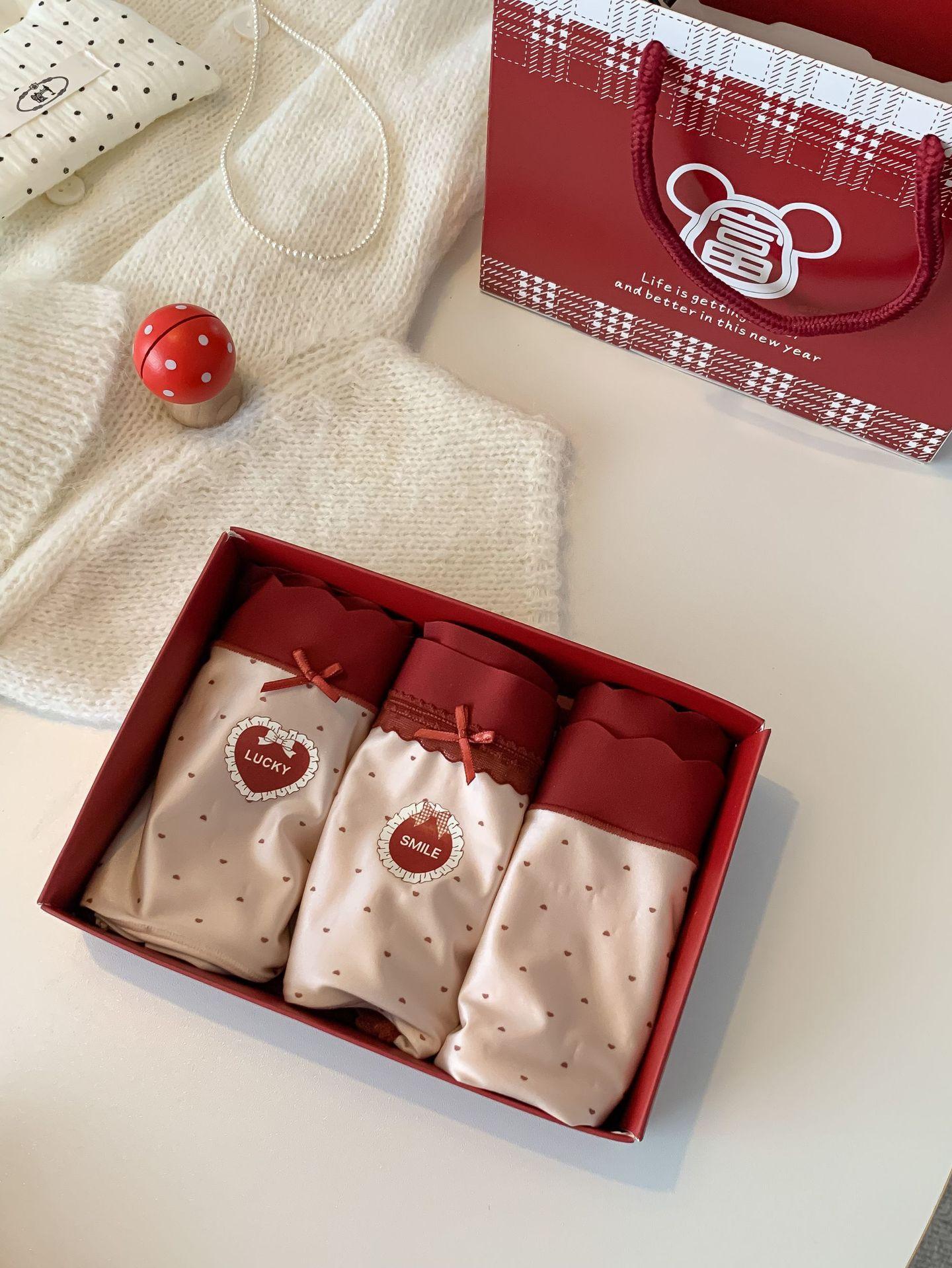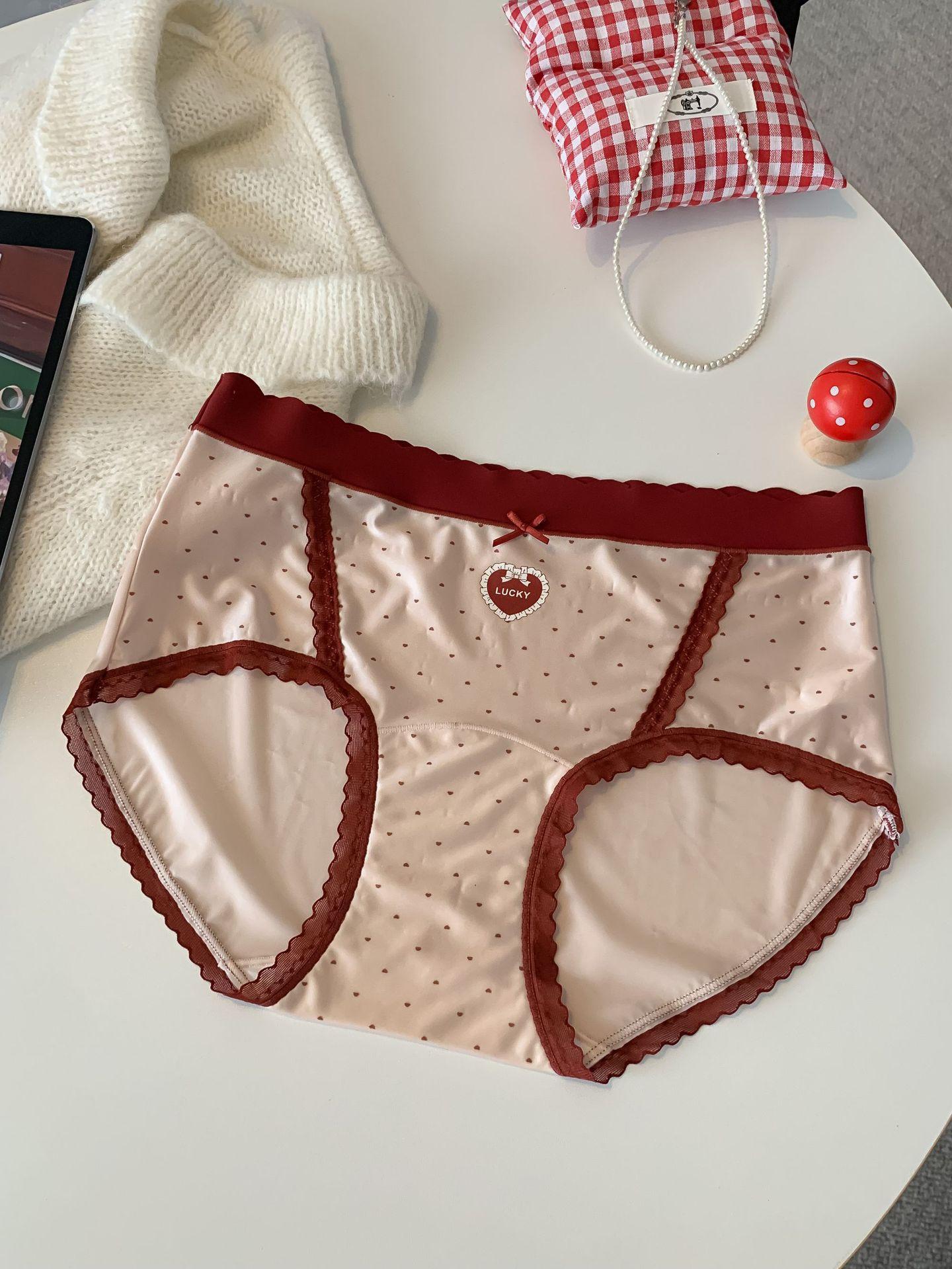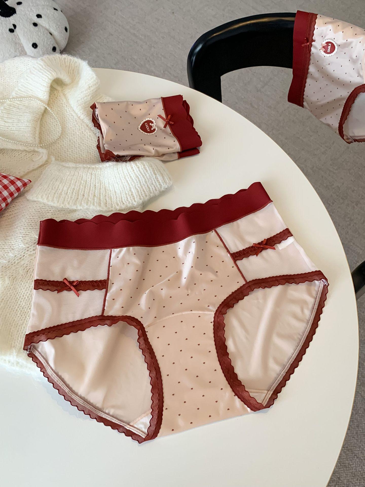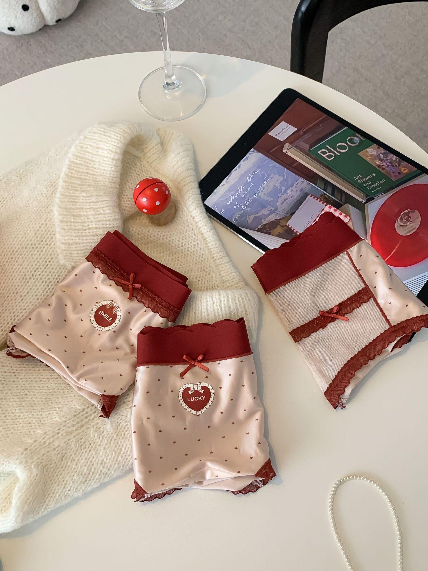 A020 Año Nuevo Ankra Calzones Rojos Grandes para Mujer Cintura Media Estilo Corazón Dulce Calzones Triángulo para Adolescentes Transfronterizo